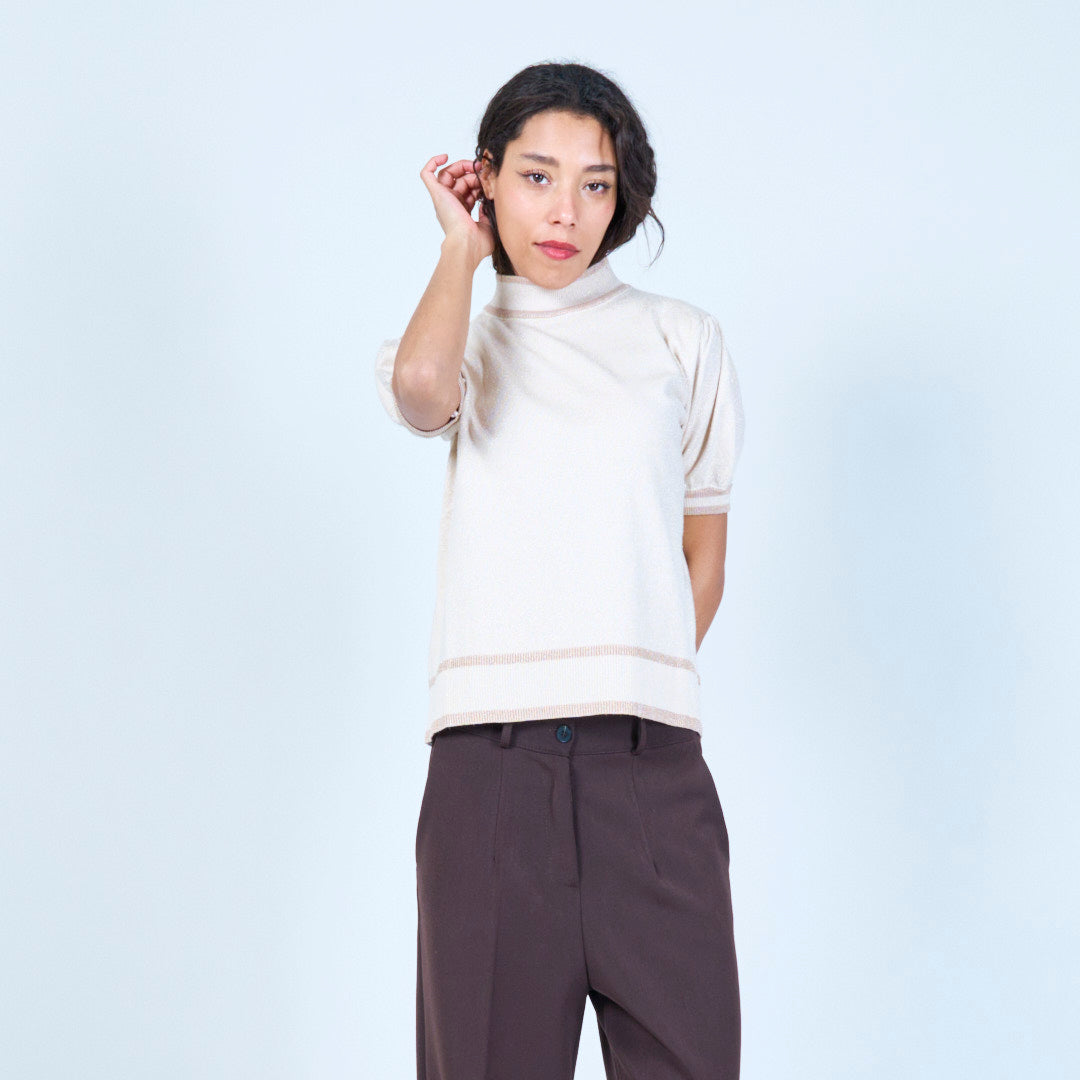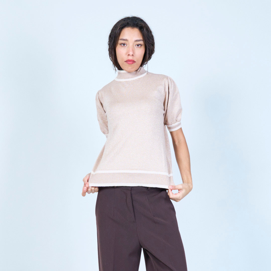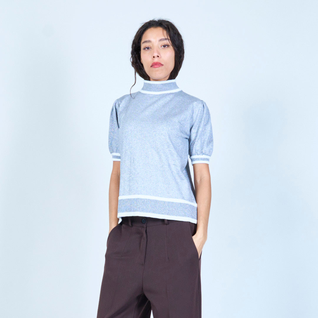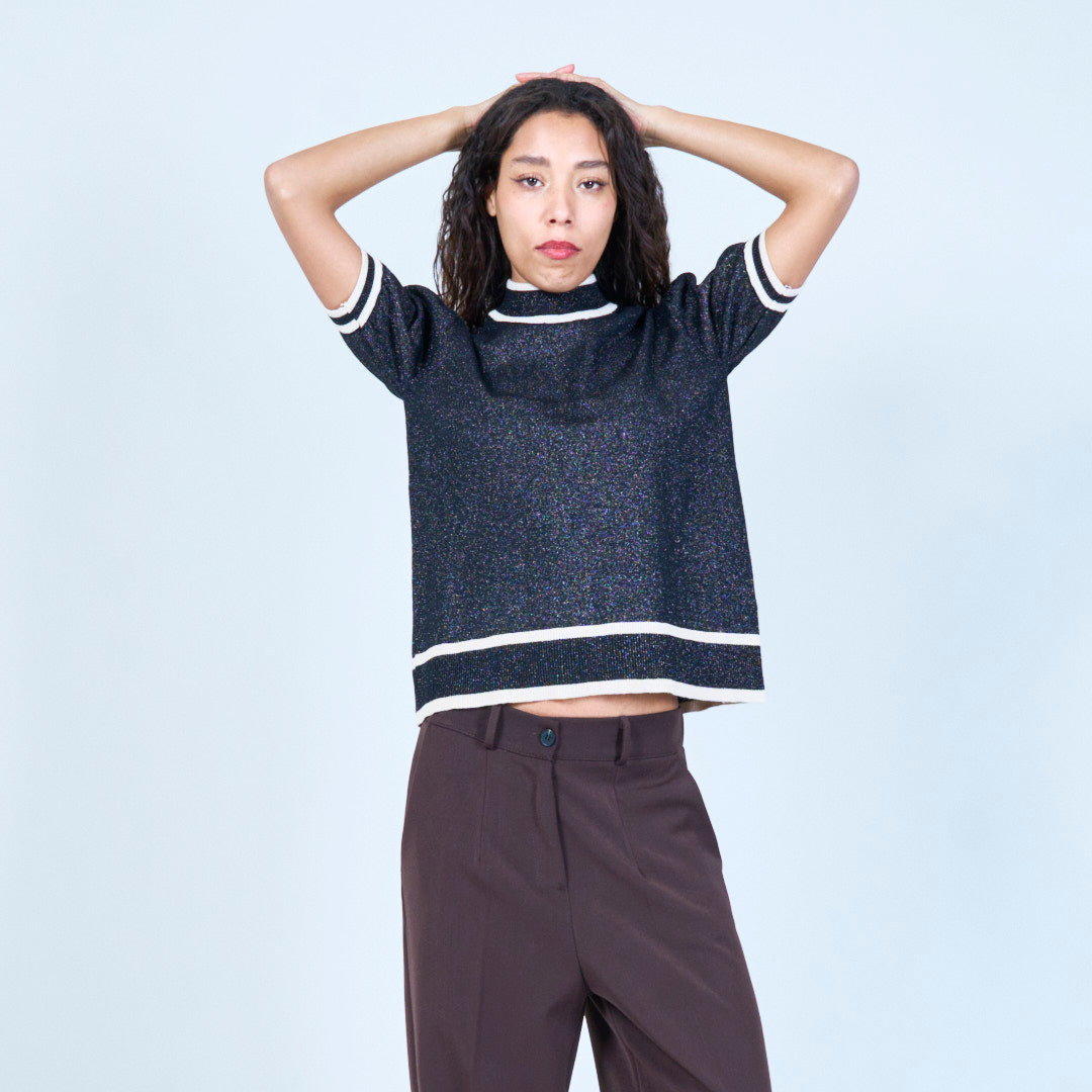 Sparkle-Strick-Kurzärmler-Oberteil mit geripptem Saum im Großhandel