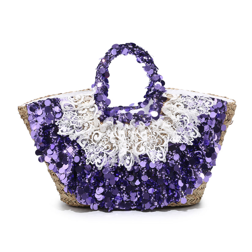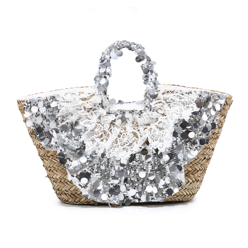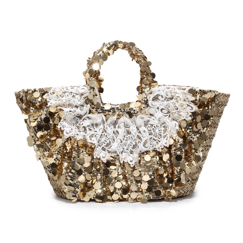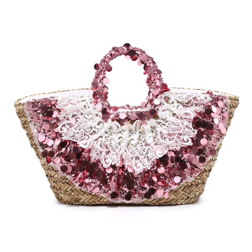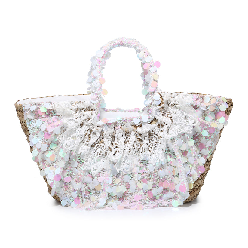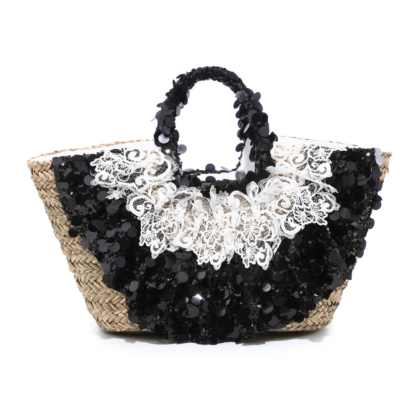 Übergroßer Paillettenspitzen-Trim-Strohhalm mit Glitzerblumenakzenten Großhandel