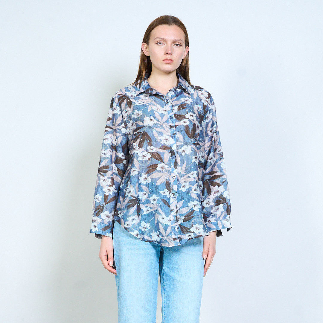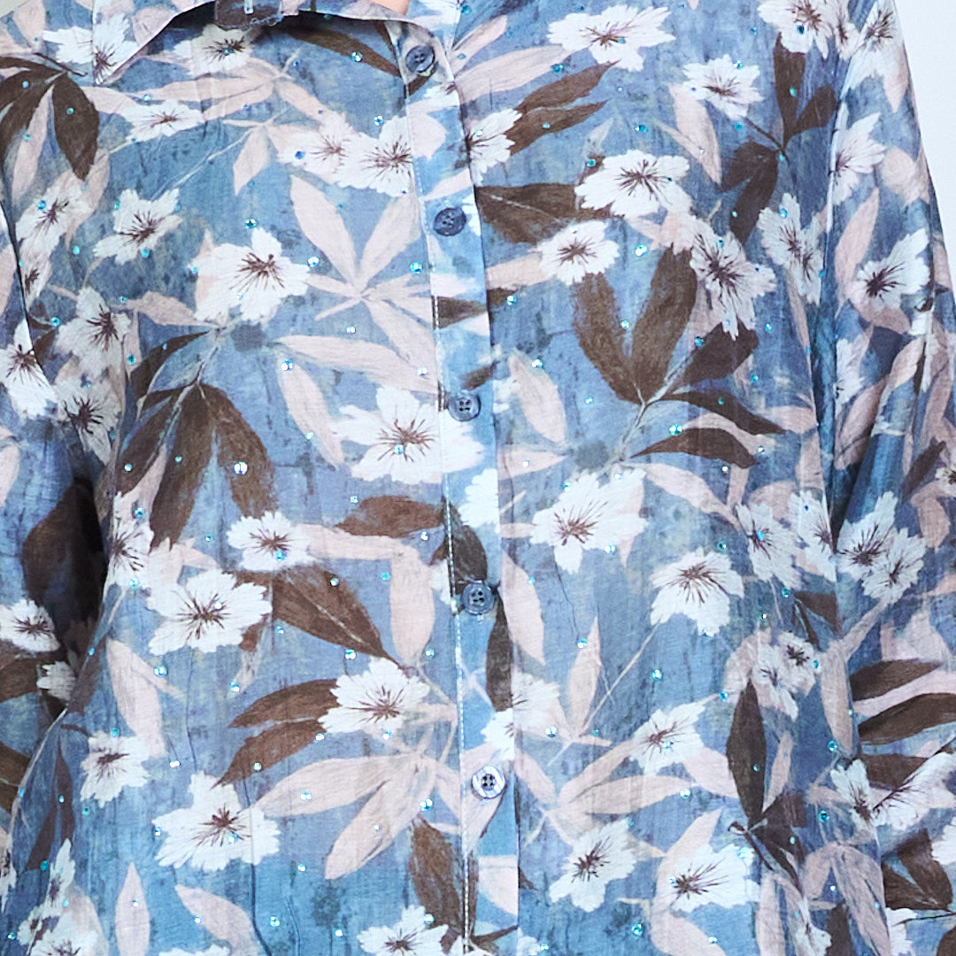 Langärmlige Bluse mit Allover-Blumendruck, klassischem Kragen und Knopfleiste vorne im Großhandel
