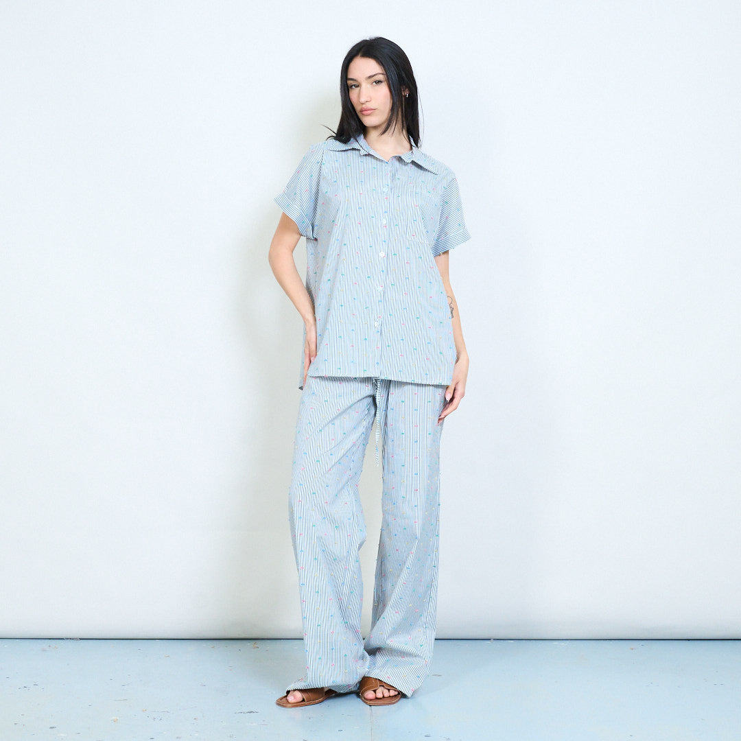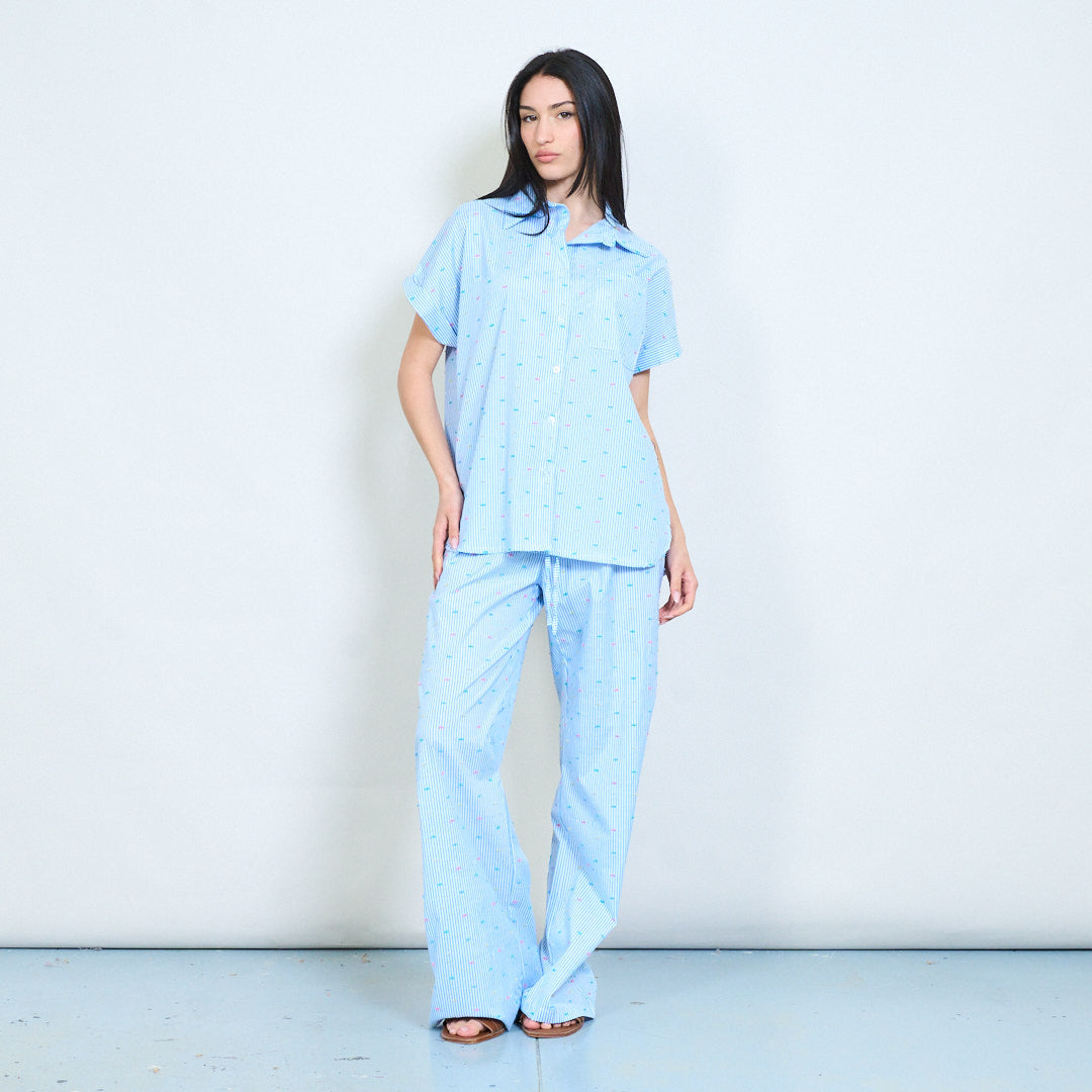 Nadelstreifen-Hose mit geradem Bein und Mikropunktdruck und Kordelzug im Großhandel