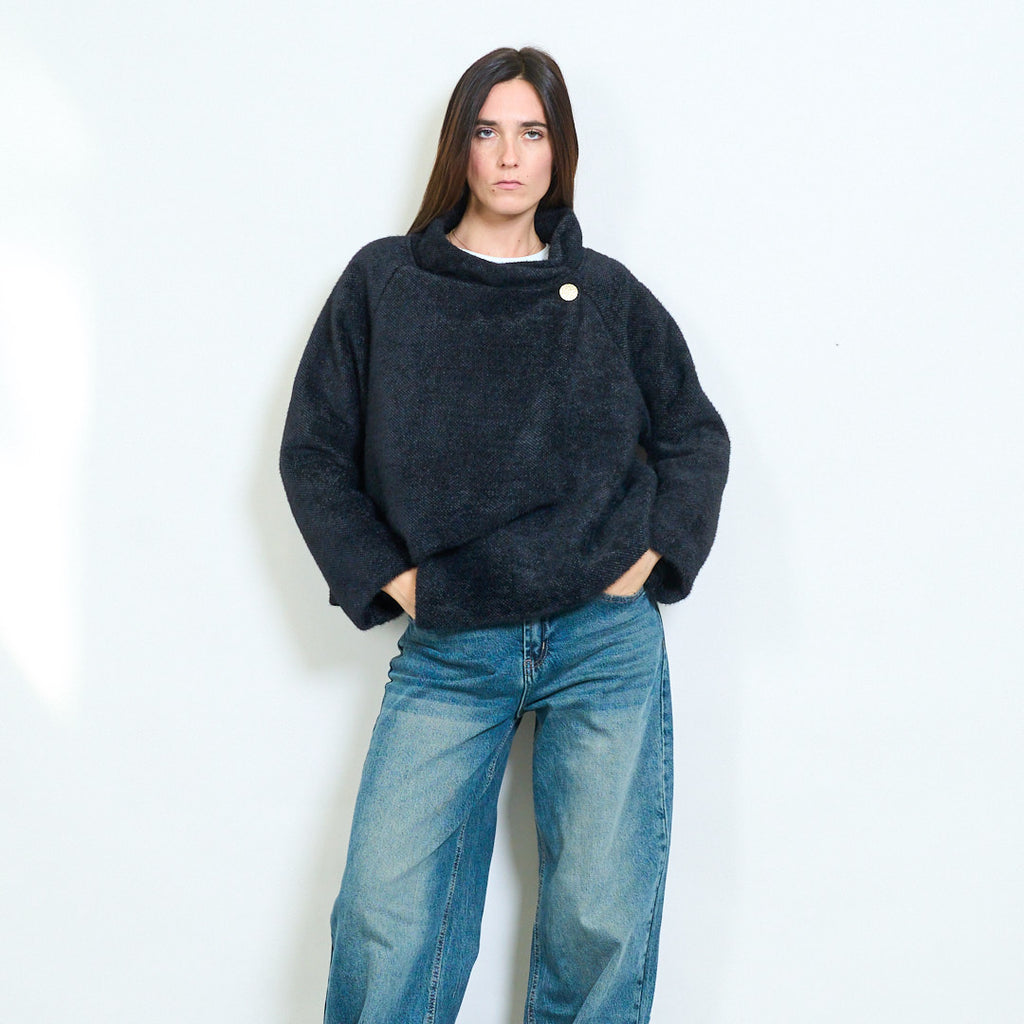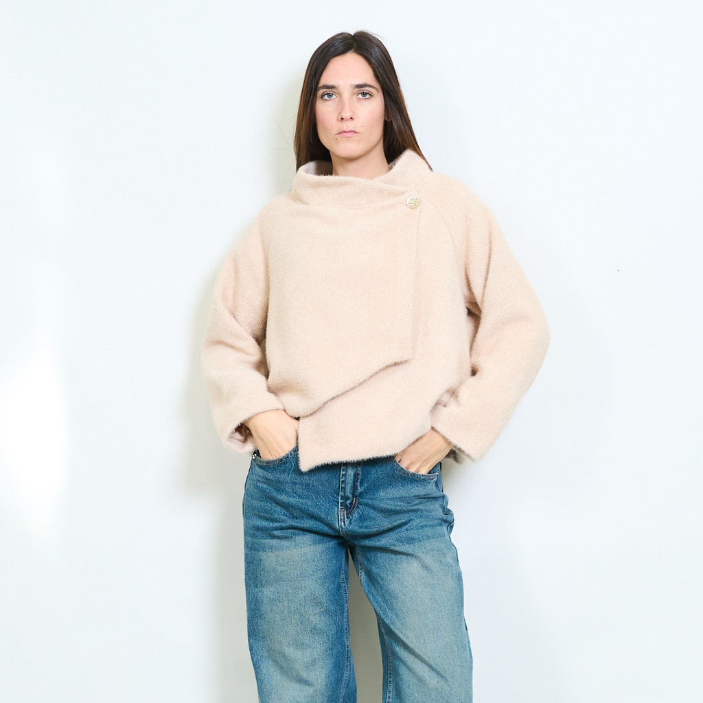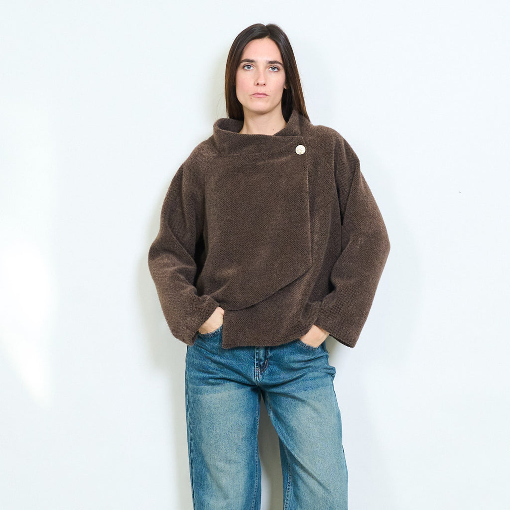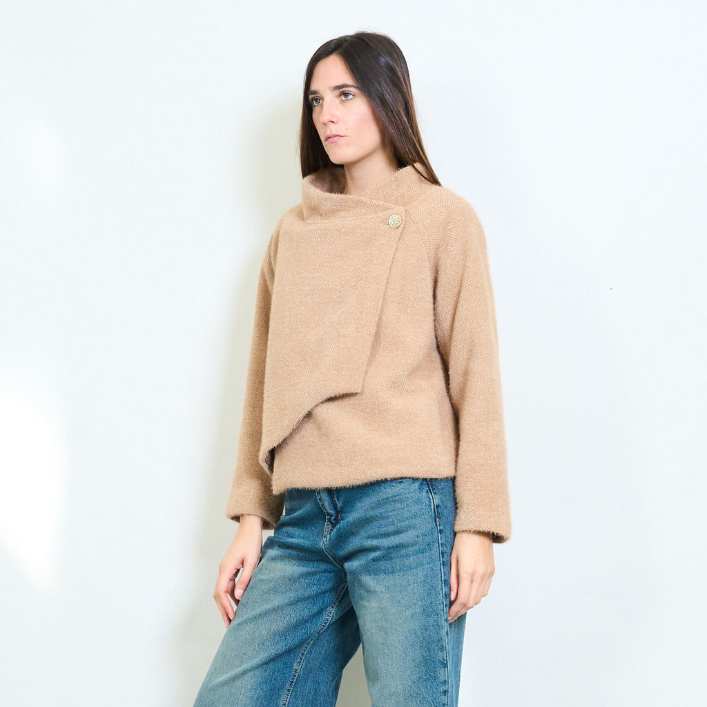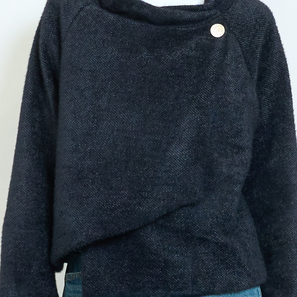 Asymmetrisch drapiertes Knopfdetail gestrickter Pullover Großhandel
