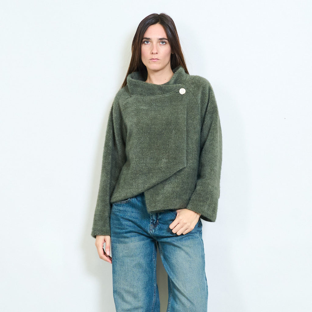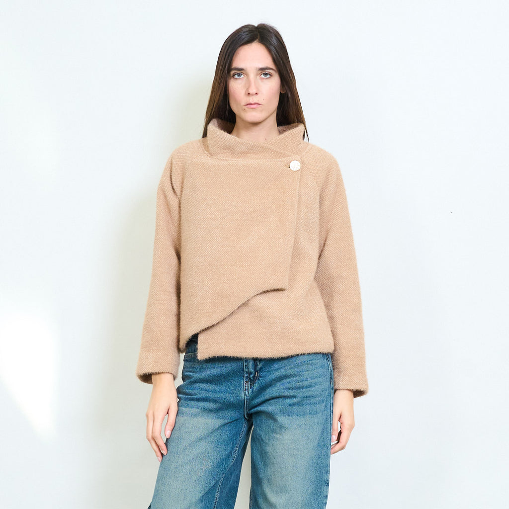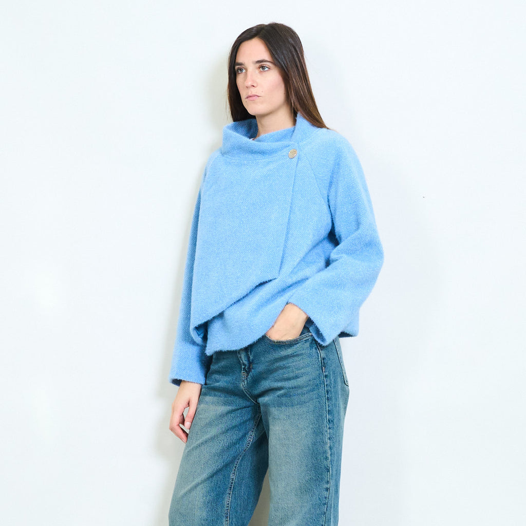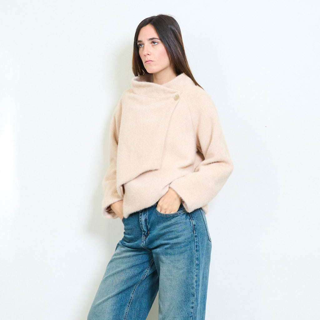 Asymmetrisch drapiertes Knopfdetail gestrickter Pullover Großhandel