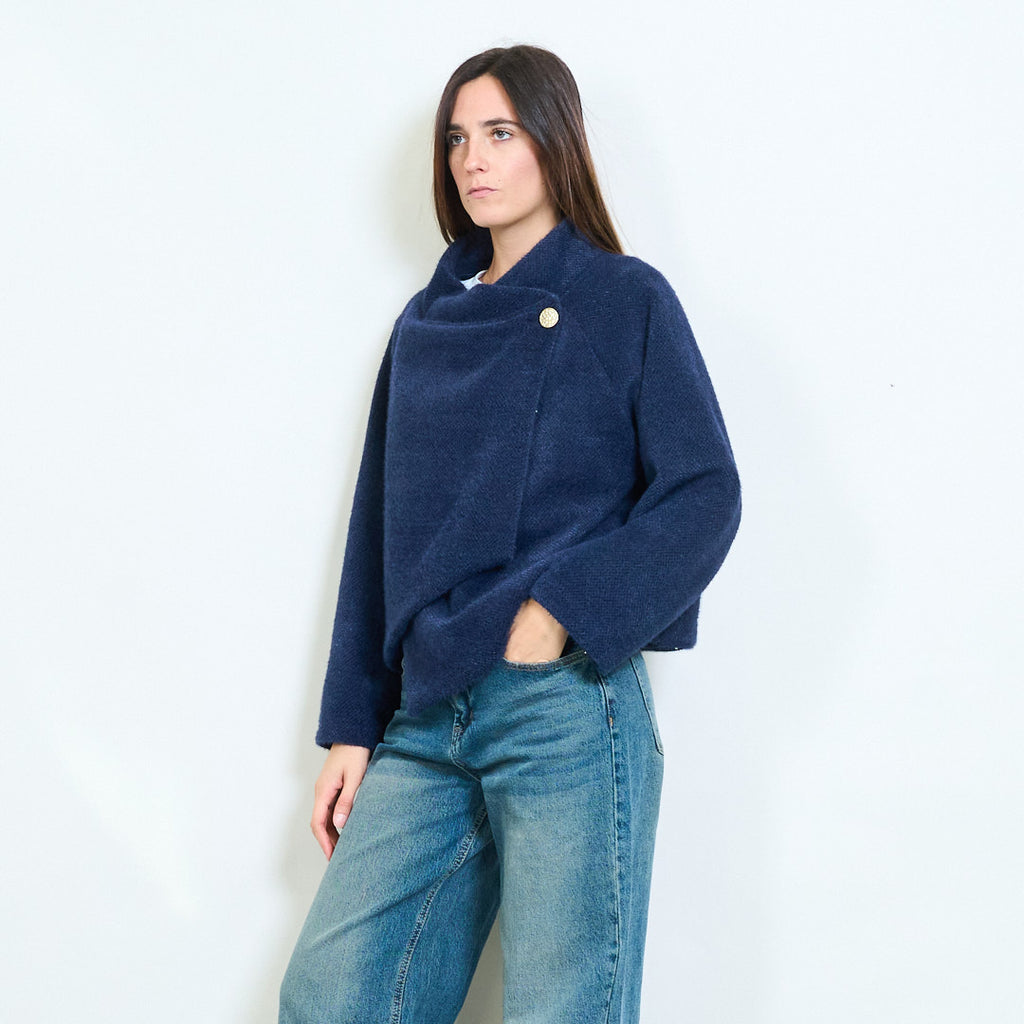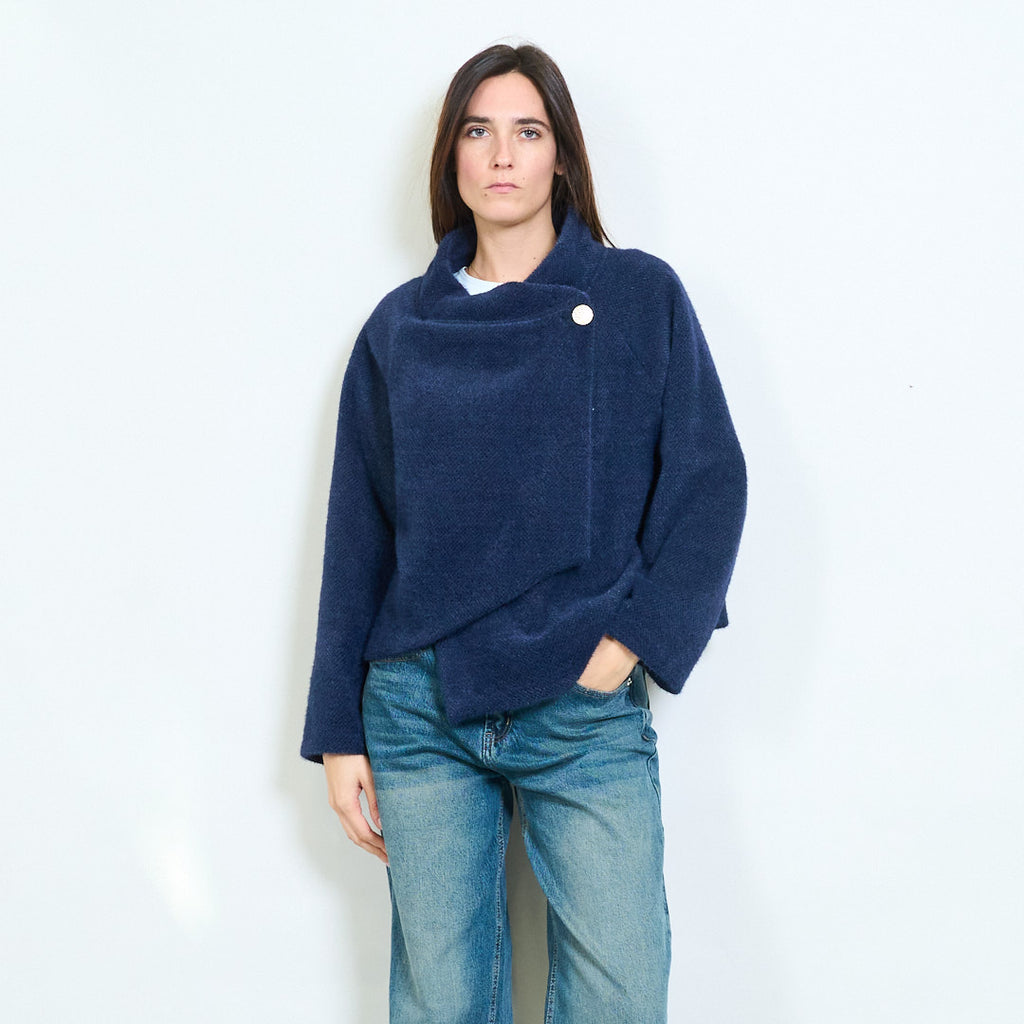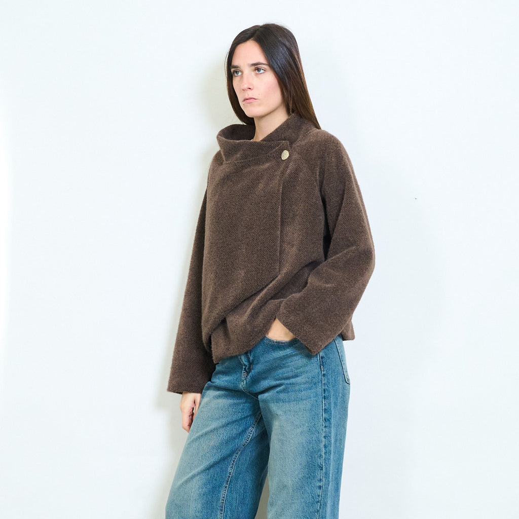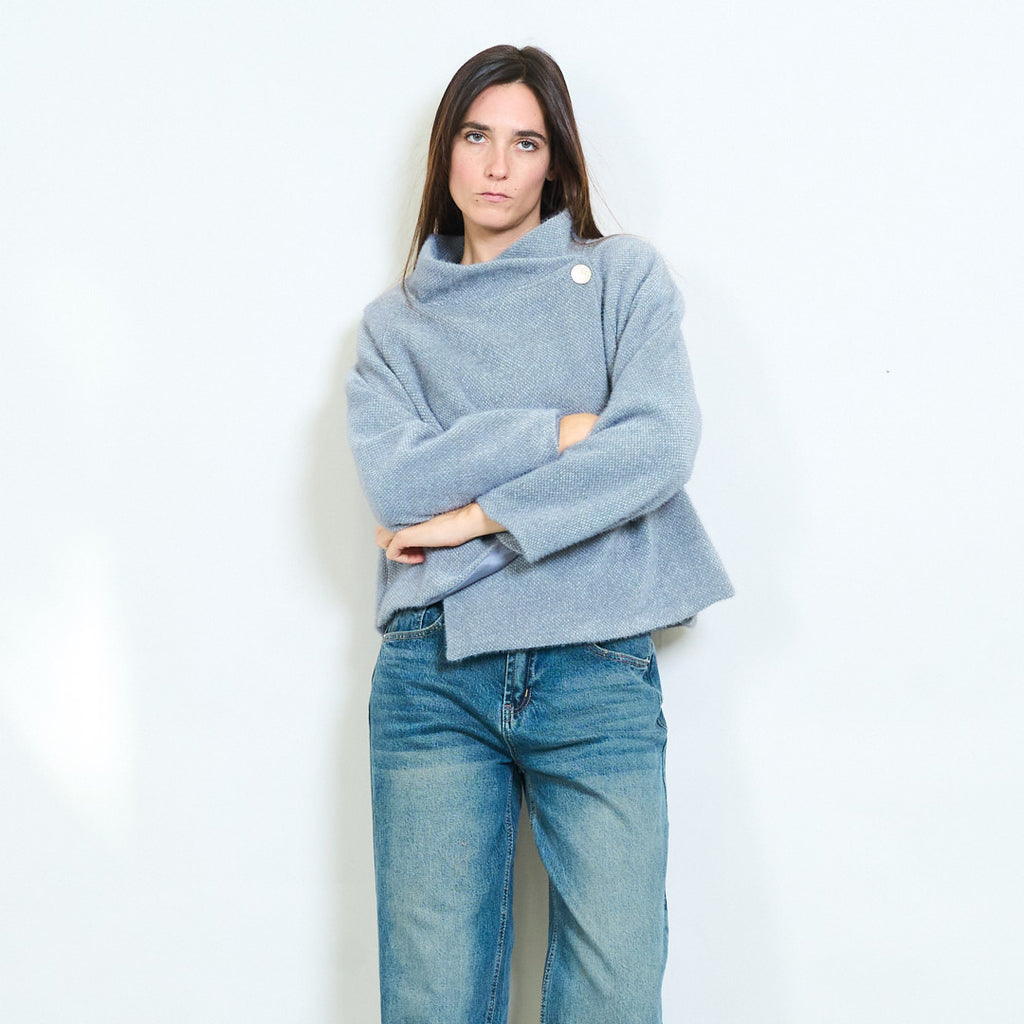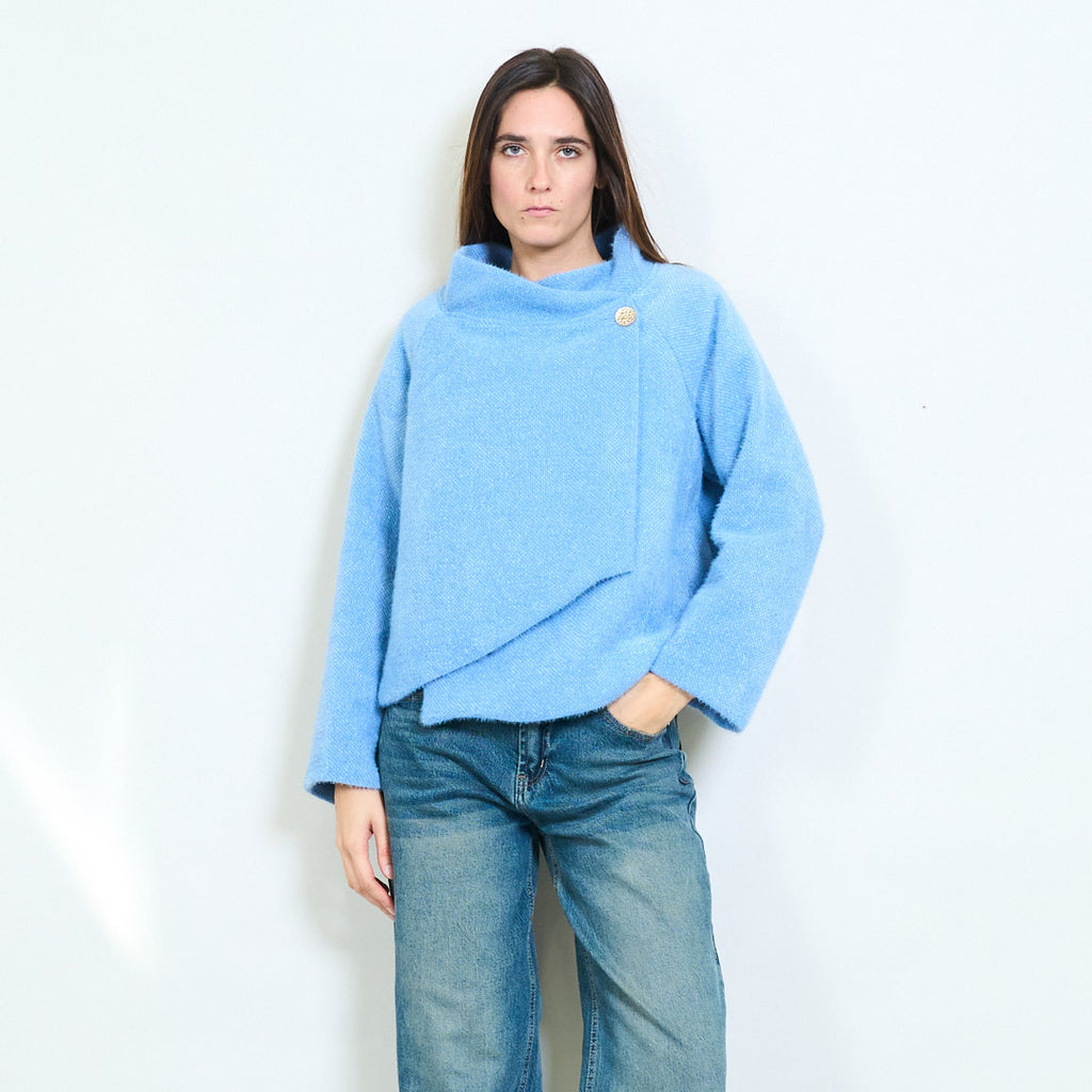 Asymmetrisch drapiertes Knopfdetail gestrickter Pullover Großhandel