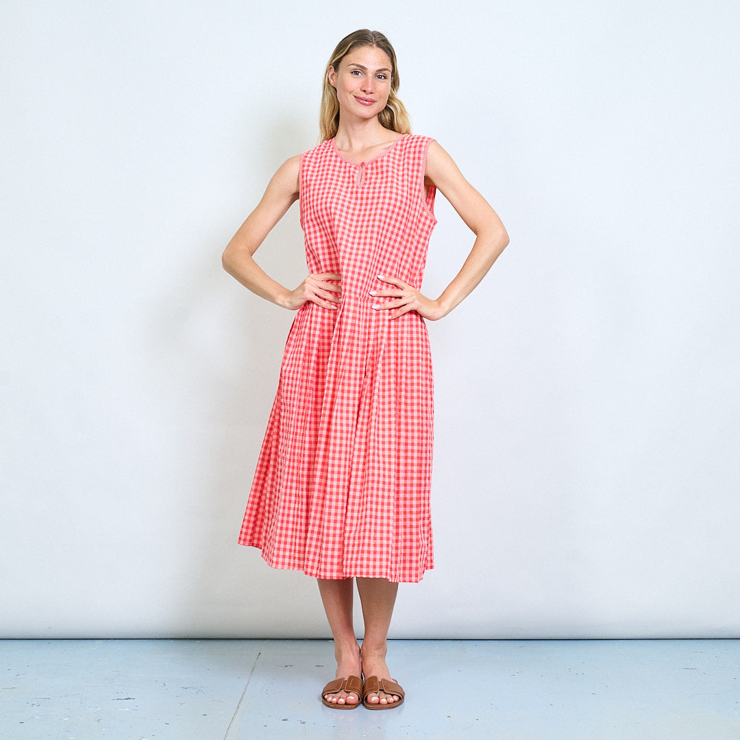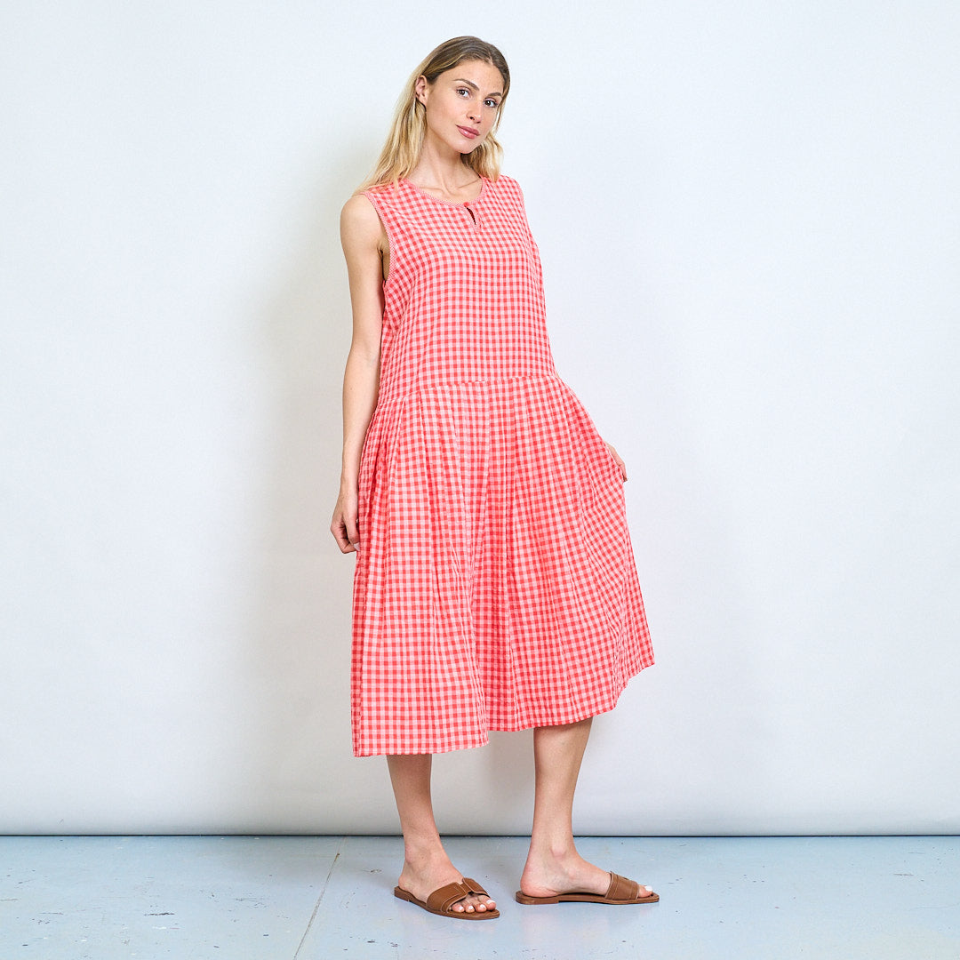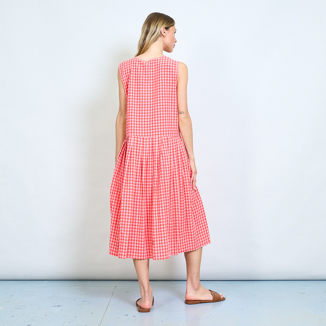 Gingham Check ärmelloses gesammelte Sommerkleid im Großhandel