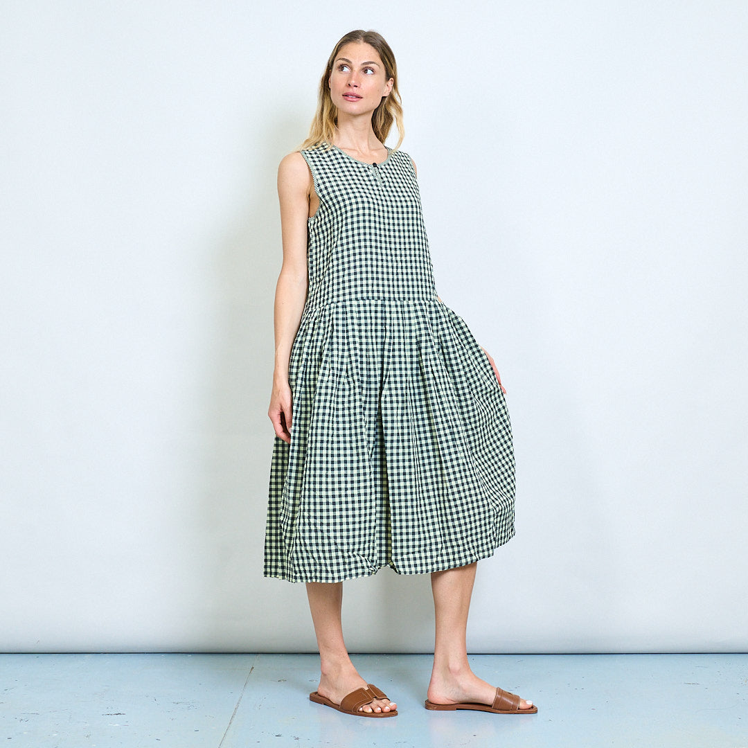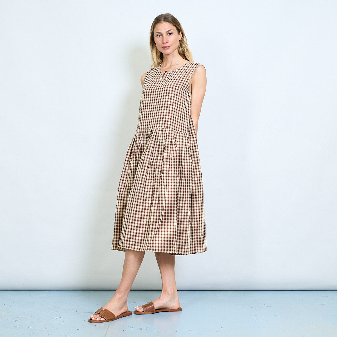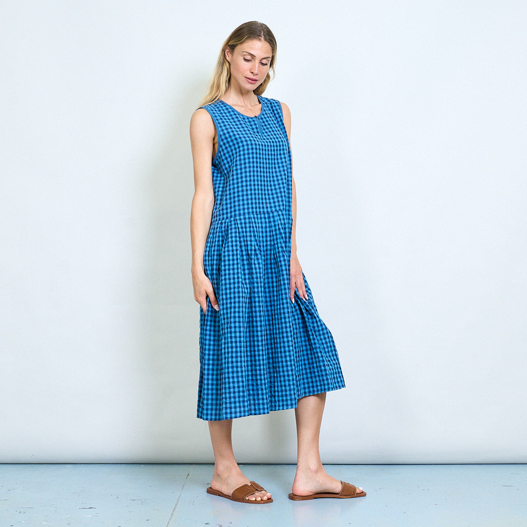 Gingham Check ärmelloses gesammelte Sommerkleid im Großhandel