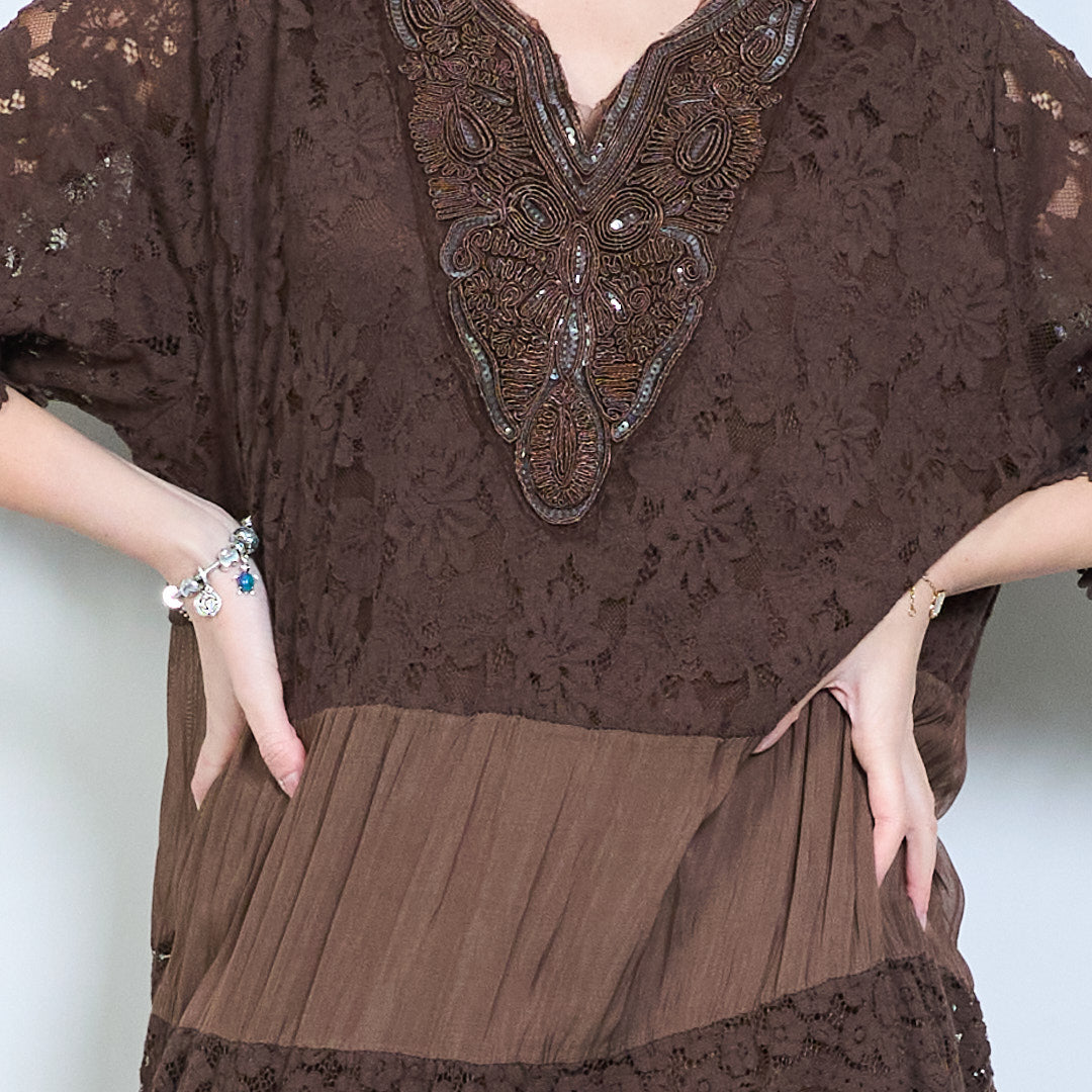 Μίντι φόρεμα με κέντημα με λαιμόκοψη με δαντέλα χονδρική