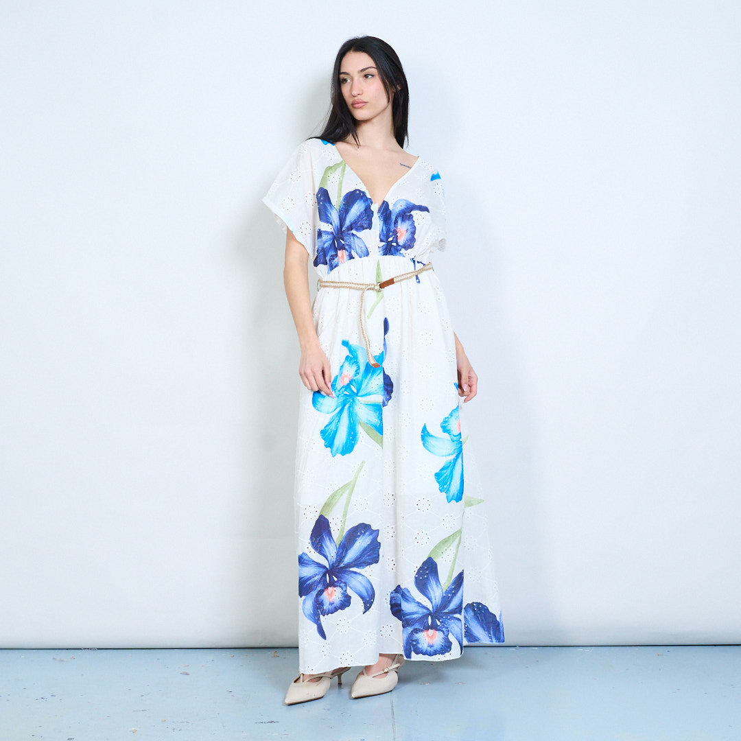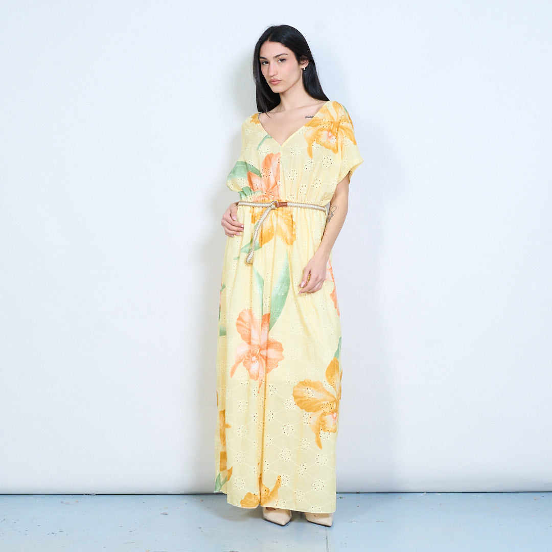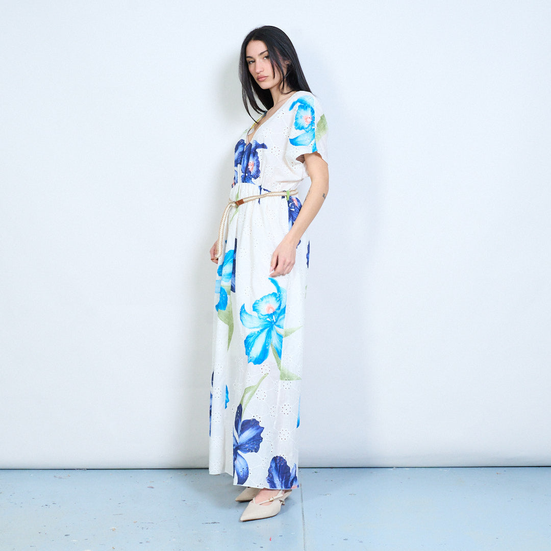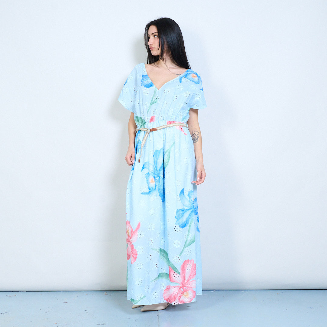Ολόσωμη φόρμα με φλοράλ μάτι κεντημένο με λαιμό και φαρδύ πόδι, χονδρική