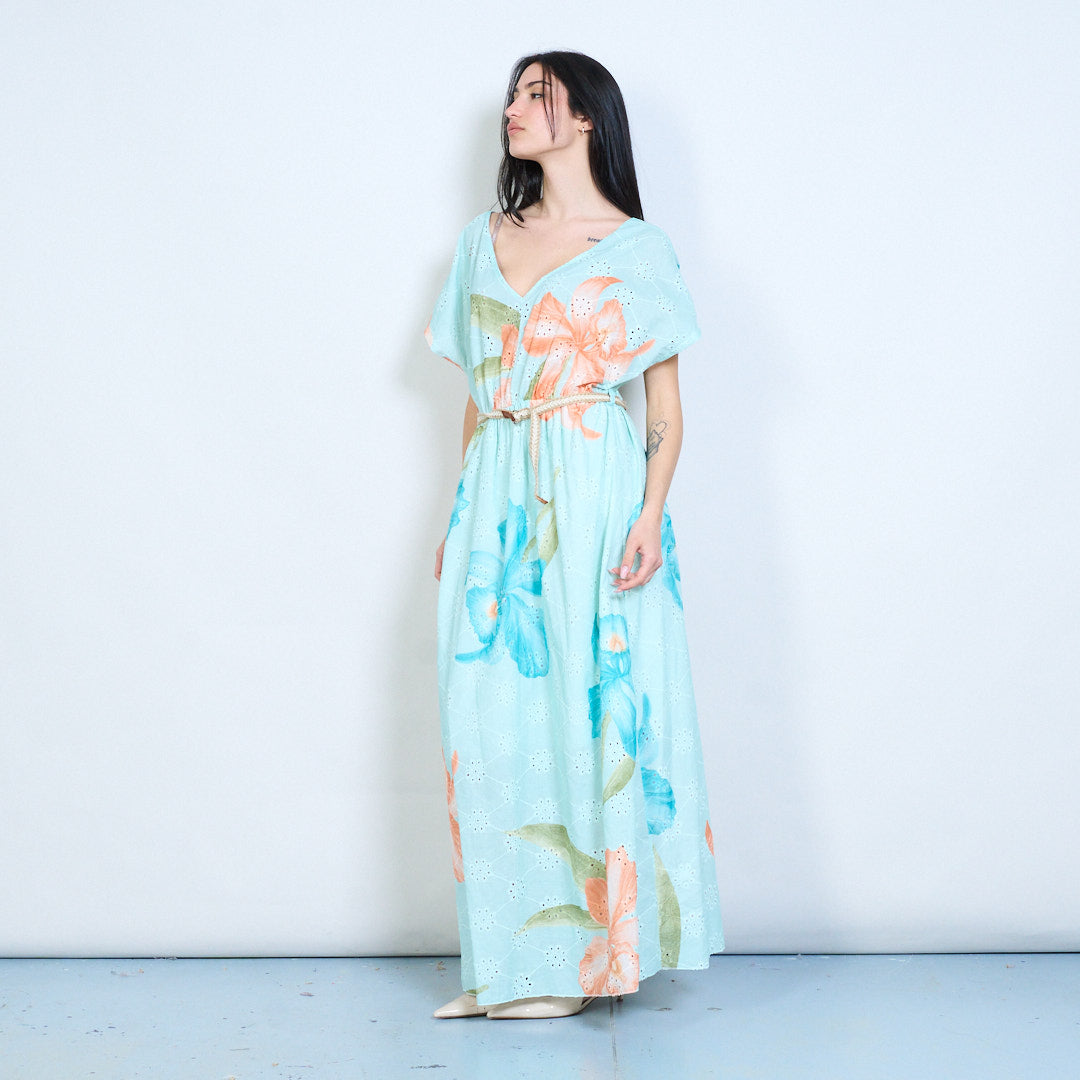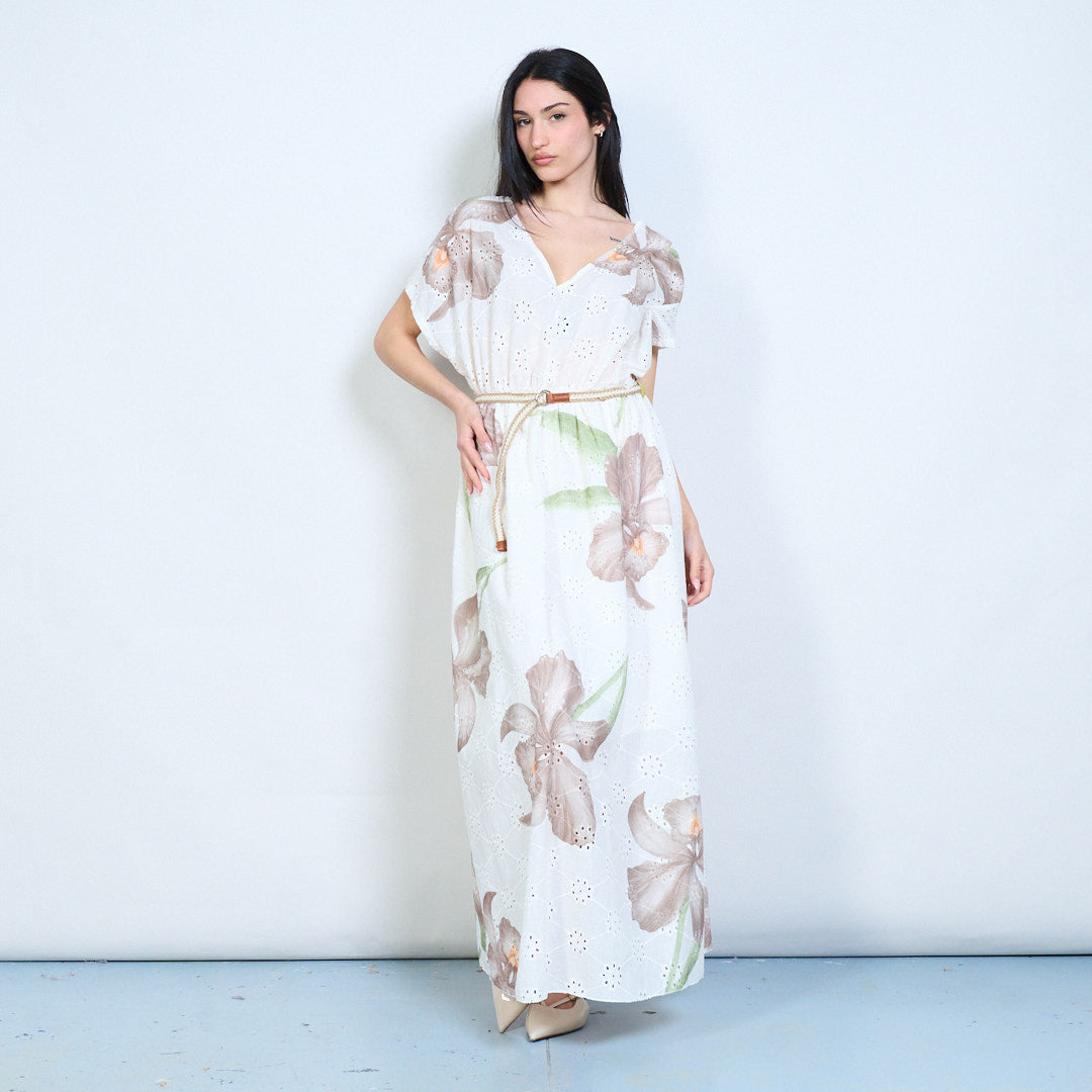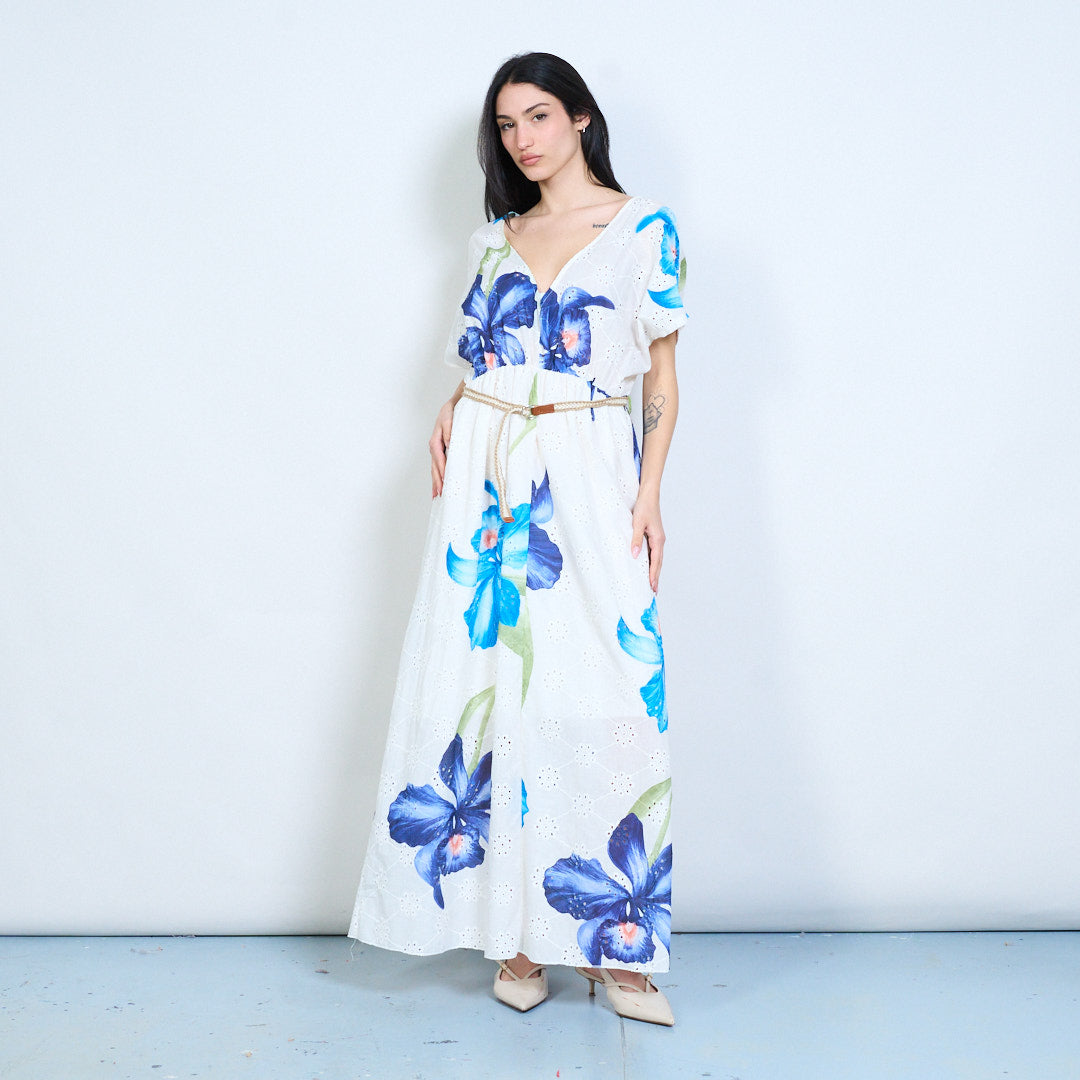Ολόσωμη φόρμα με φλοράλ μάτι κεντημένο με λαιμό και φαρδύ πόδι, χονδρική