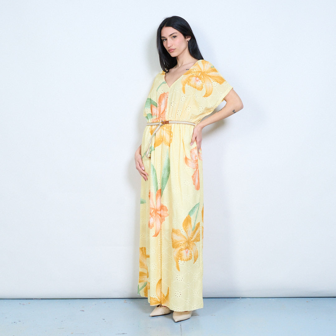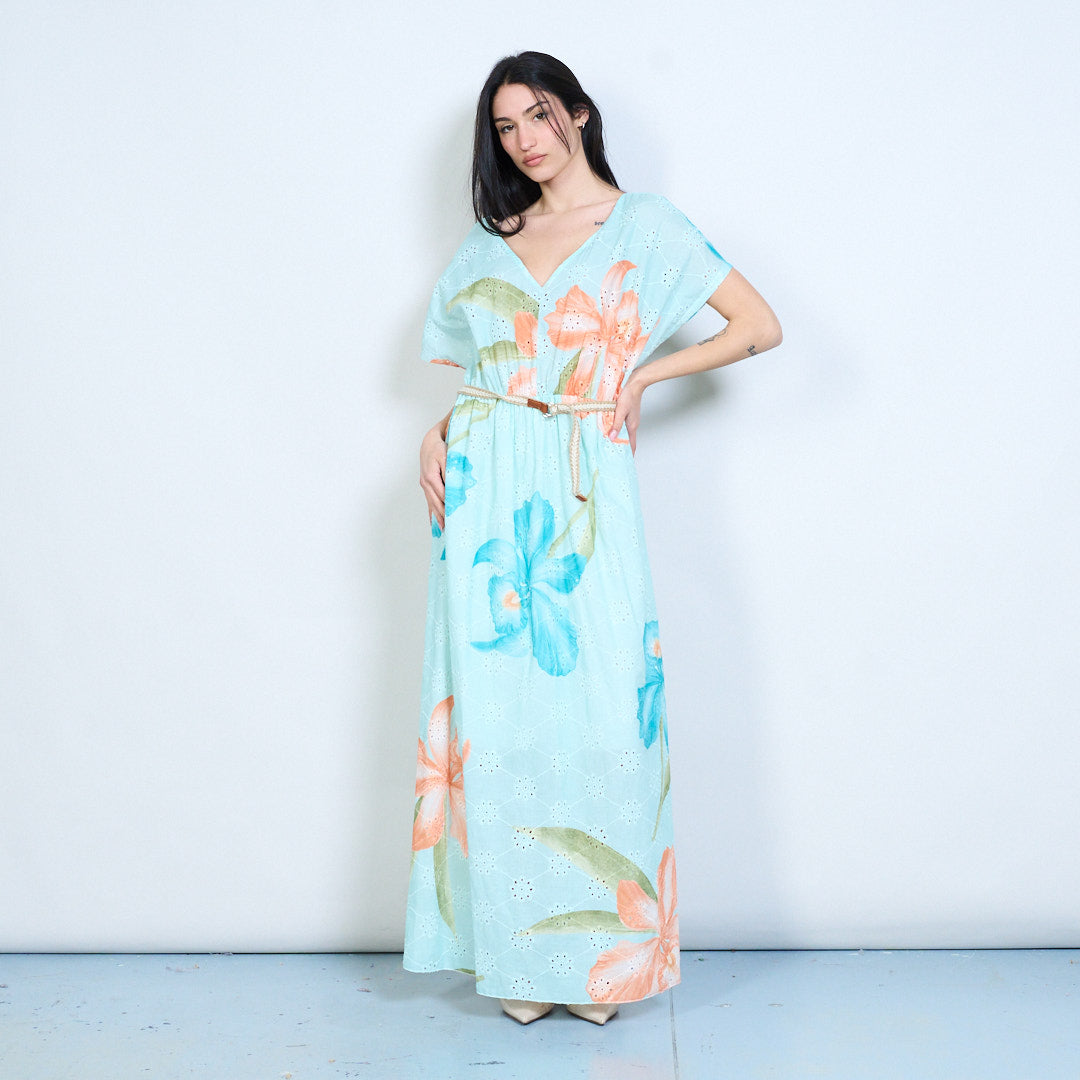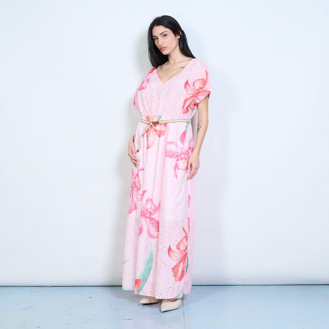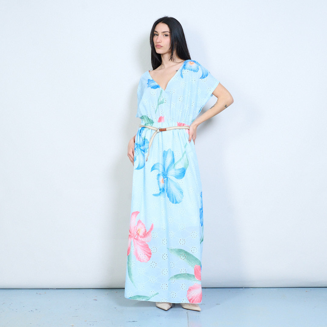 Ολόσωμη φόρμα με φλοράλ μάτι κεντημένο με λαιμό και φαρδύ πόδι, χονδρική