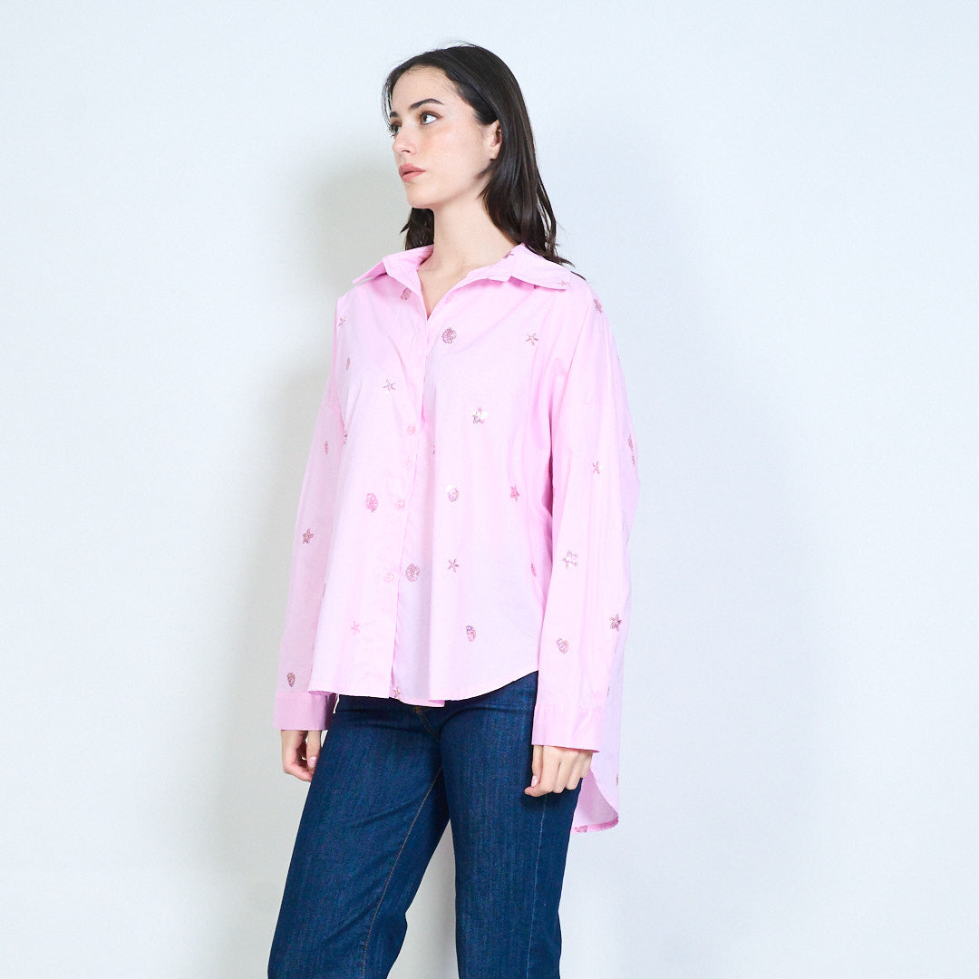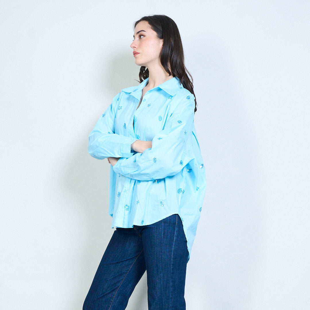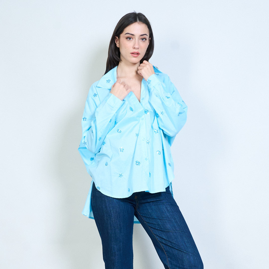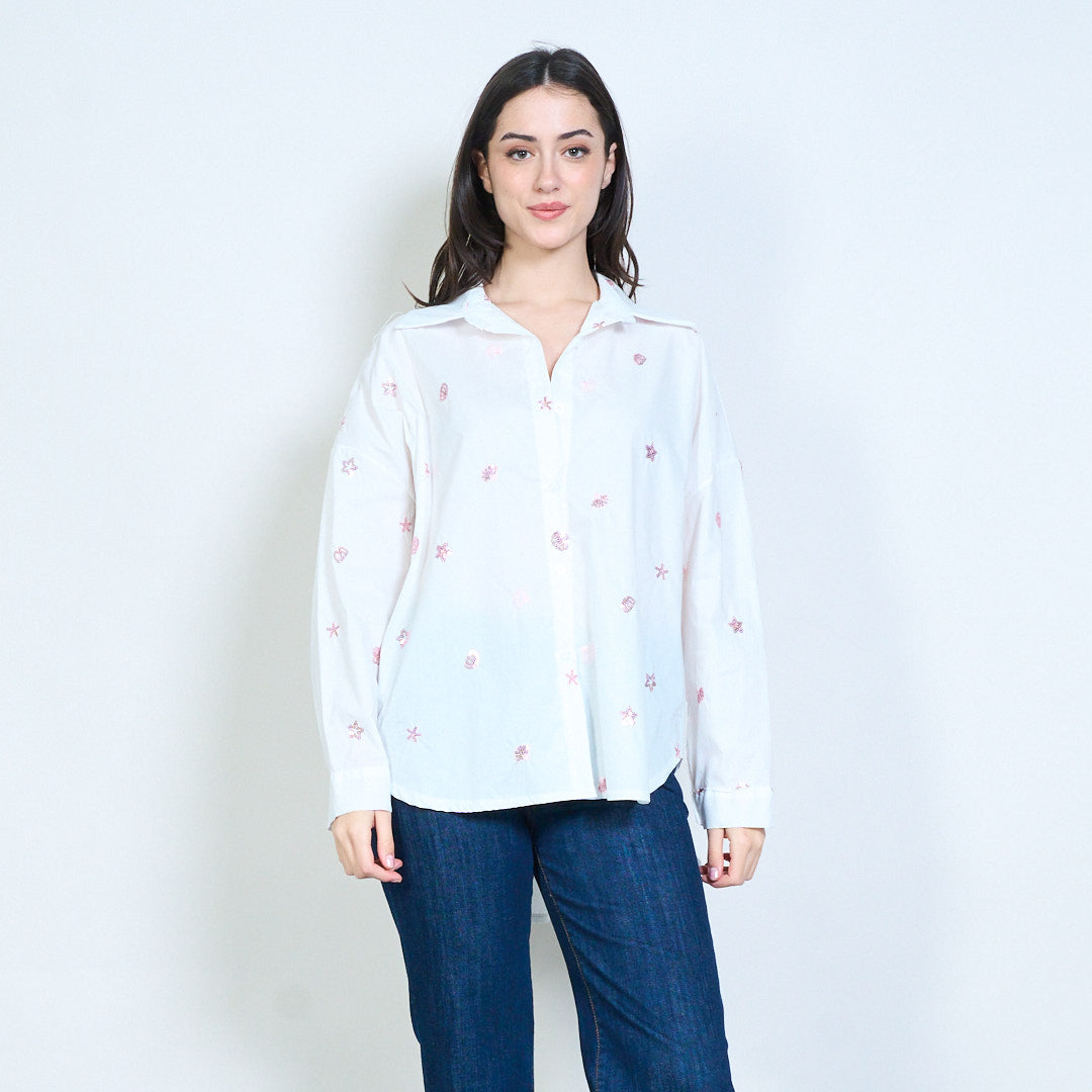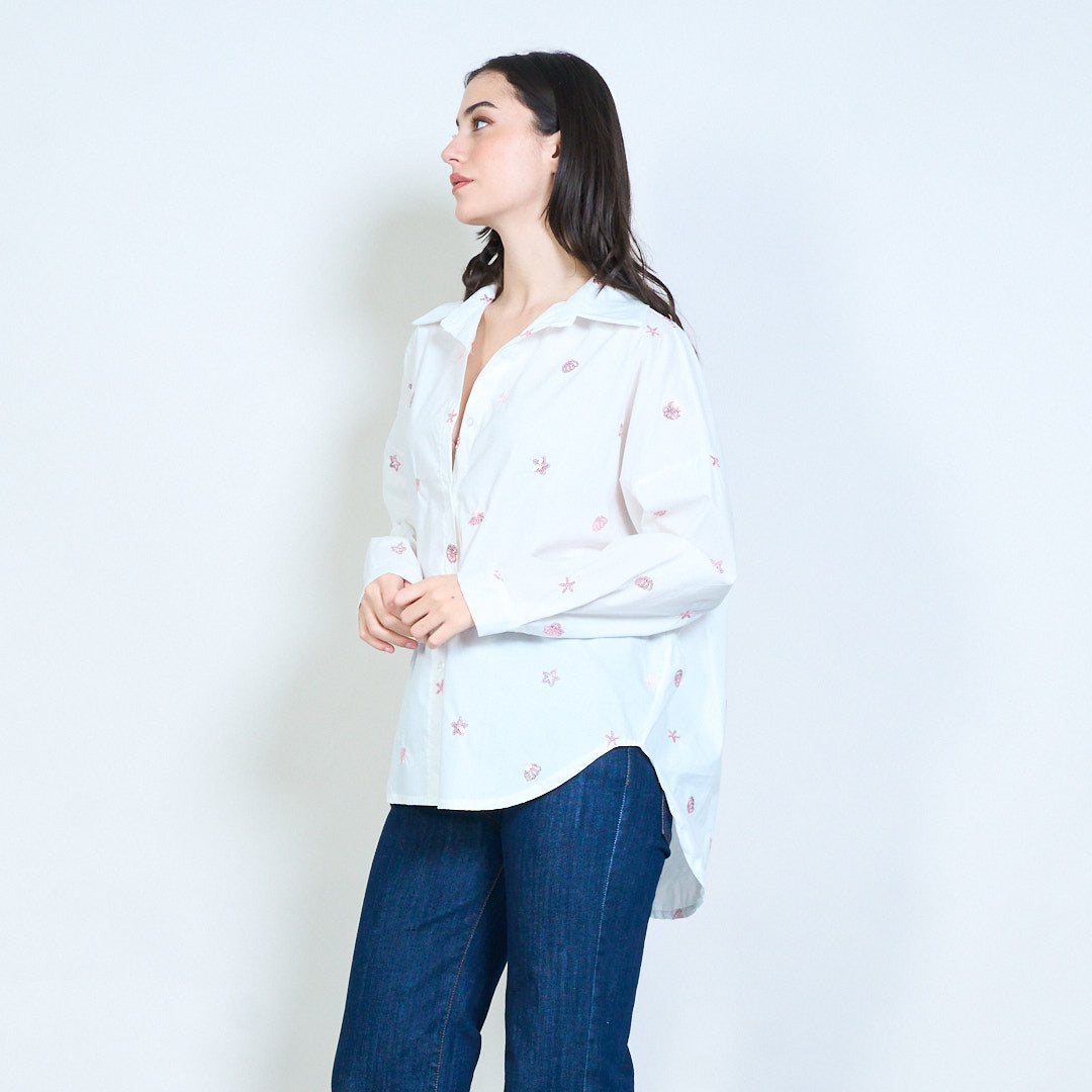 Χονδρικό πουκάμισο μεγάλου μεγέθους με κεντητό κουμπί με αστέρι και κοχύλι