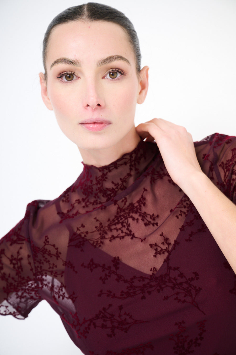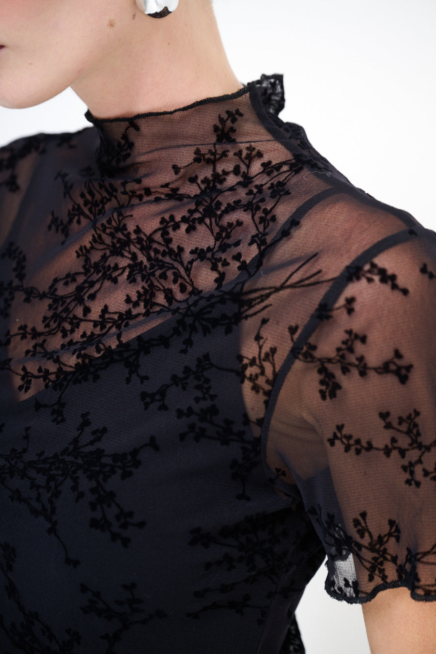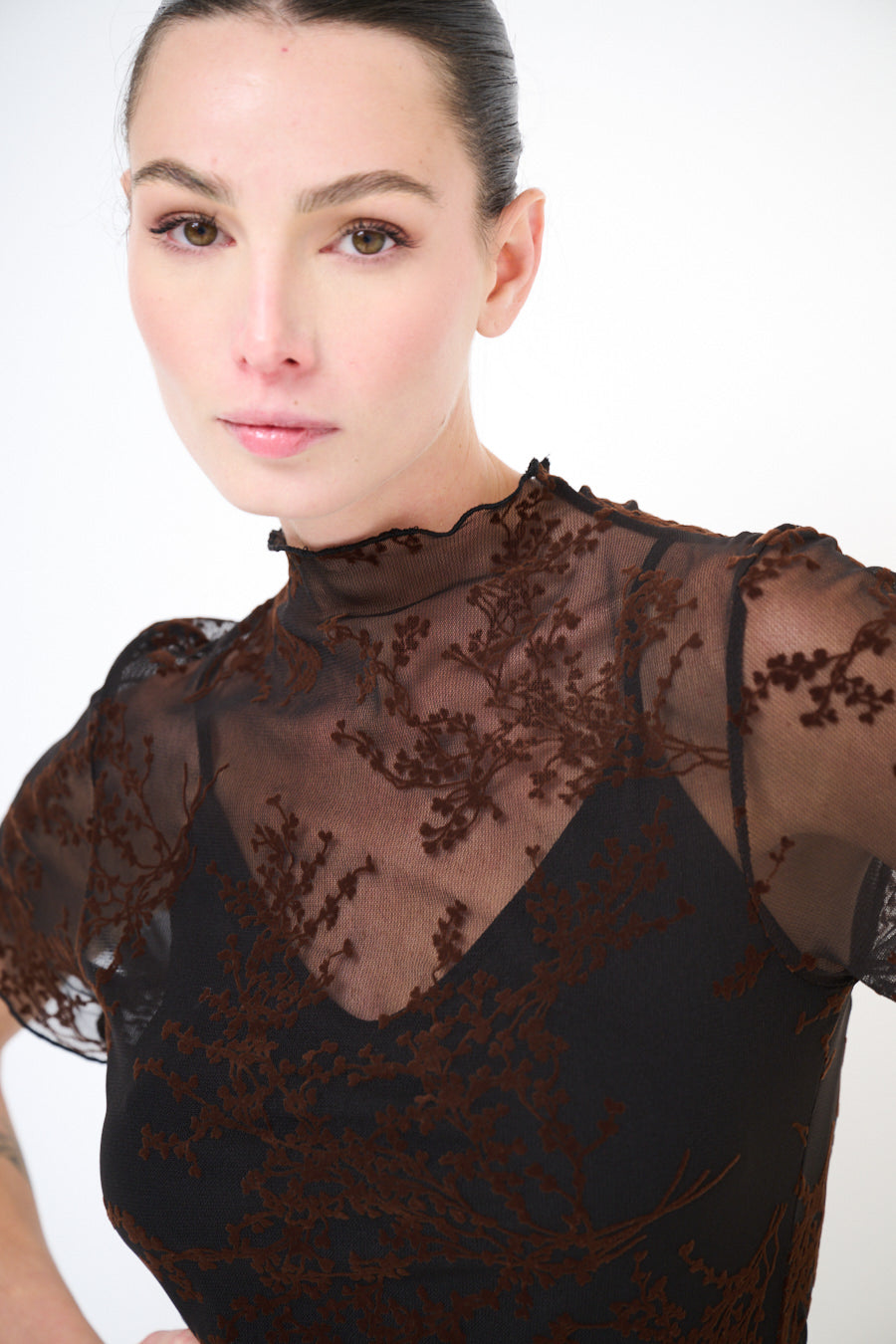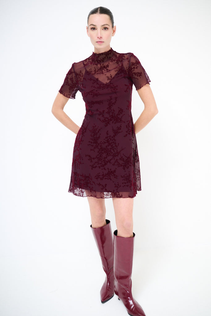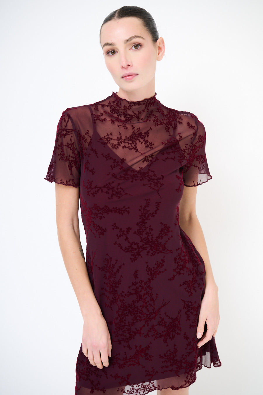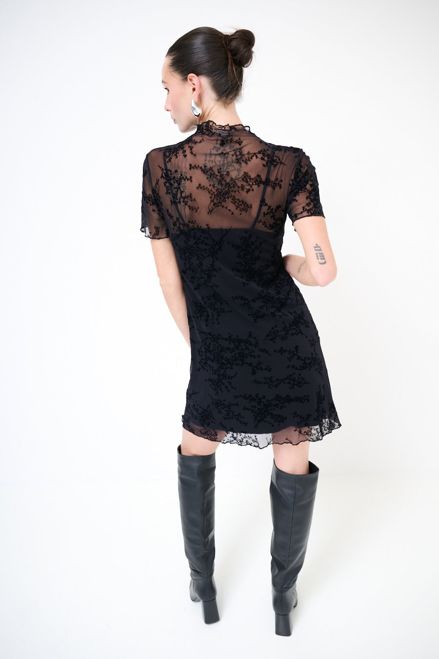 Μίνι φόρεμα με φλοράλ πλέγμα με ψηλό λαιμό, κοντομάνικο, χονδρική