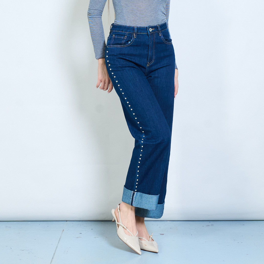 Χονδρική χονδρική πώληση τζιν τζιν με ίσιο πόδι με μεταλλικό καρφί με μανσέτες
