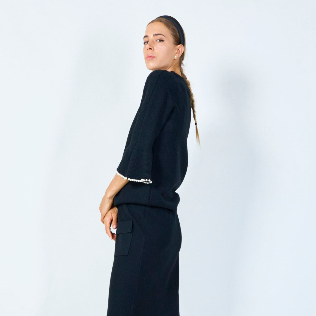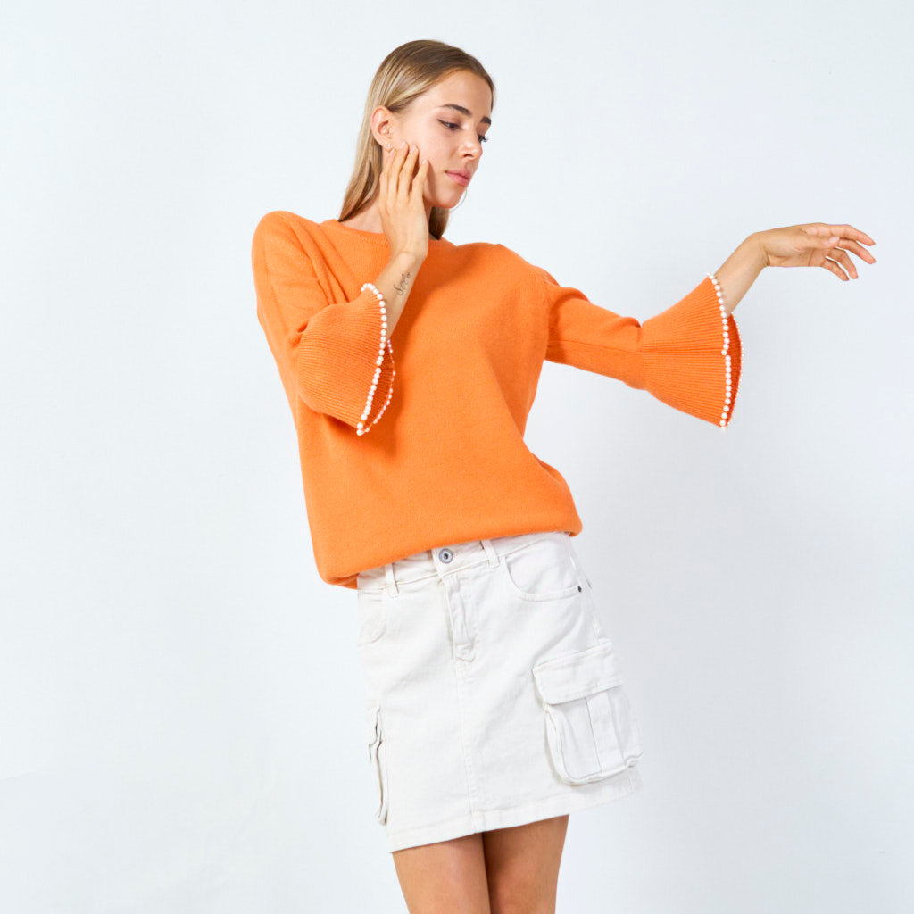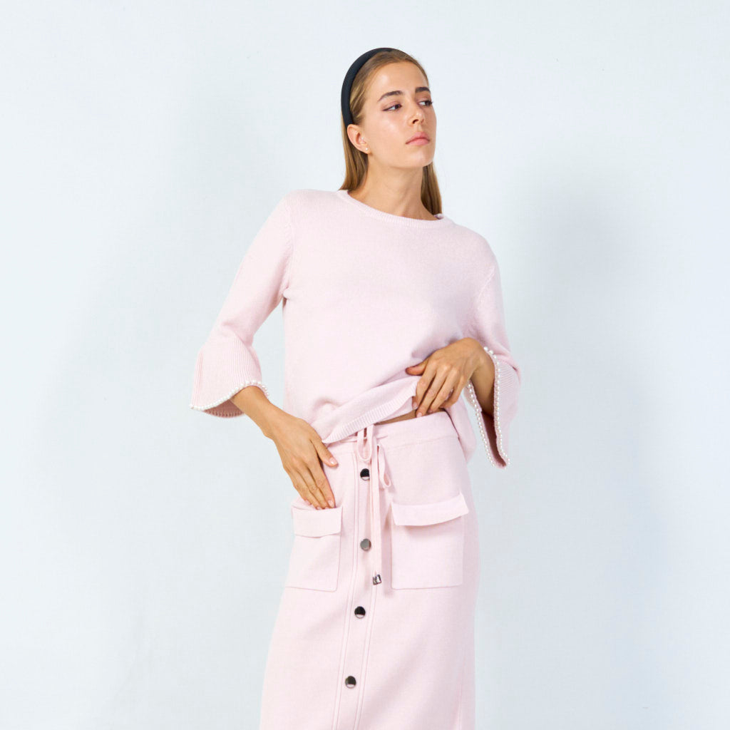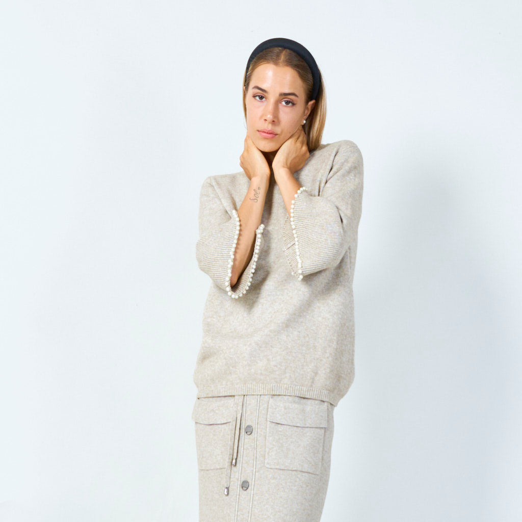 Κομψό πλεκτό πουλόβερ με μαργαριτάρι