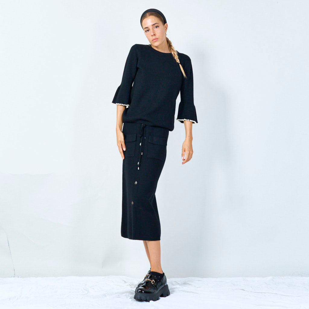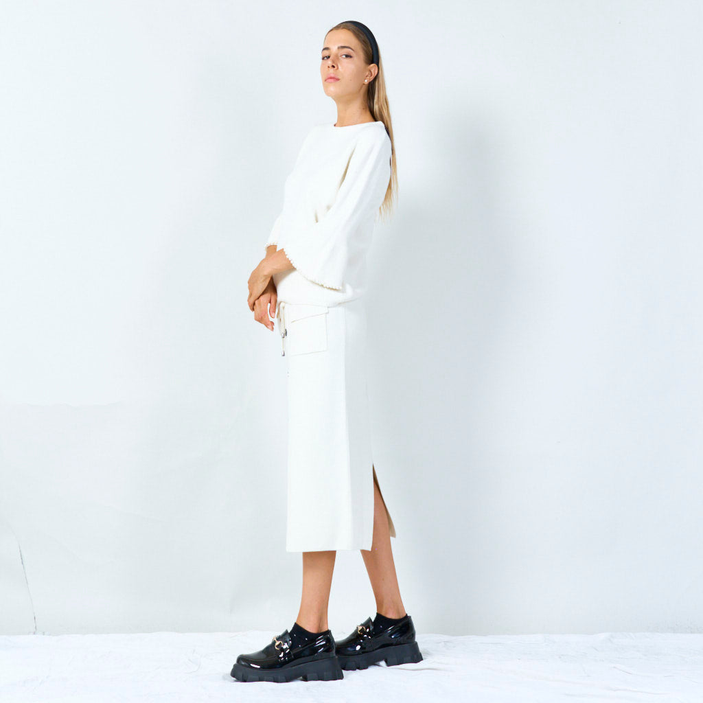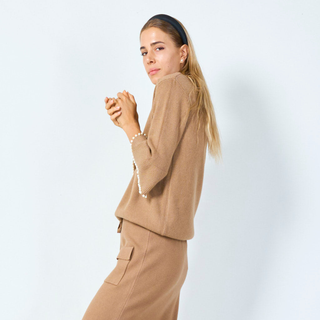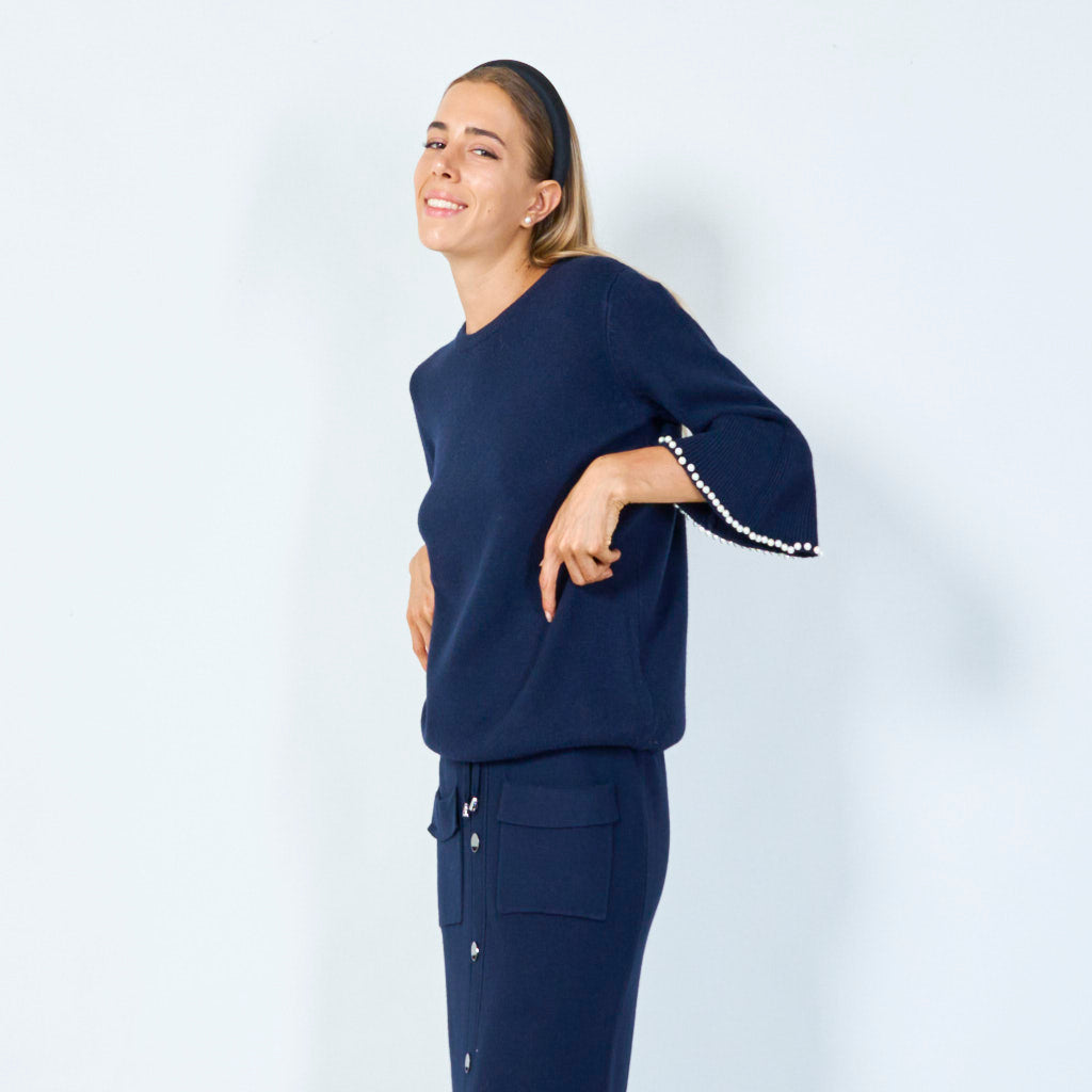 Κομψό πλεκτό πουλόβερ με μαργαριτάρι