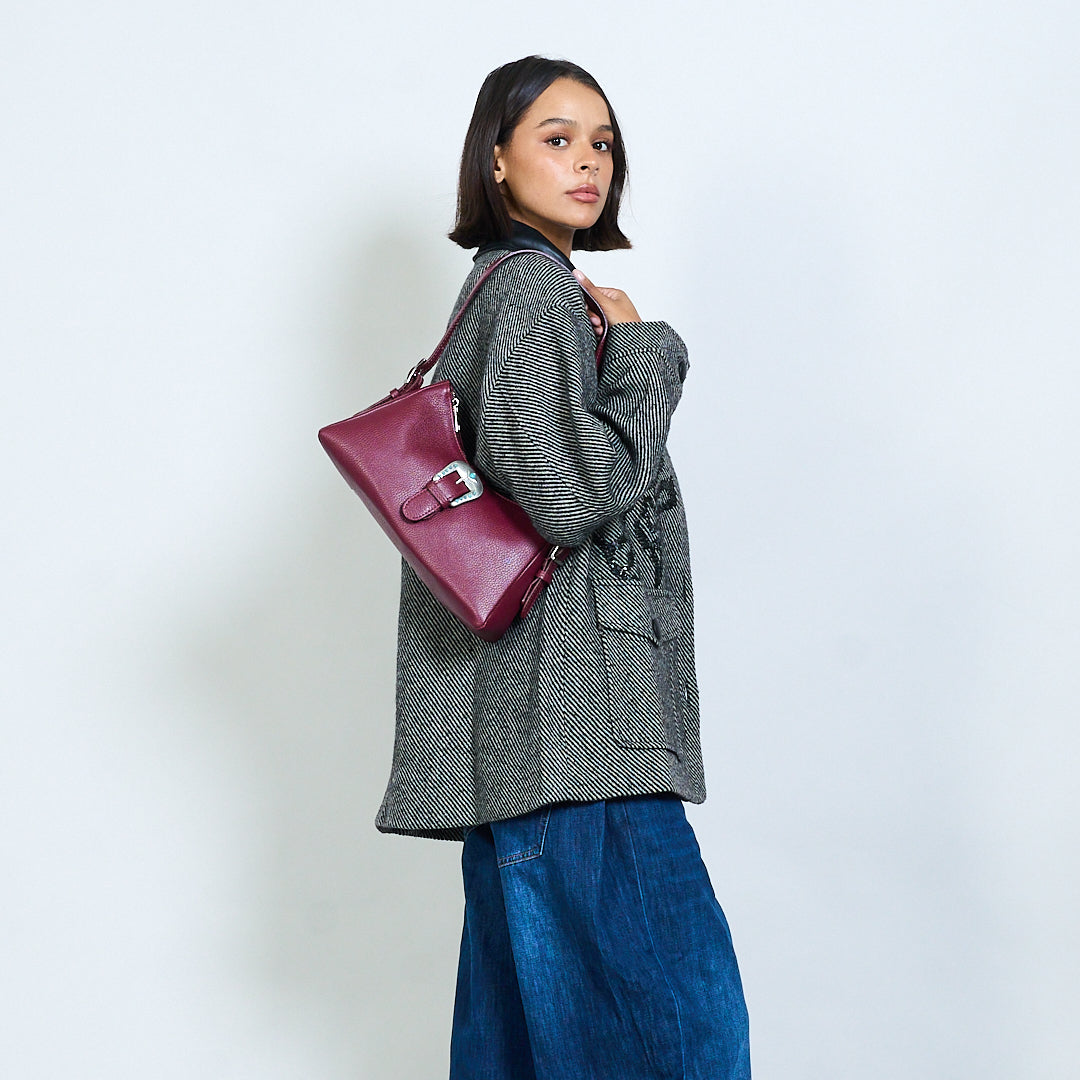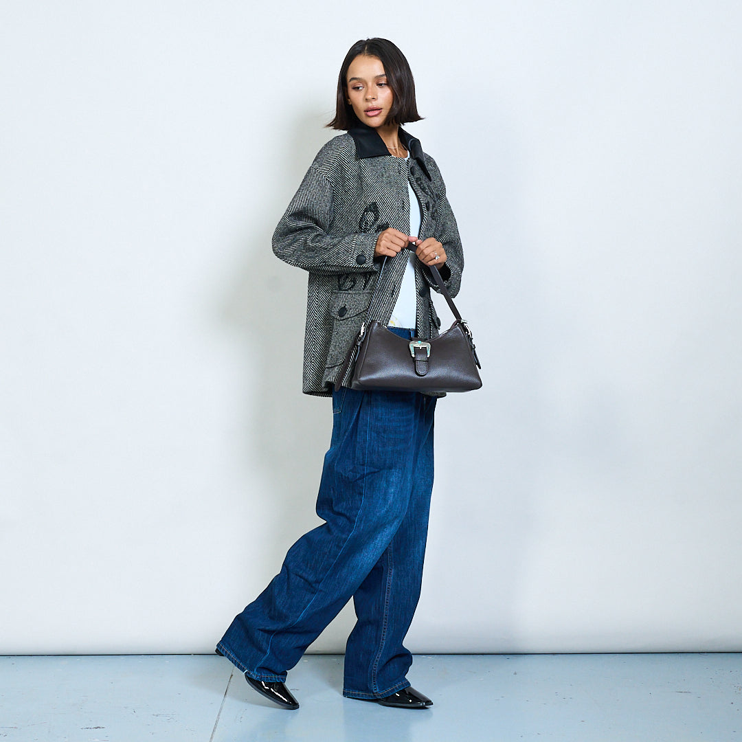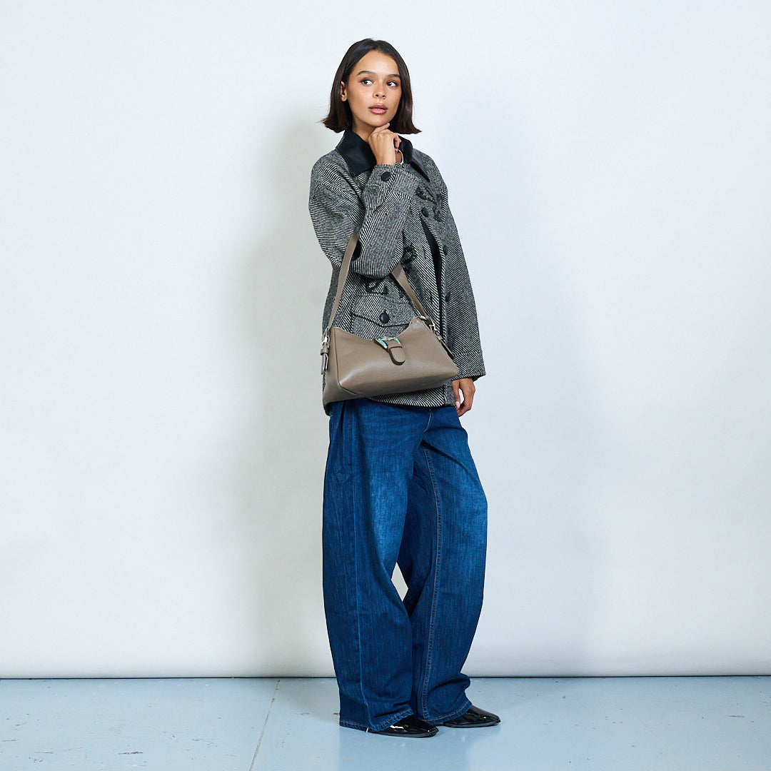 Λεπτομέρειες πόρπης δομημένη δερμάτινη τσάντα ώμου