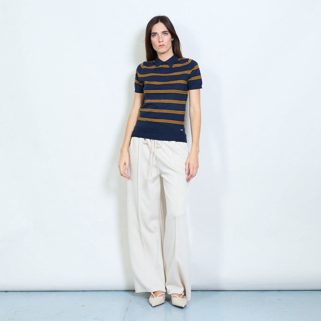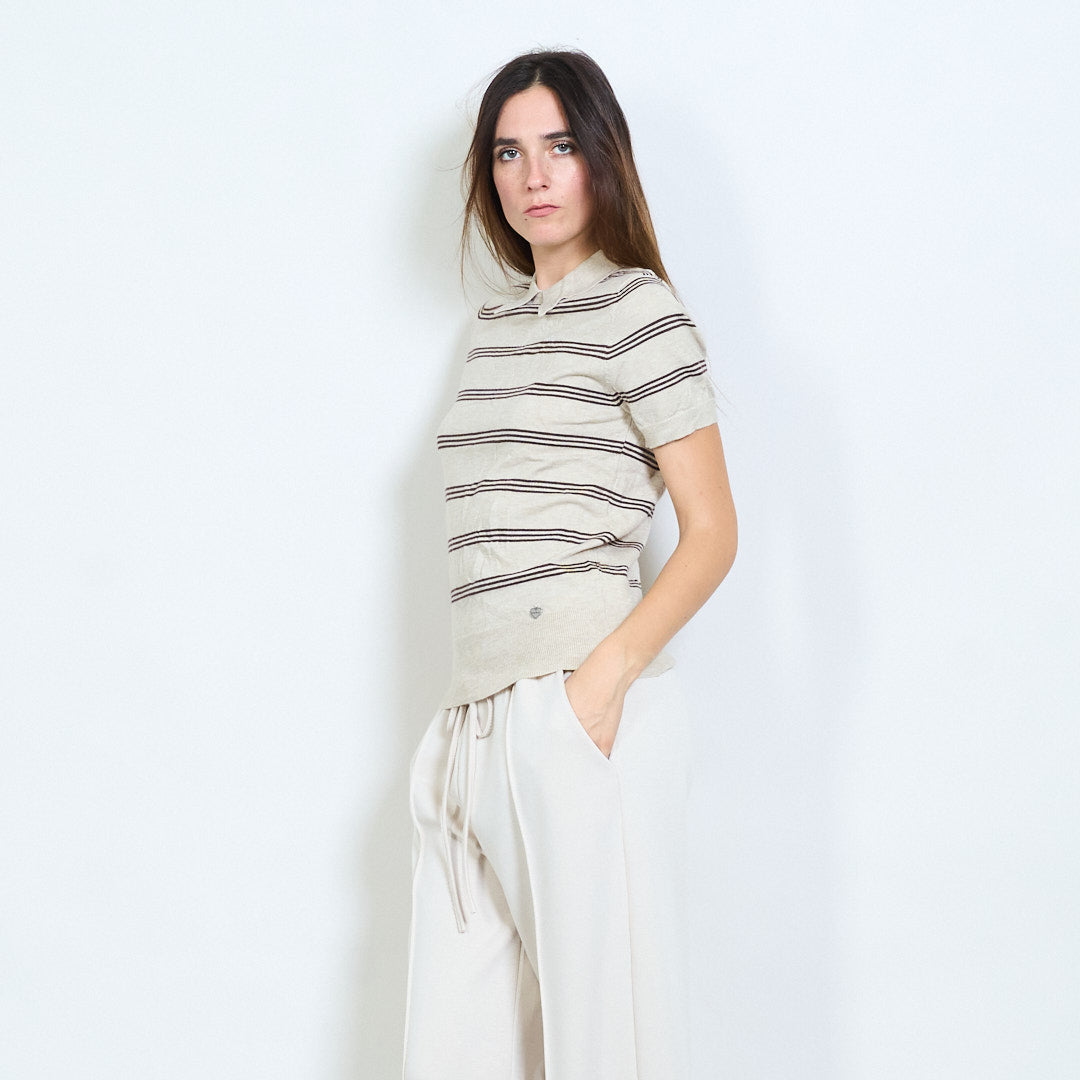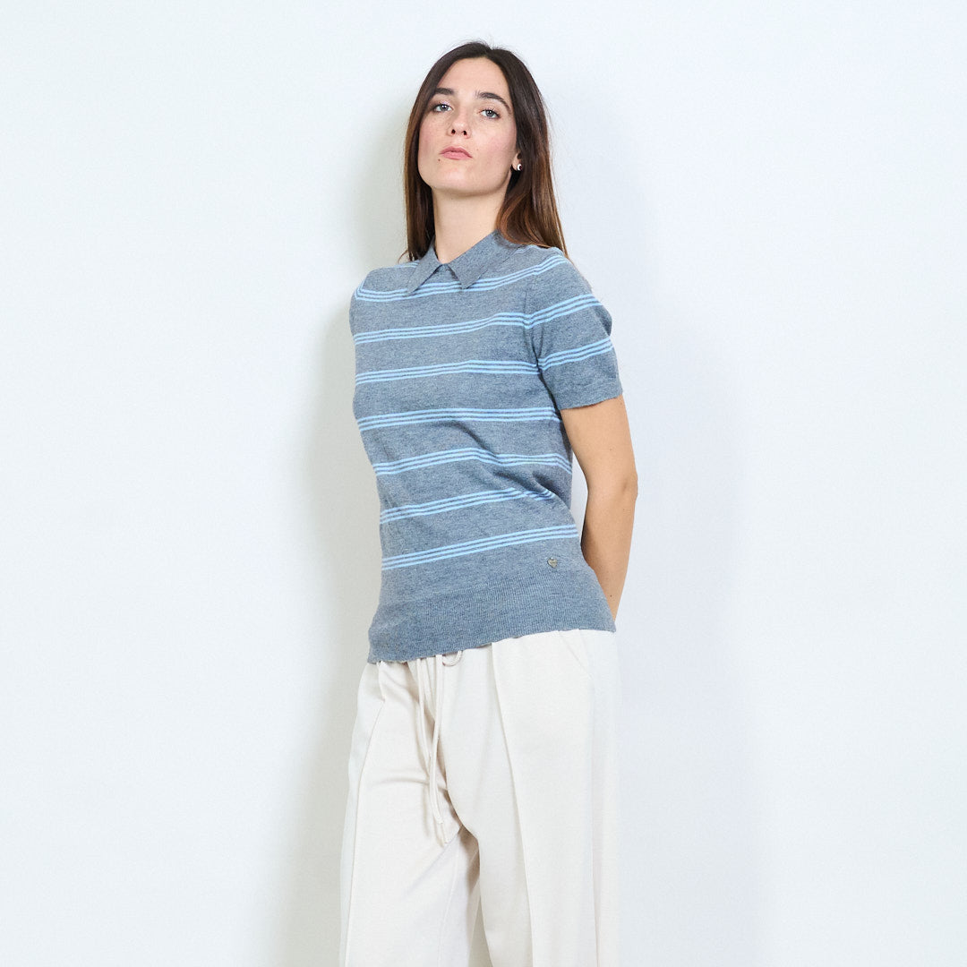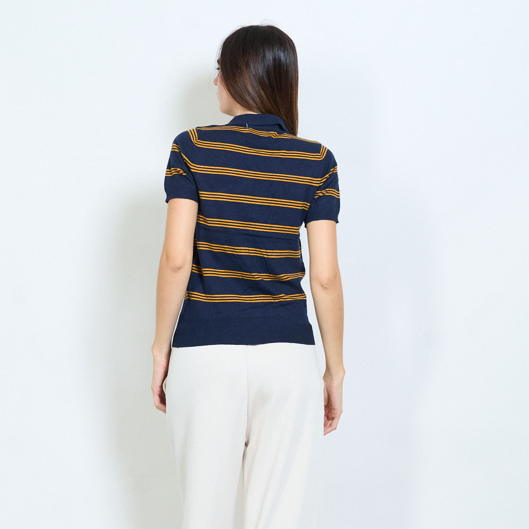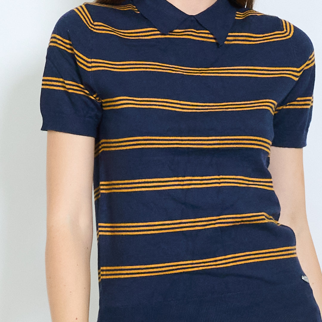 Ριγέ με κοντό μανίκι πλεκτό πόλο κορυφή με καρδιακό έμβλημα λεπτομέρεια χονδρική