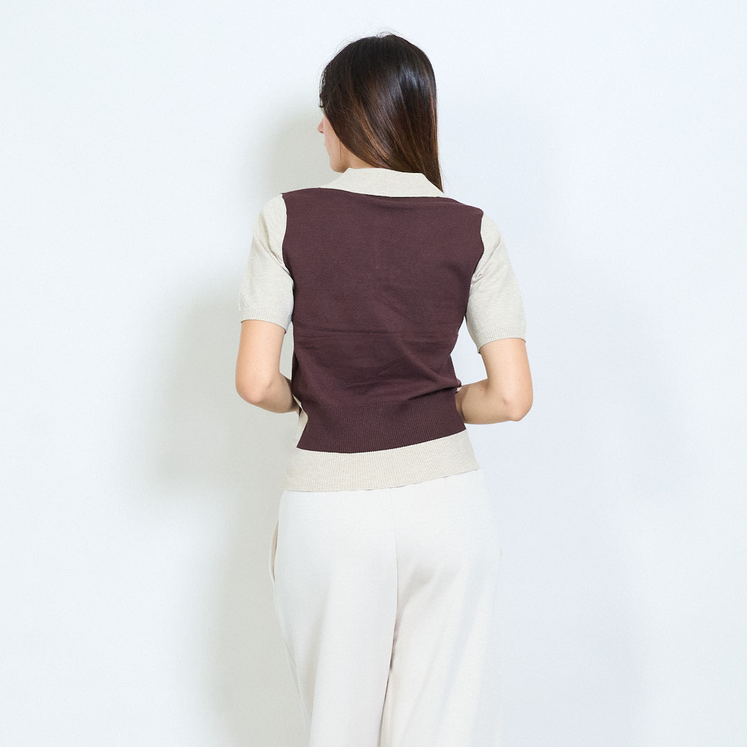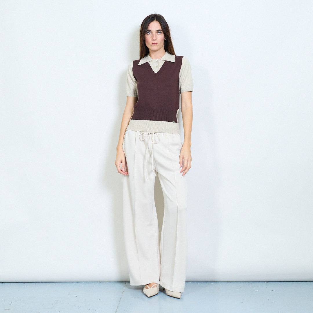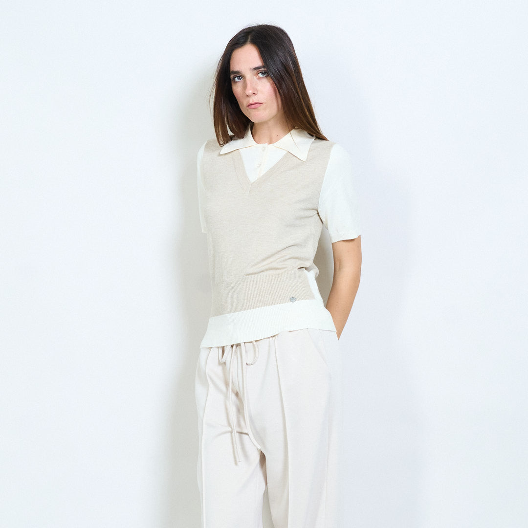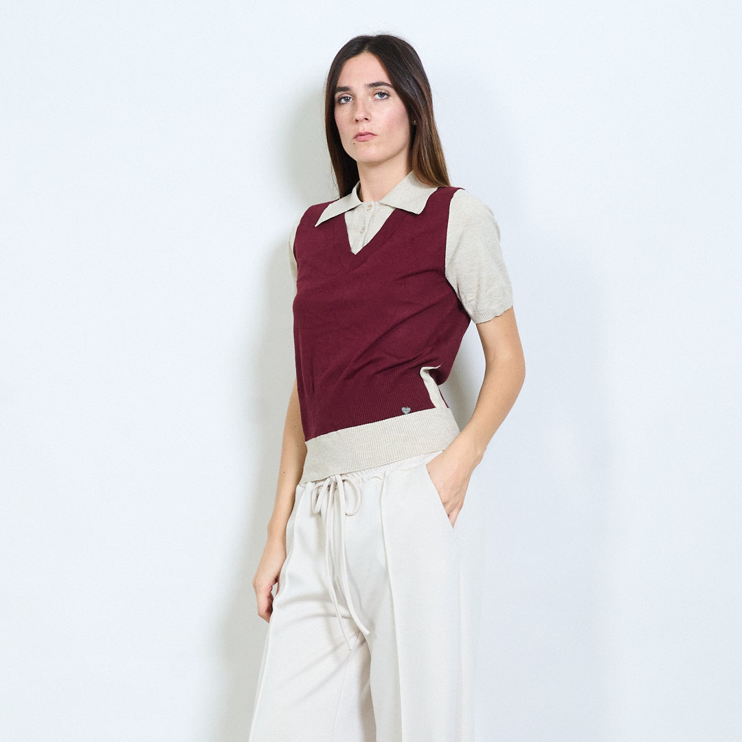 - Μοναδική στρώση με στρώση με κολάρο πόλο και σχεδιασμό V γιλέκο V-neck