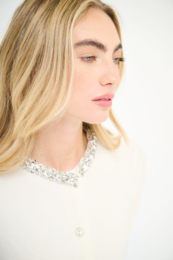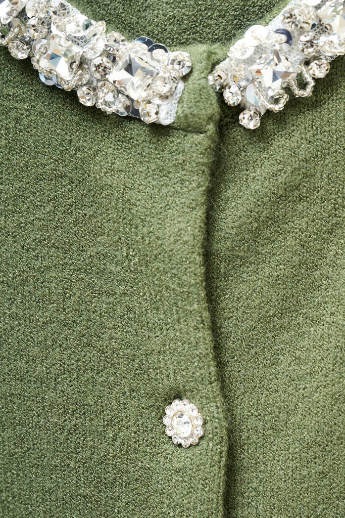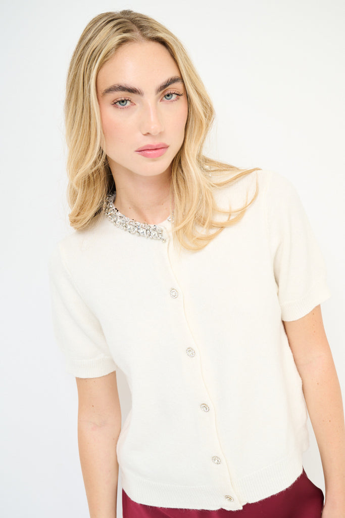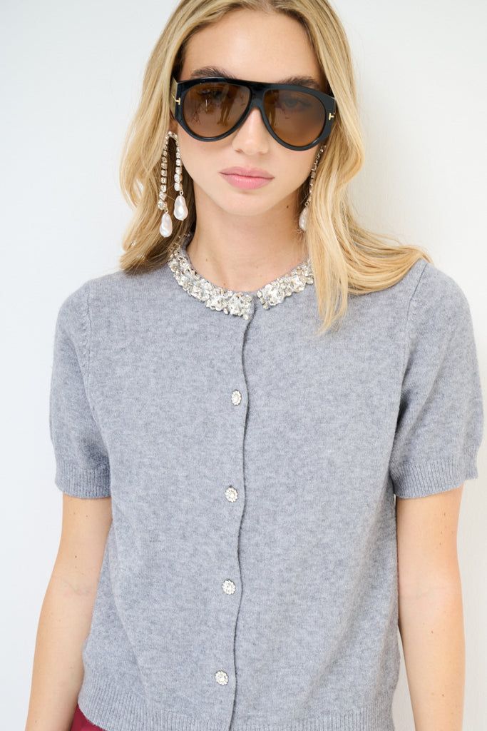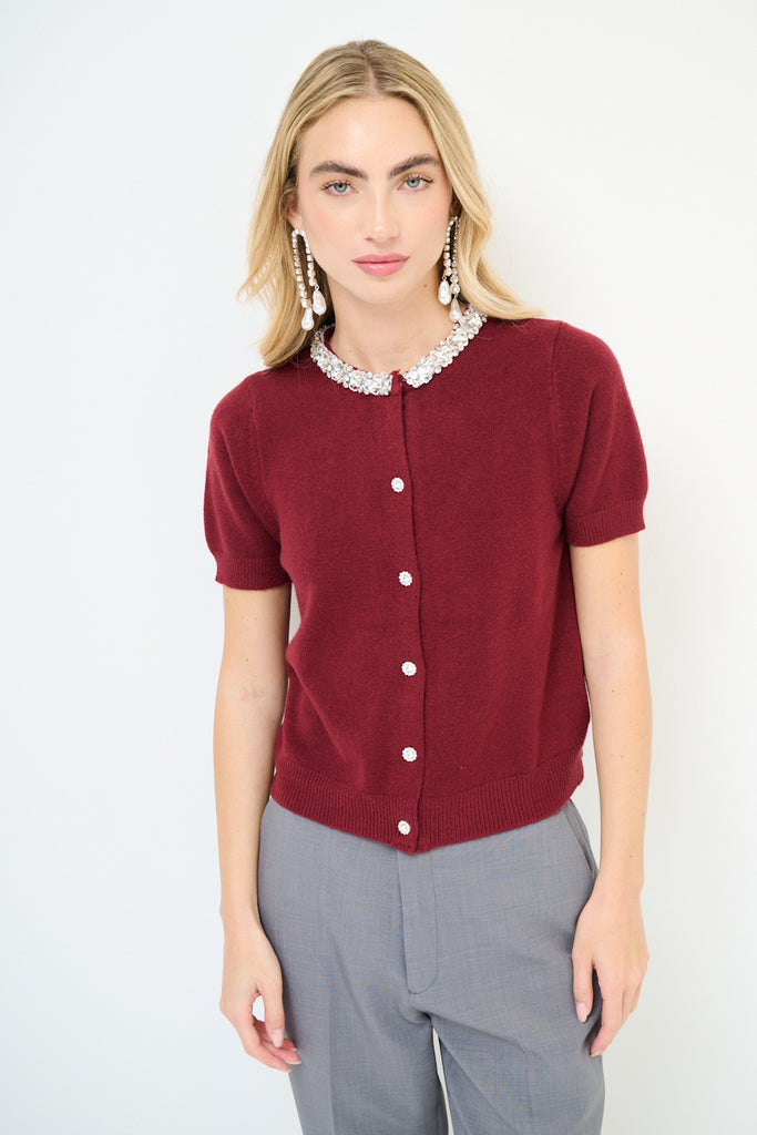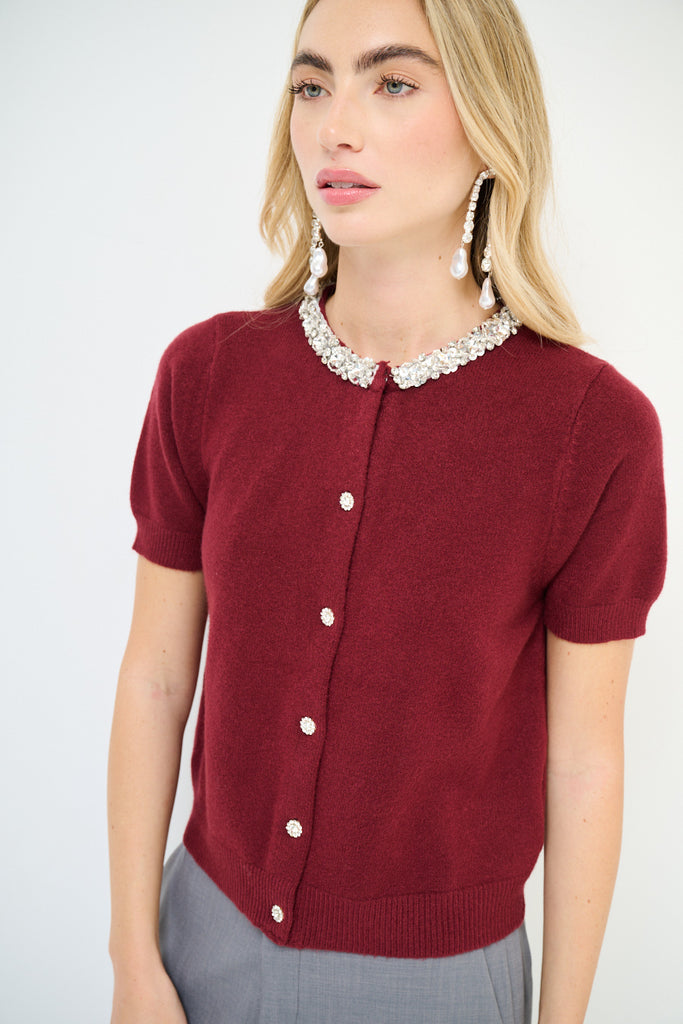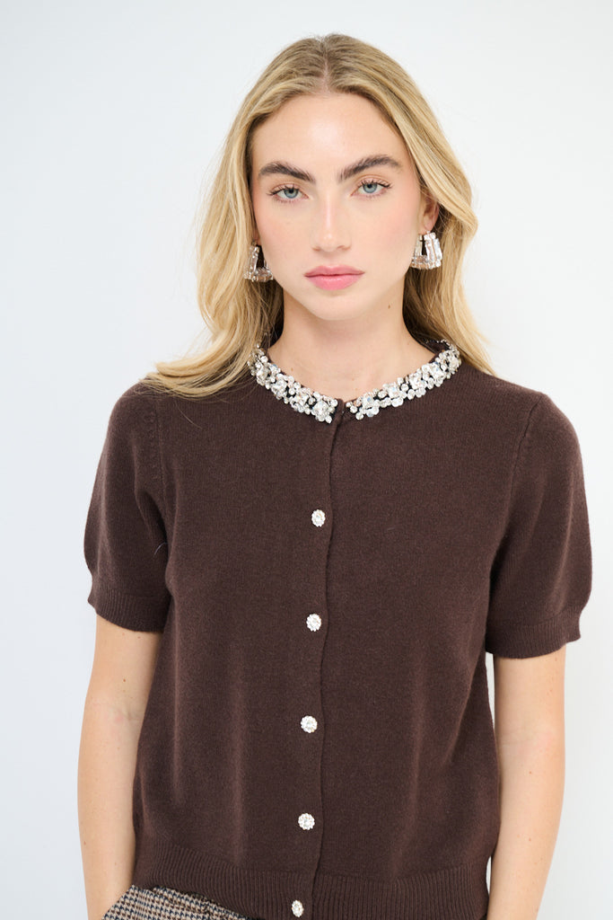 Κοσμηματοποιημένο κολάρο κοντό μανίκι κουμπί μπροστινή ζακέτα χονδρική πώληση
