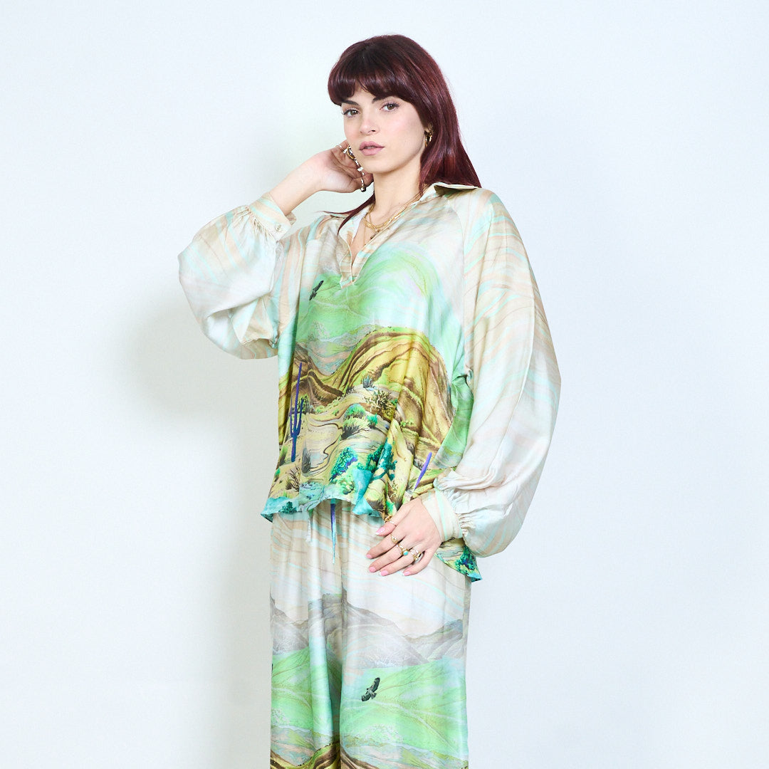 - Μπλούζα σχεδιασμένη με χαλαρή και αέρινη σιλουέτα