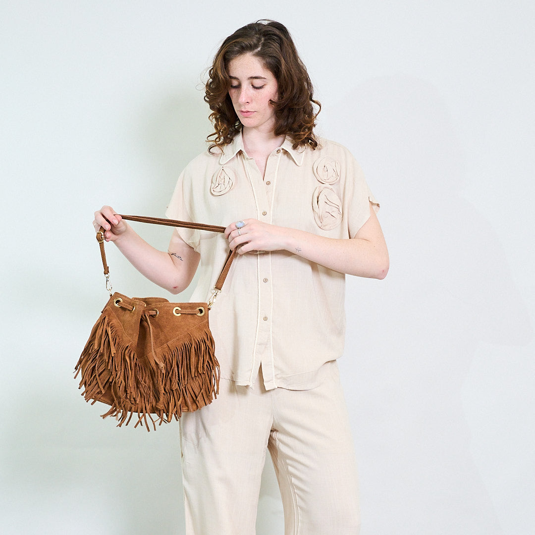 - Μοντέρνο τσάντα crossbody φτιαγμένη από μαλακό ύφασμα από σουέτ
