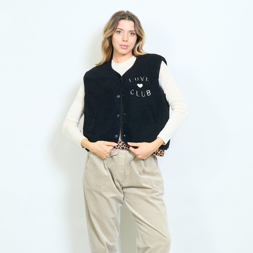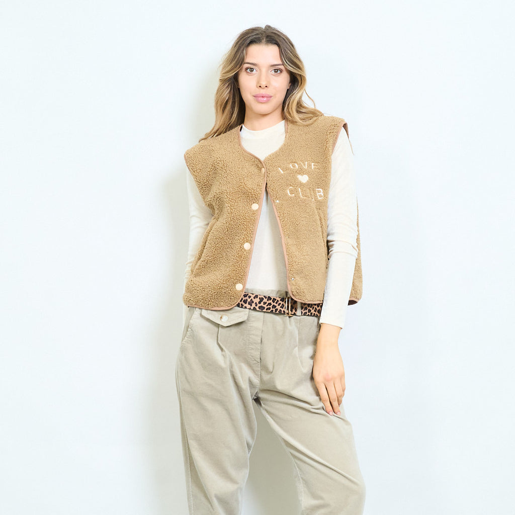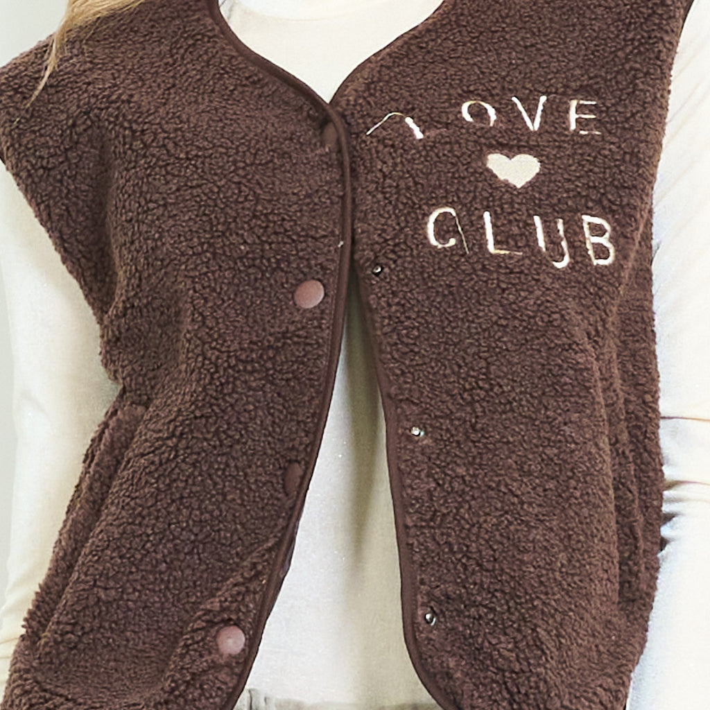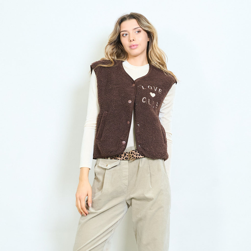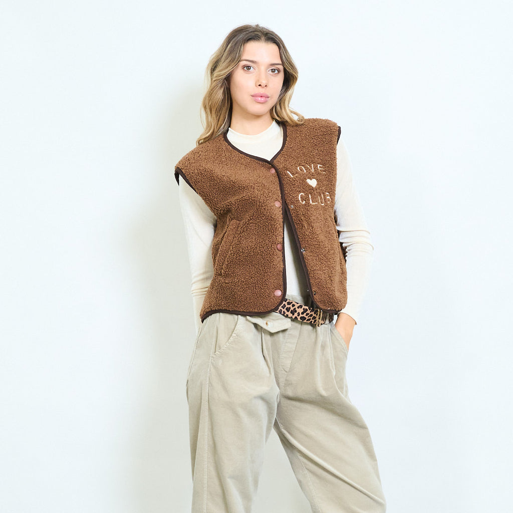 Love club κεντημένη fleece κουμπιά γιλέκο χονδρικής