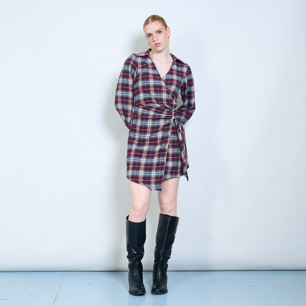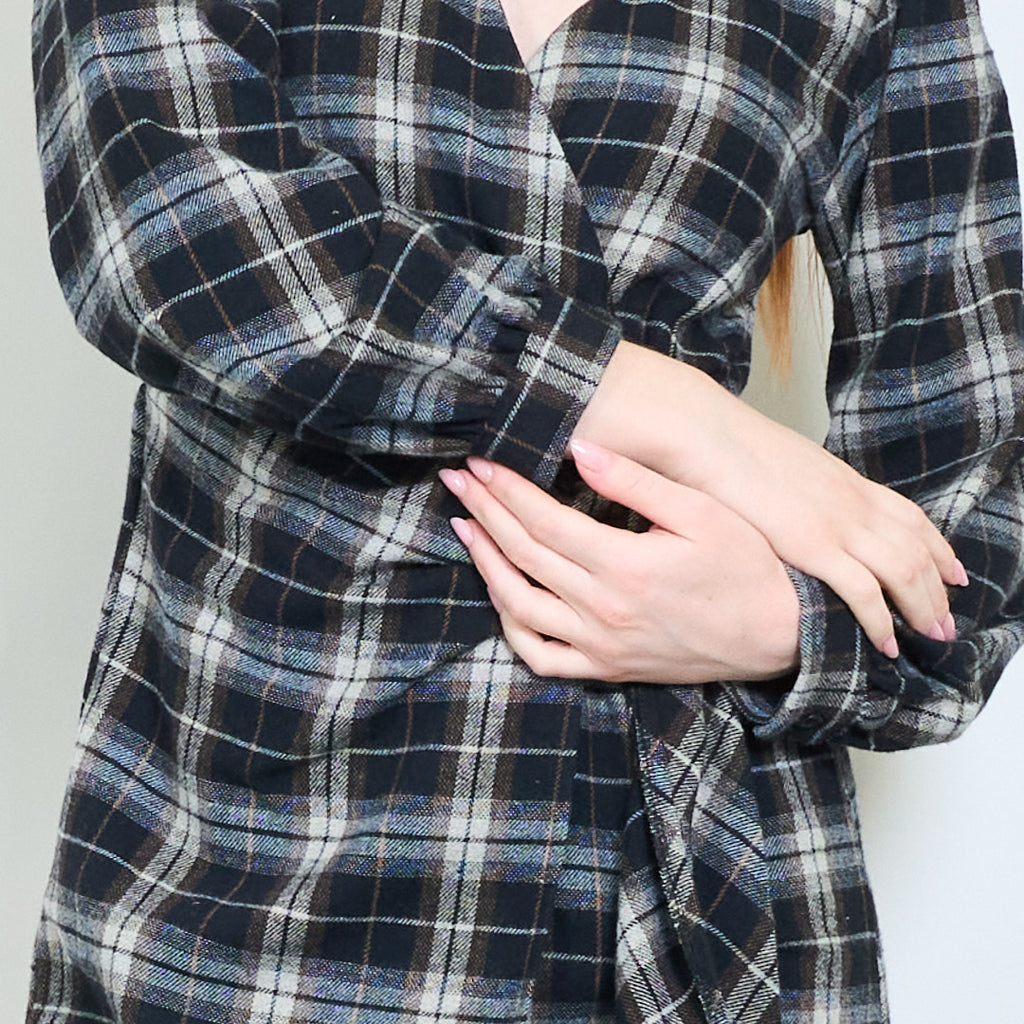 Μίνι καρό φόρεμα καρό με ζώνη με μακρύ μανίκι χονδρική