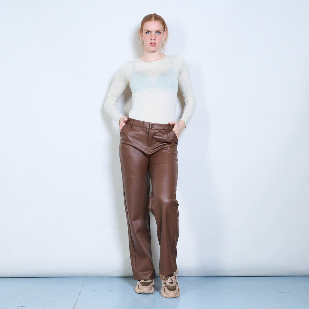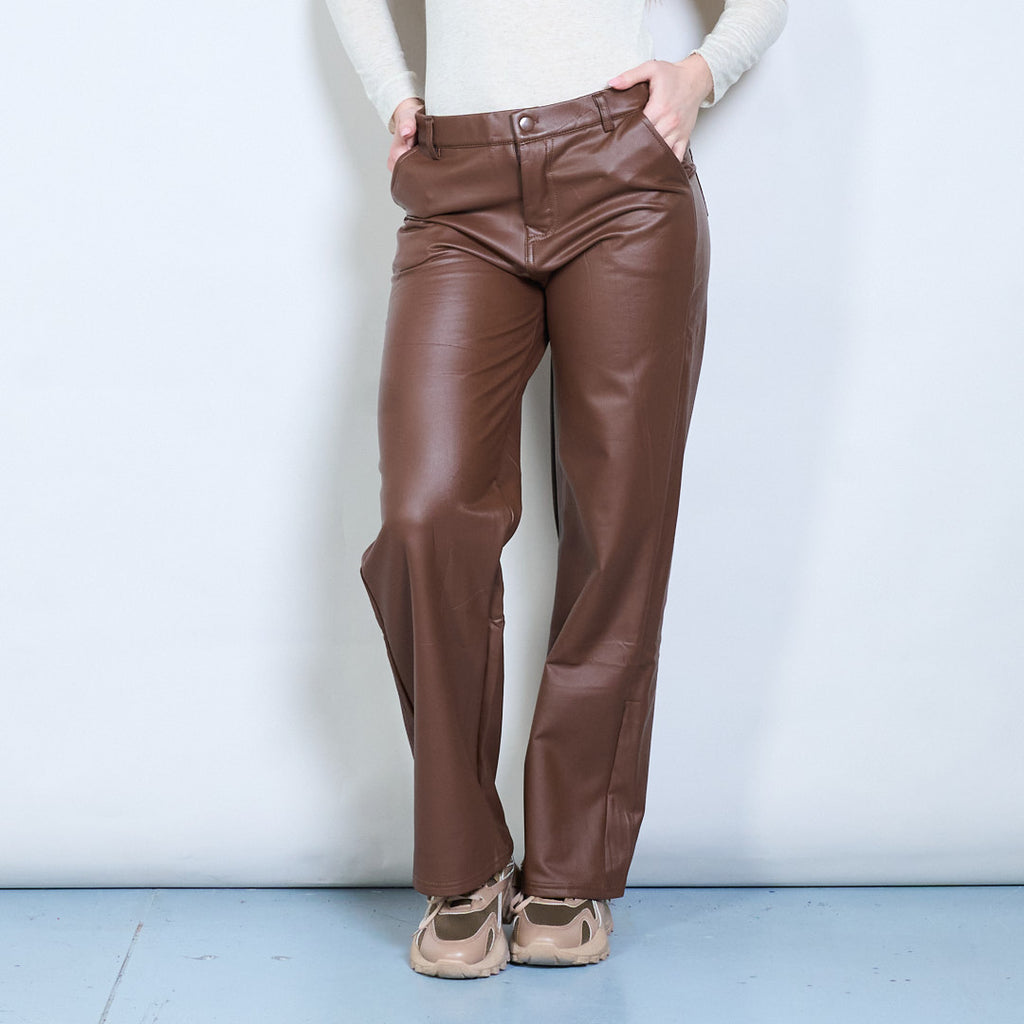 Ψηλόμεση δερμάτινο ίσιο παντελόνι προσαρμοσμένο στα μέτρα σας χονδρική