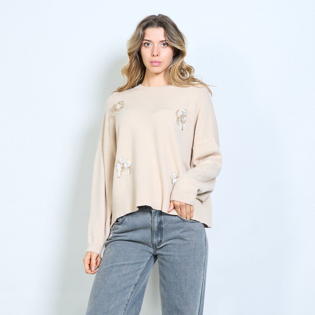 Beaded floral εξωραϊσμό πλήρωμα λαιμό πλεκτό πουλόβερ χονδρικής