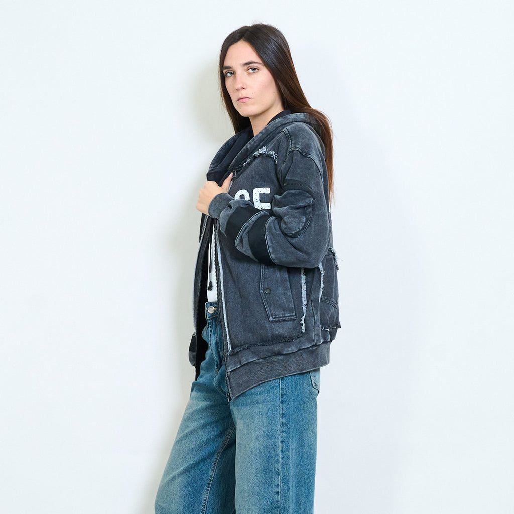 Distreded Graphic Varsity Style Zip Hoodie Jacket Χονδρικό
