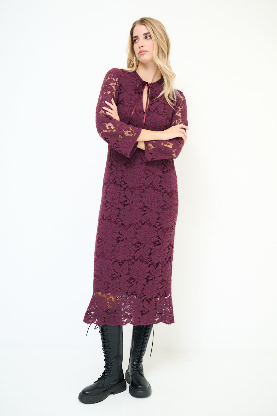 • Κομψό φόρεμα MIDI σχεδιασμένο σε ένα μοτίβο floral δαντέλας
