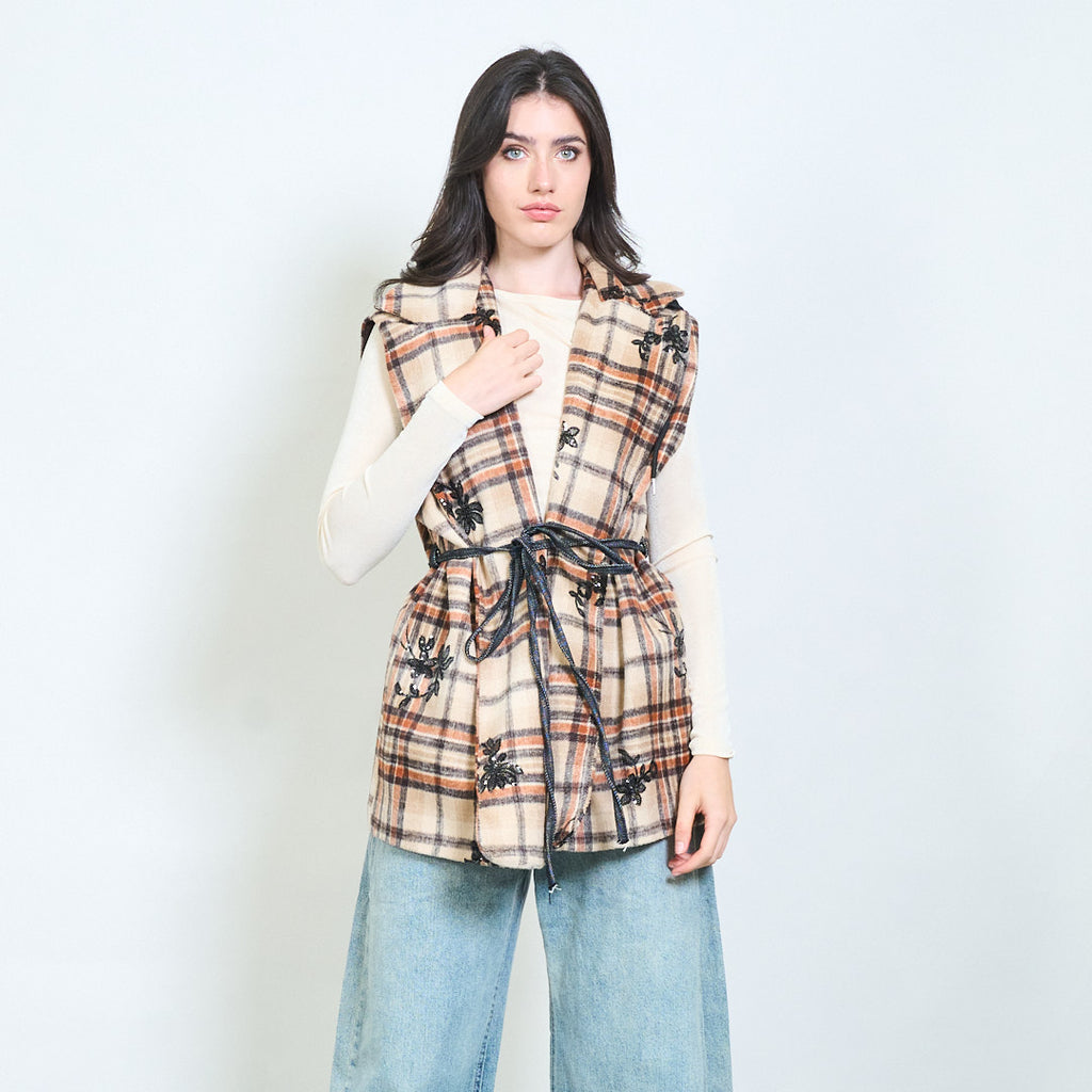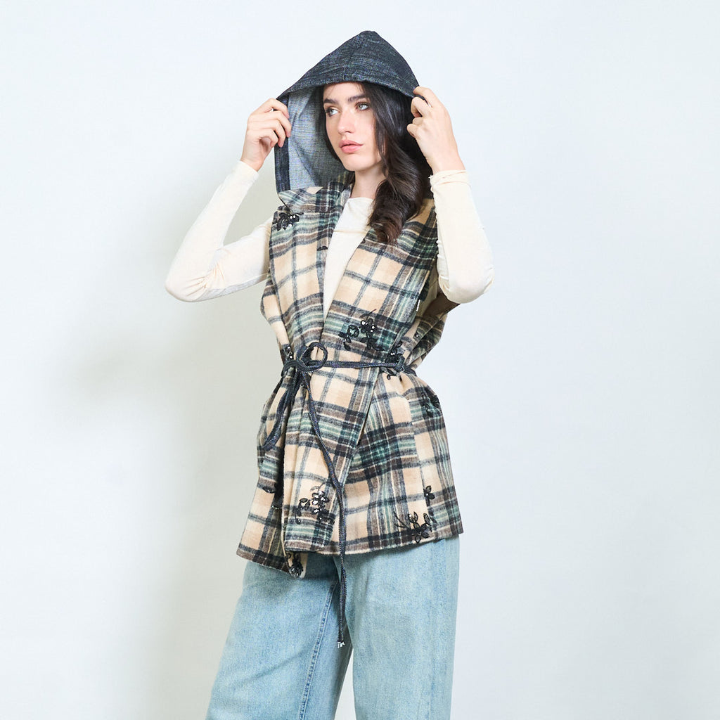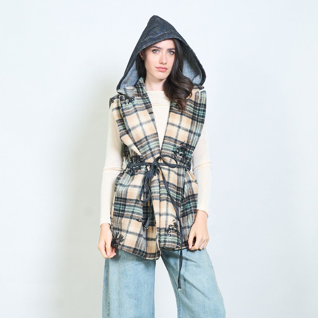 Plaid κουκούλα Αμάνικο γιλέκο χονδρικής πώλησης