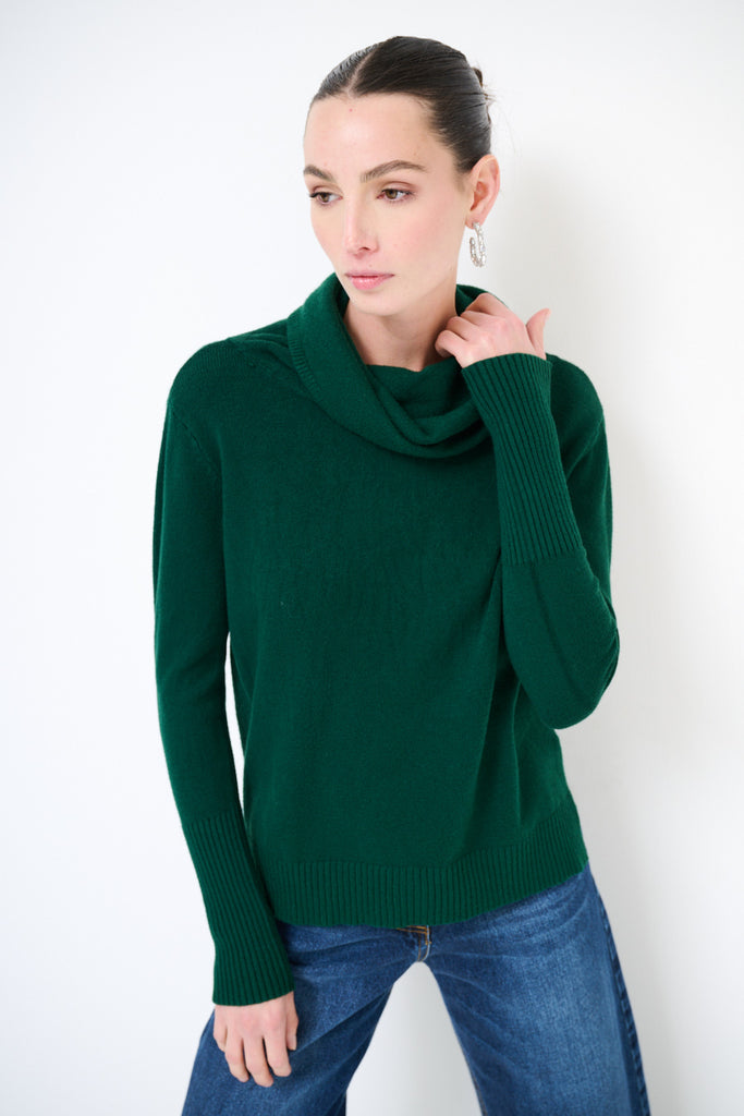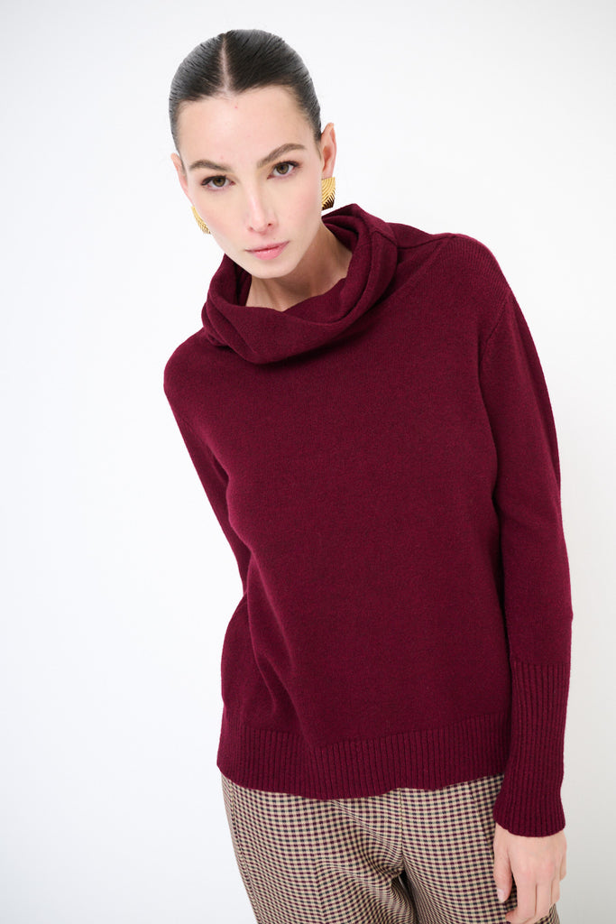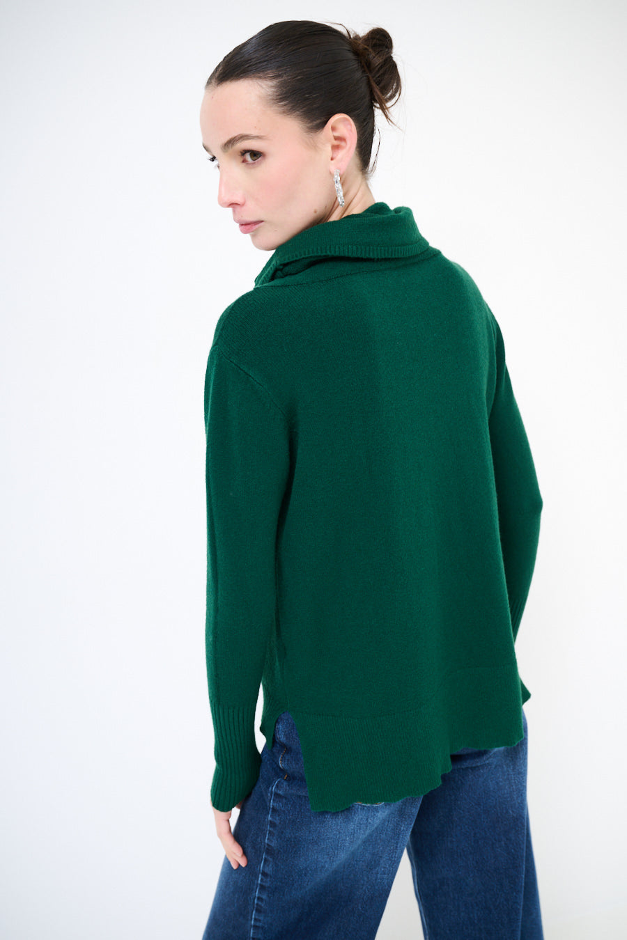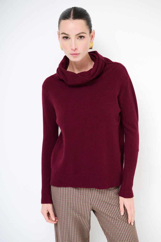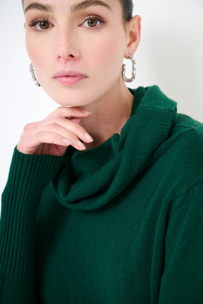 Πλεκτό πουλόβερ με μαλακό μανίκι με ντραπέ με λαιμόκοψη χονδρικής