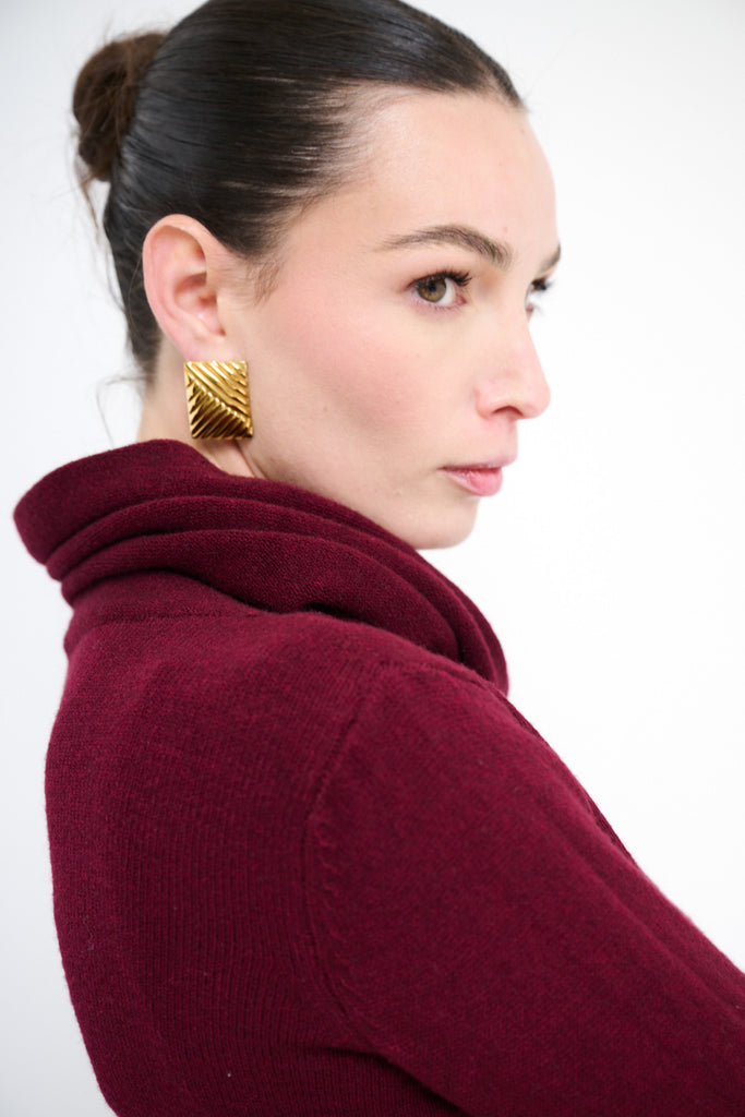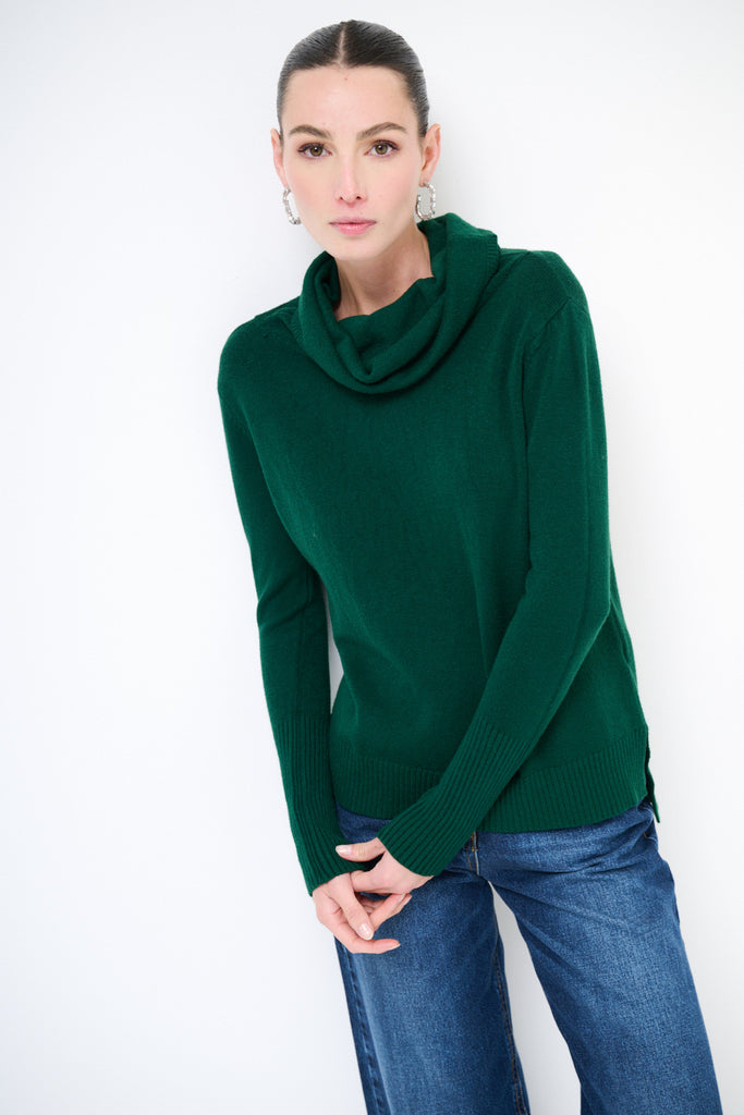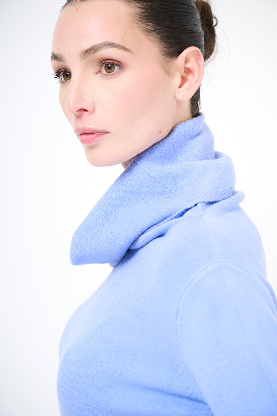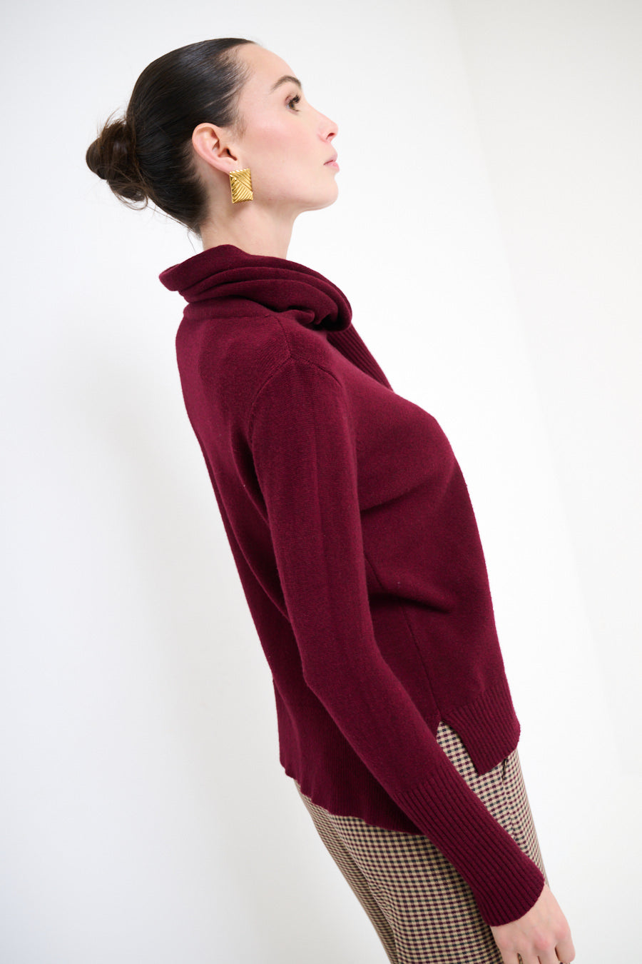 Πλεκτό πουλόβερ με μαλακό μανίκι με ντραπέ με λαιμόκοψη χονδρικής