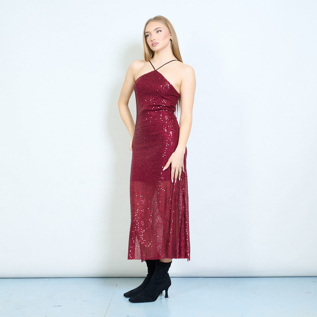 - Πλήρως διακοσμημένο με αστραφτερές πούλιες διατεταγμένες σε λεπτές κάθετες ρίγες