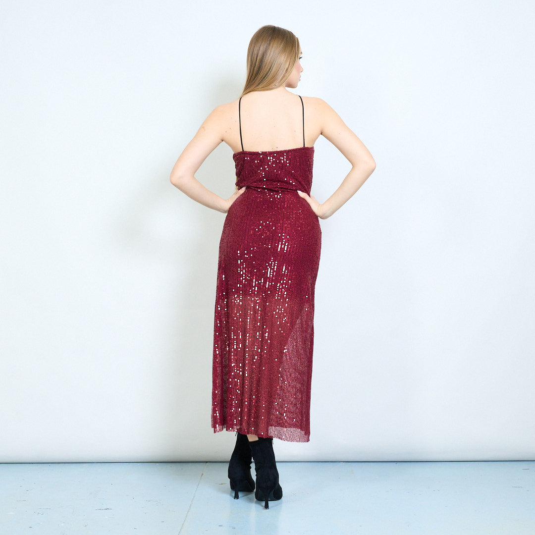 Παγιέτες ριγέ με ντραπέ φόρεμα σπαγγέτι με λουράκι χονδρικής