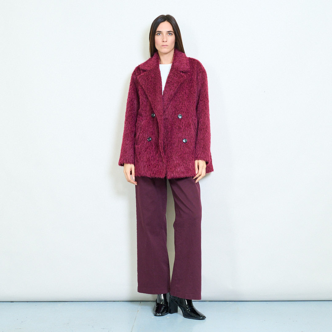 Σύντομη υφή faux γούνα διπλό παλτό χονδρικό παλτό