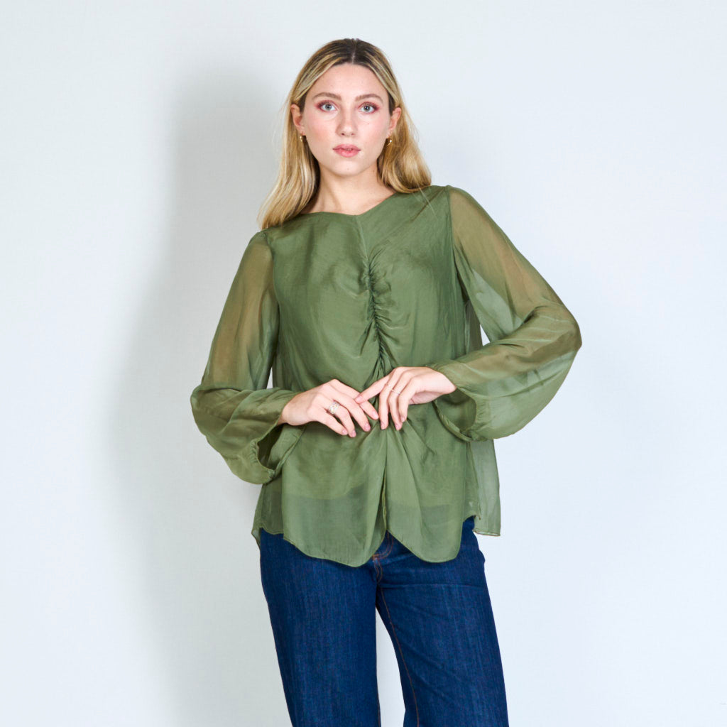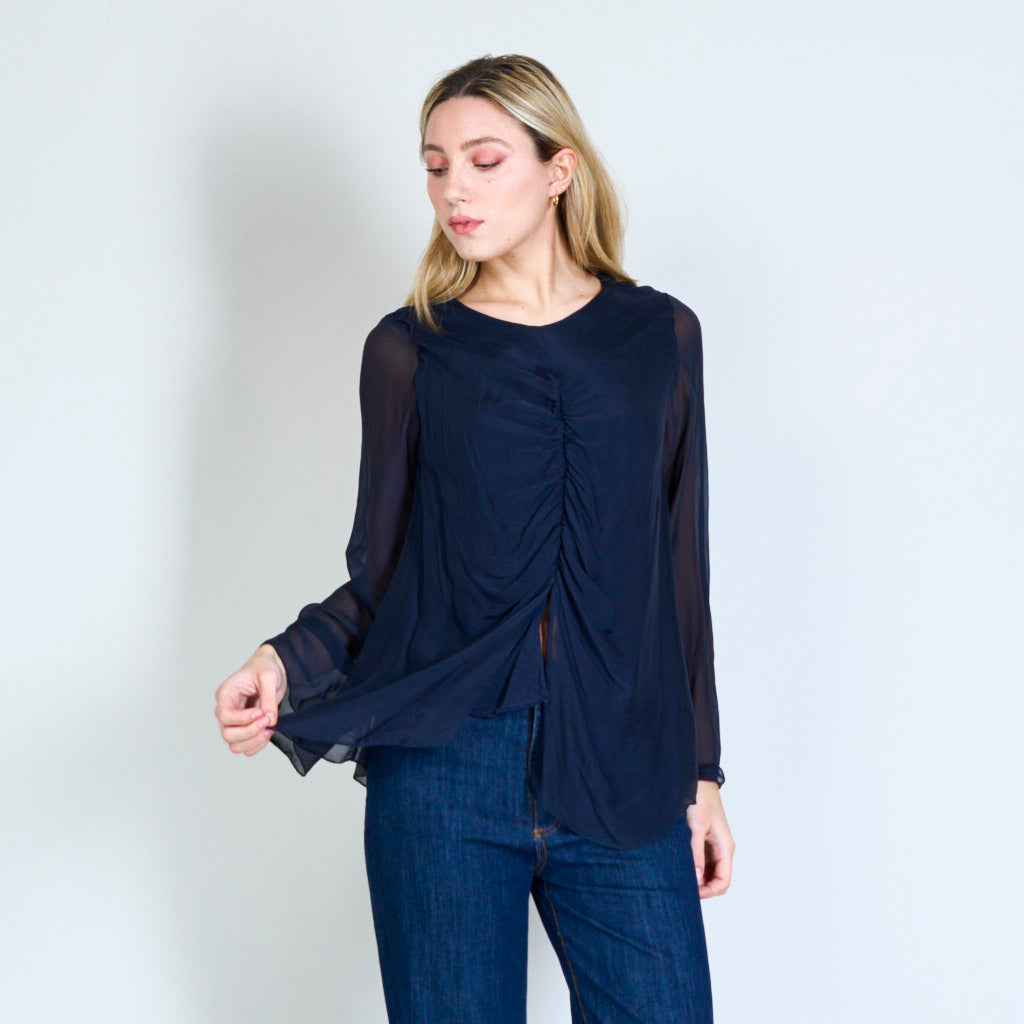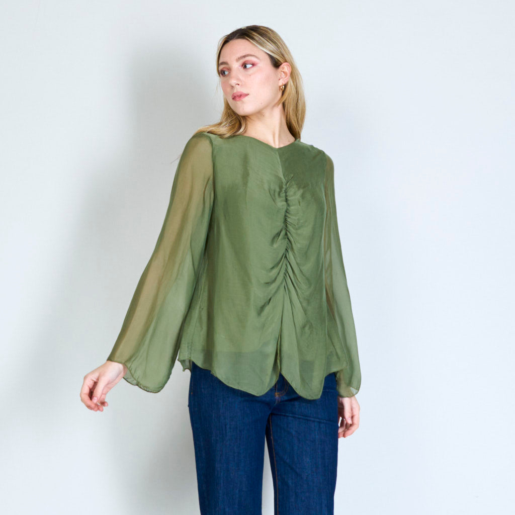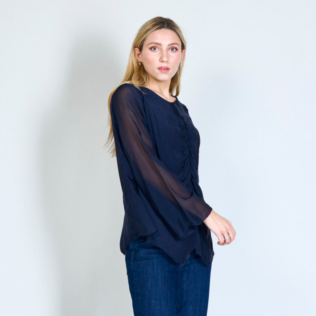 Μπλούζα μεταξιού σιφόν με χονδρική μεσαία κορνίζα