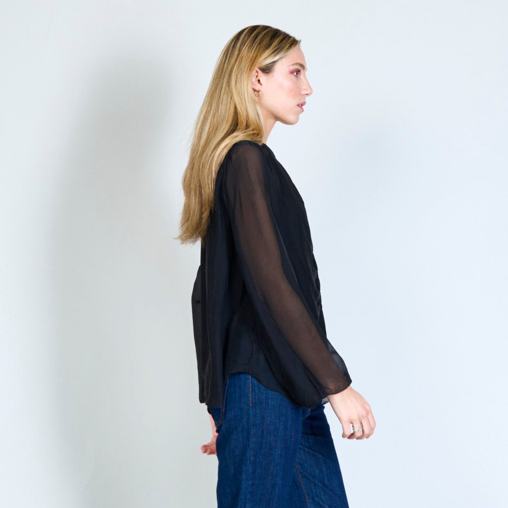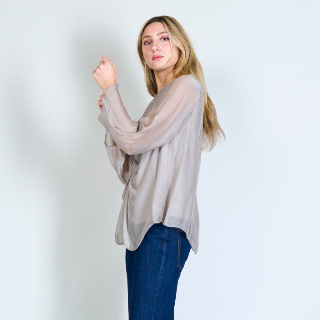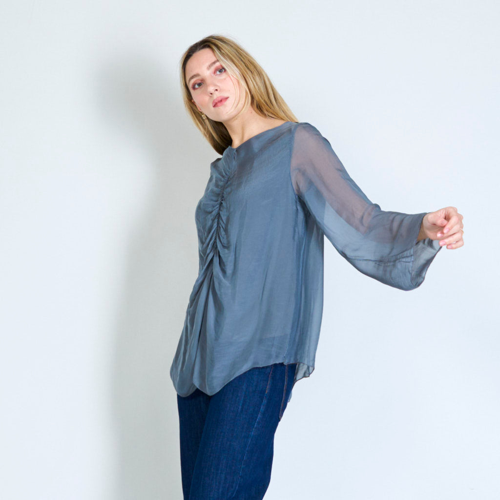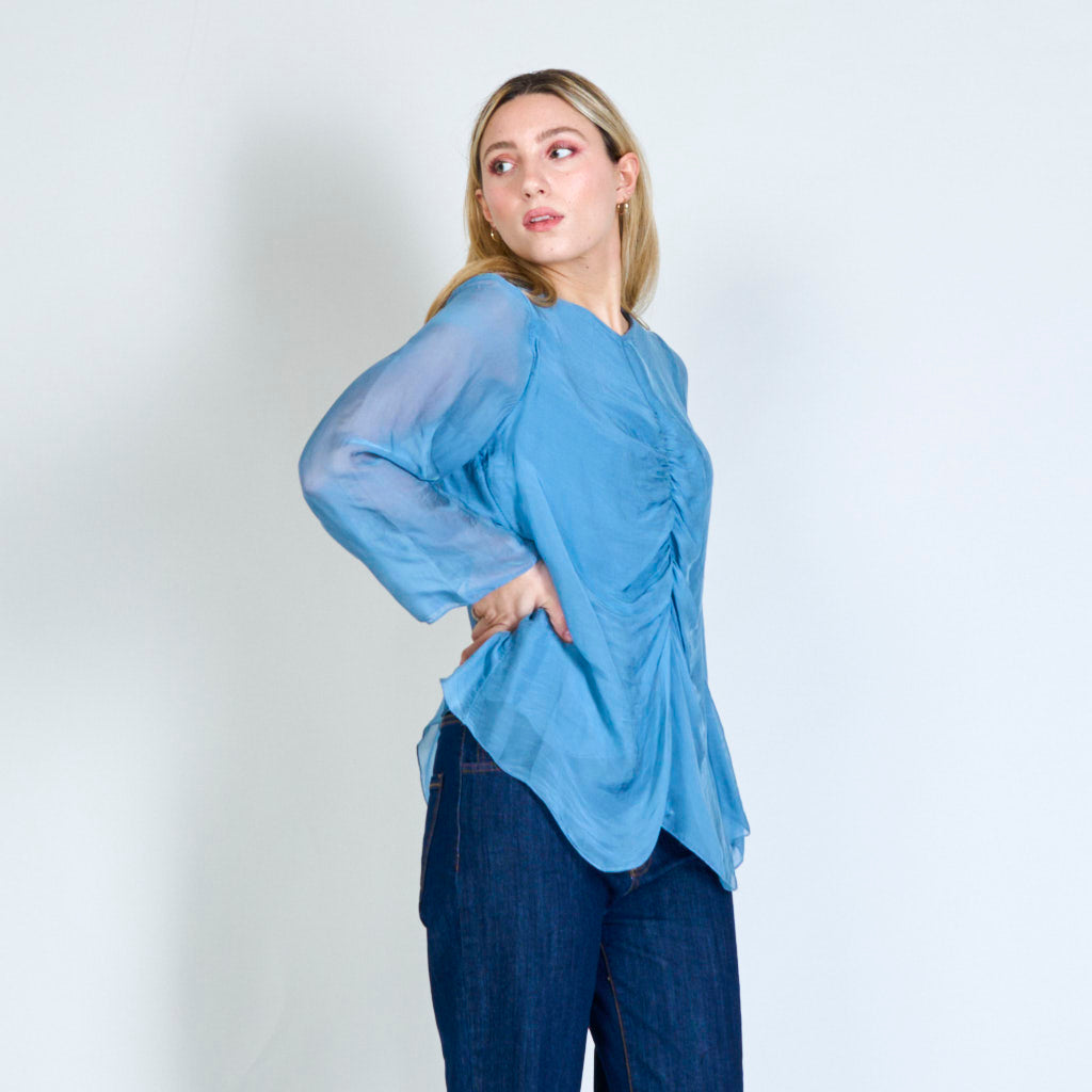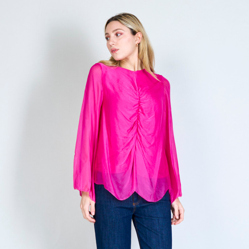 Μπλούζα μεταξιού σιφόν με χονδρική μεσαία κορνίζα