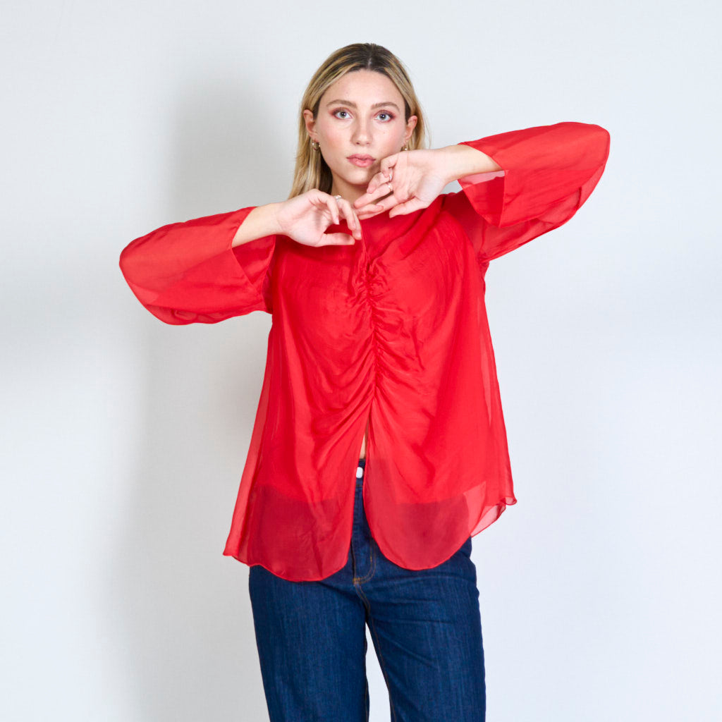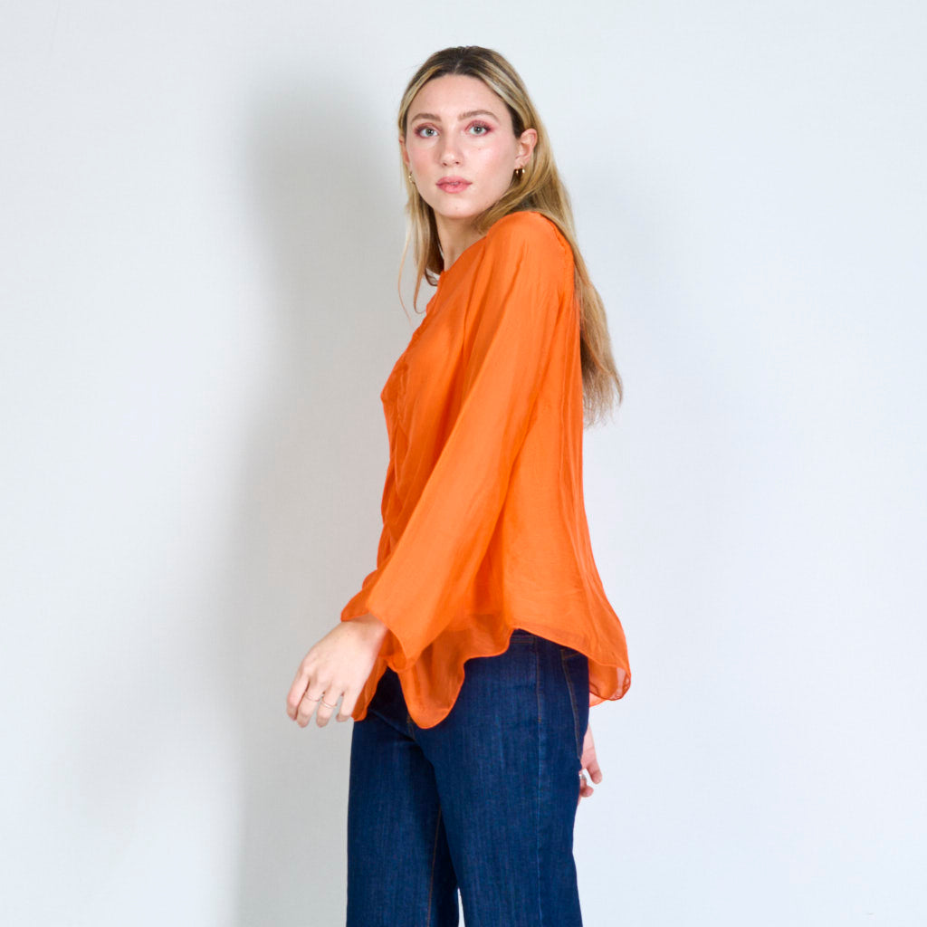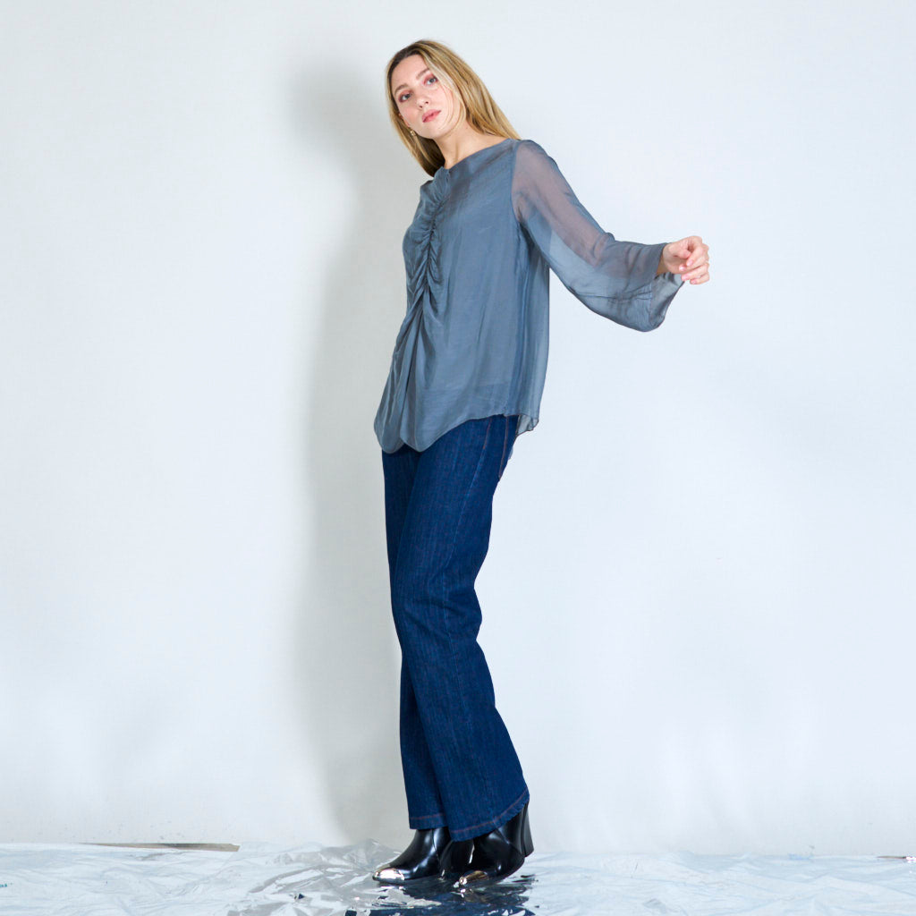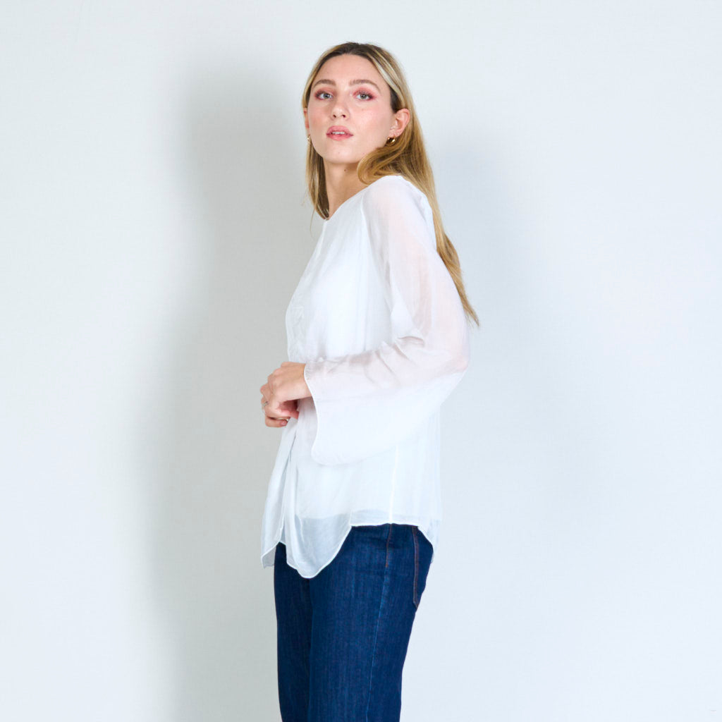 Μπλούζα μεταξιού σιφόν με χονδρική μεσαία κορνίζα