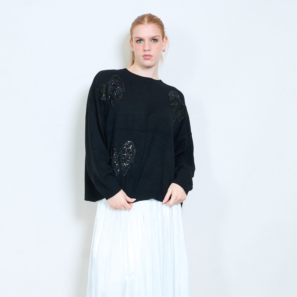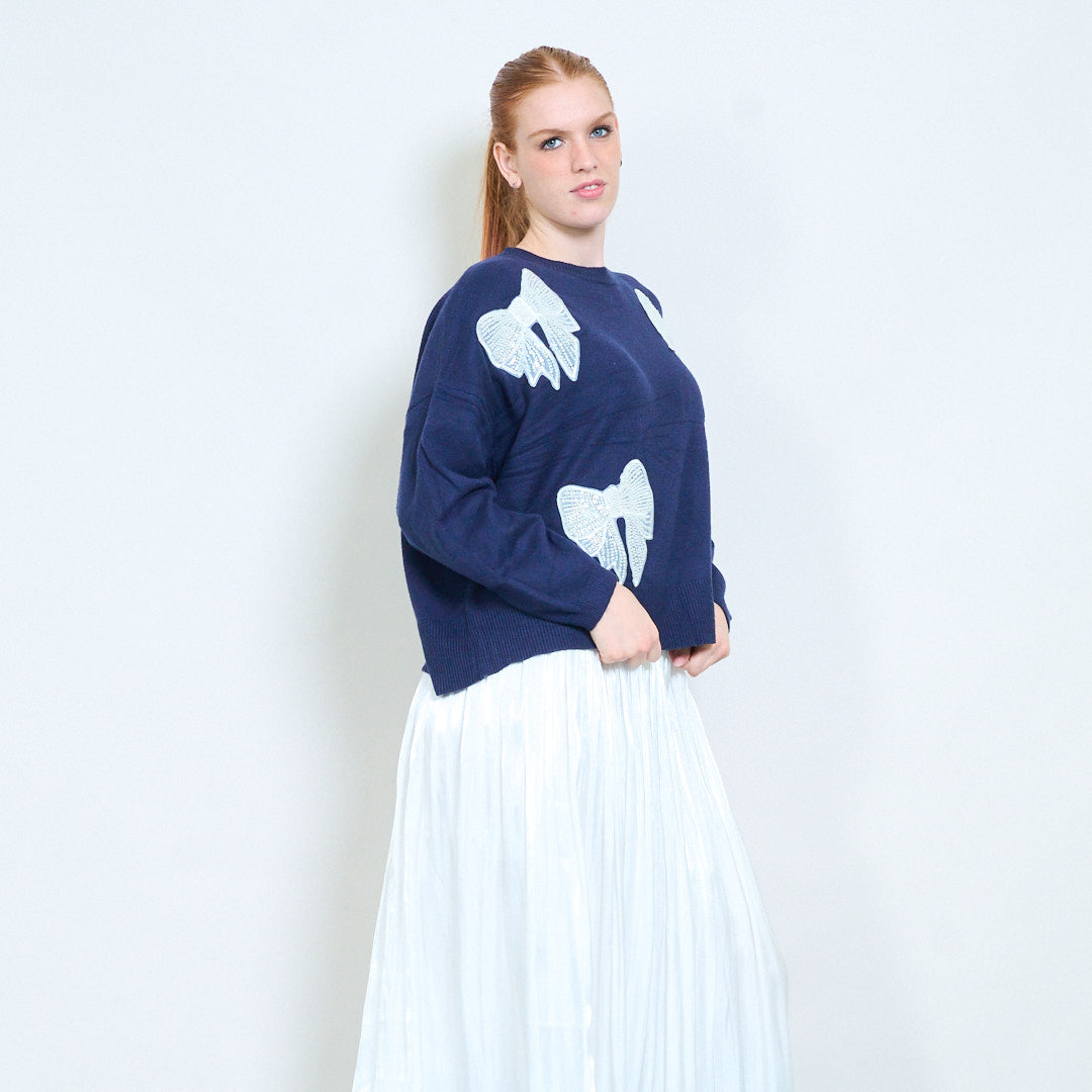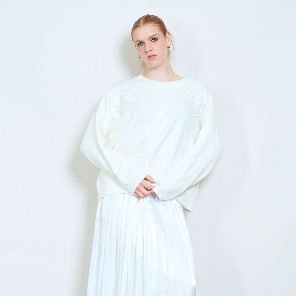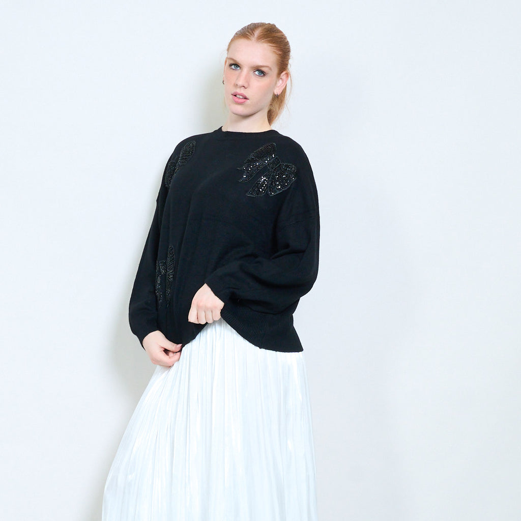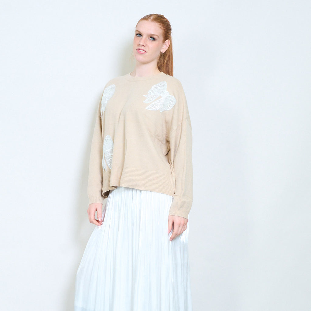 Πουλόβερ με στρογγυλή λαιμόκοψη απλικέ πεταλούδα στρας χονδρική