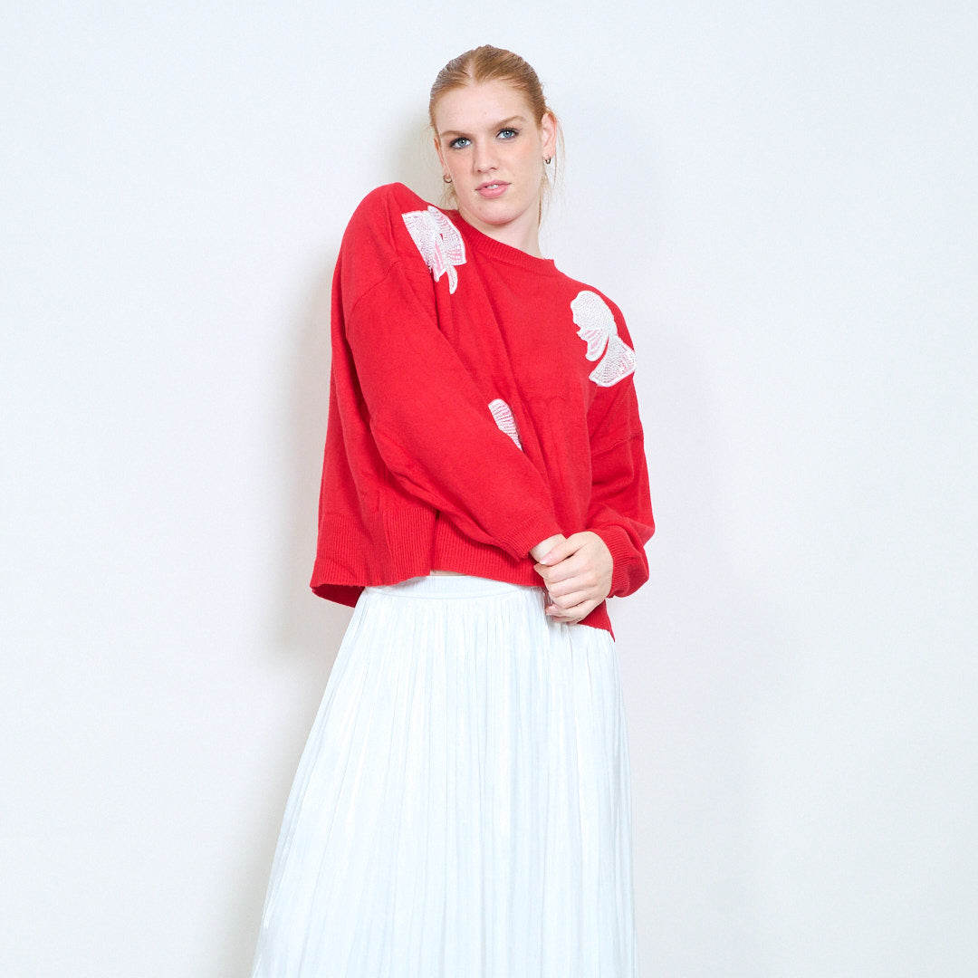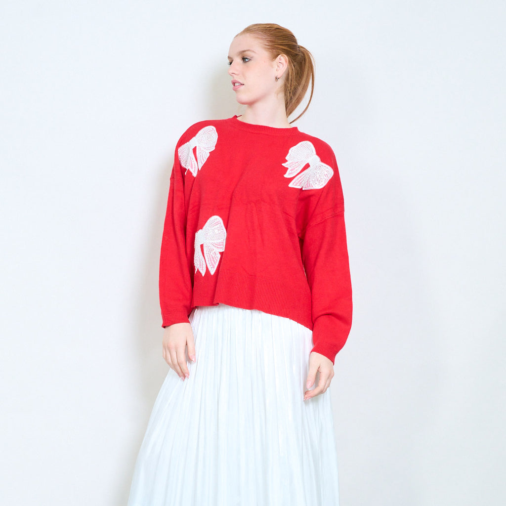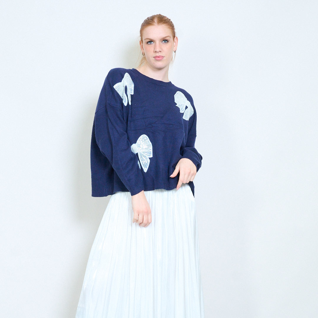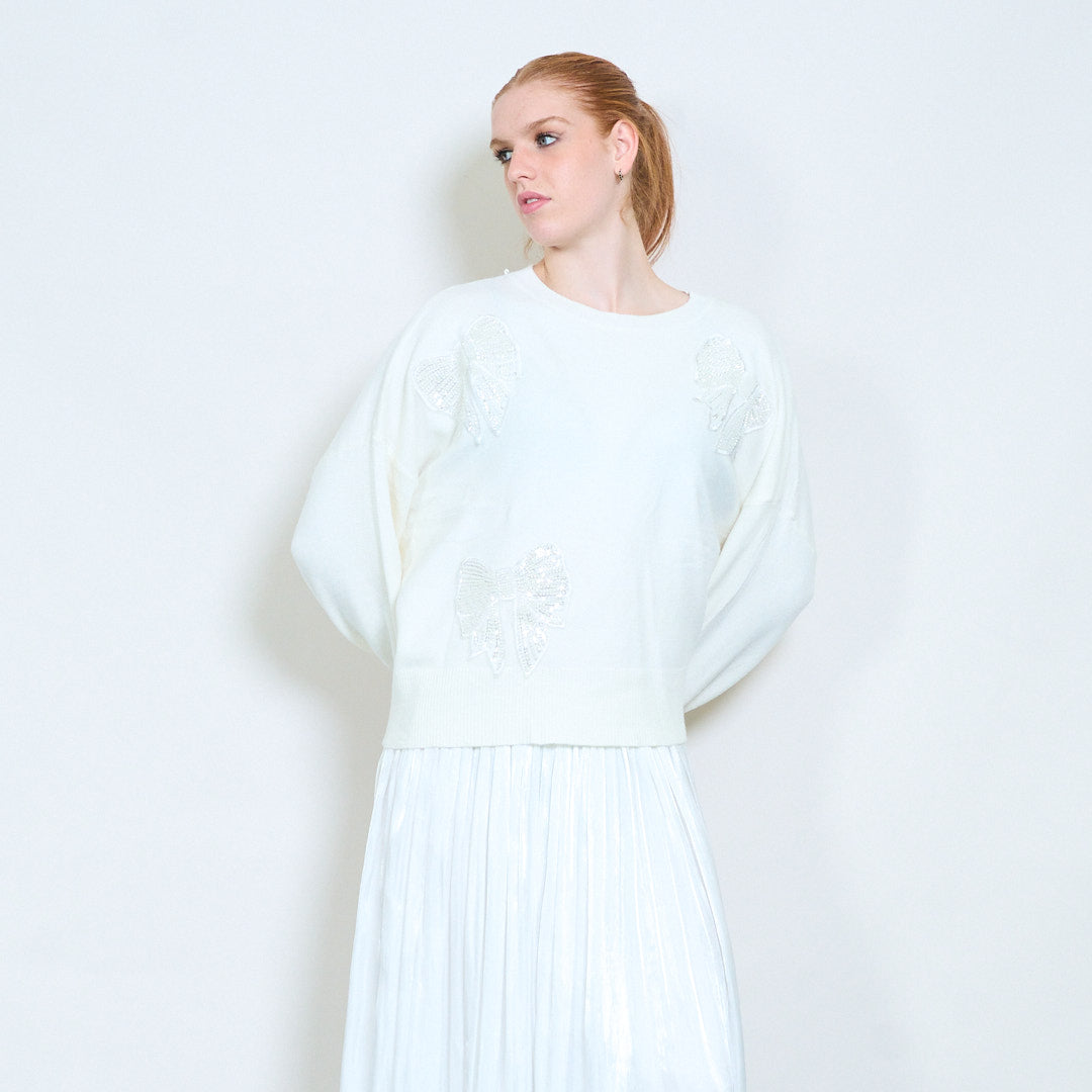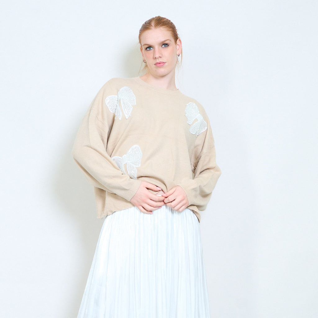 Πουλόβερ με στρογγυλή λαιμόκοψη απλικέ πεταλούδα στρας χονδρική