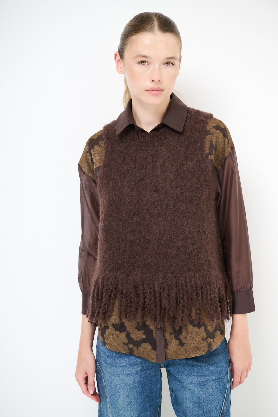 Ασαφές πλεκτό αμάνικο γιλέκο με χονδρική