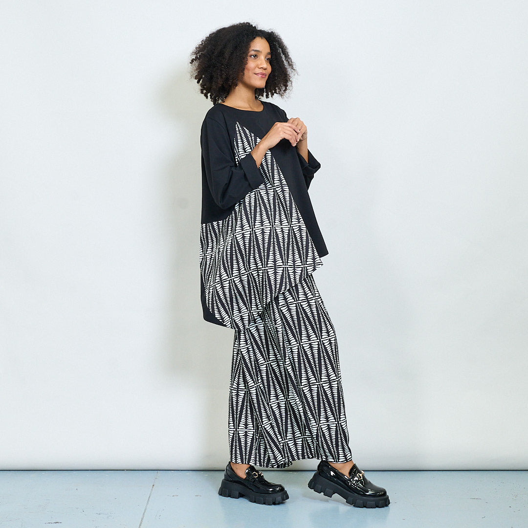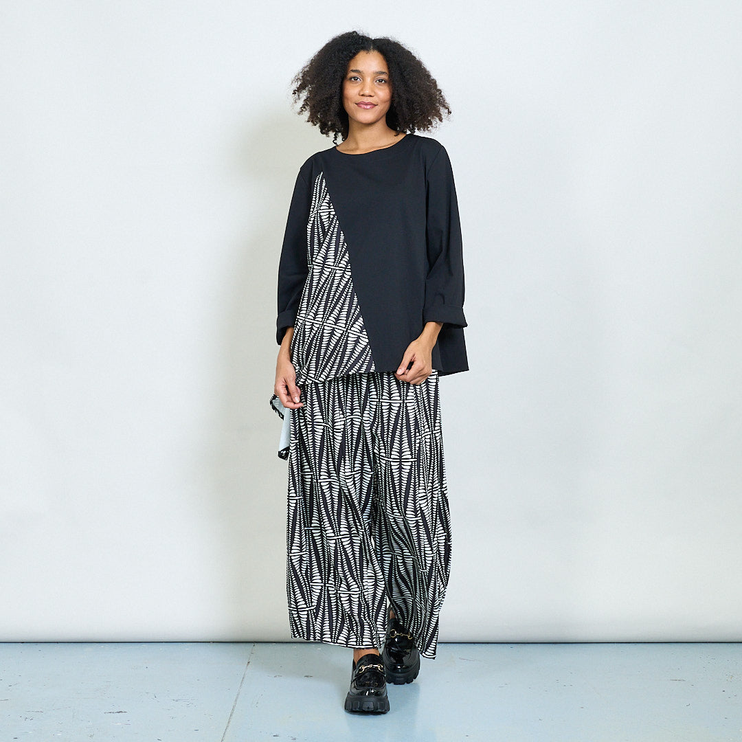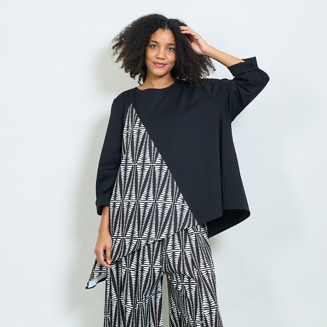 Ασύμμετρη μπλούζα με τολμηρό γεωμετρικό πίνακα χονδρικής