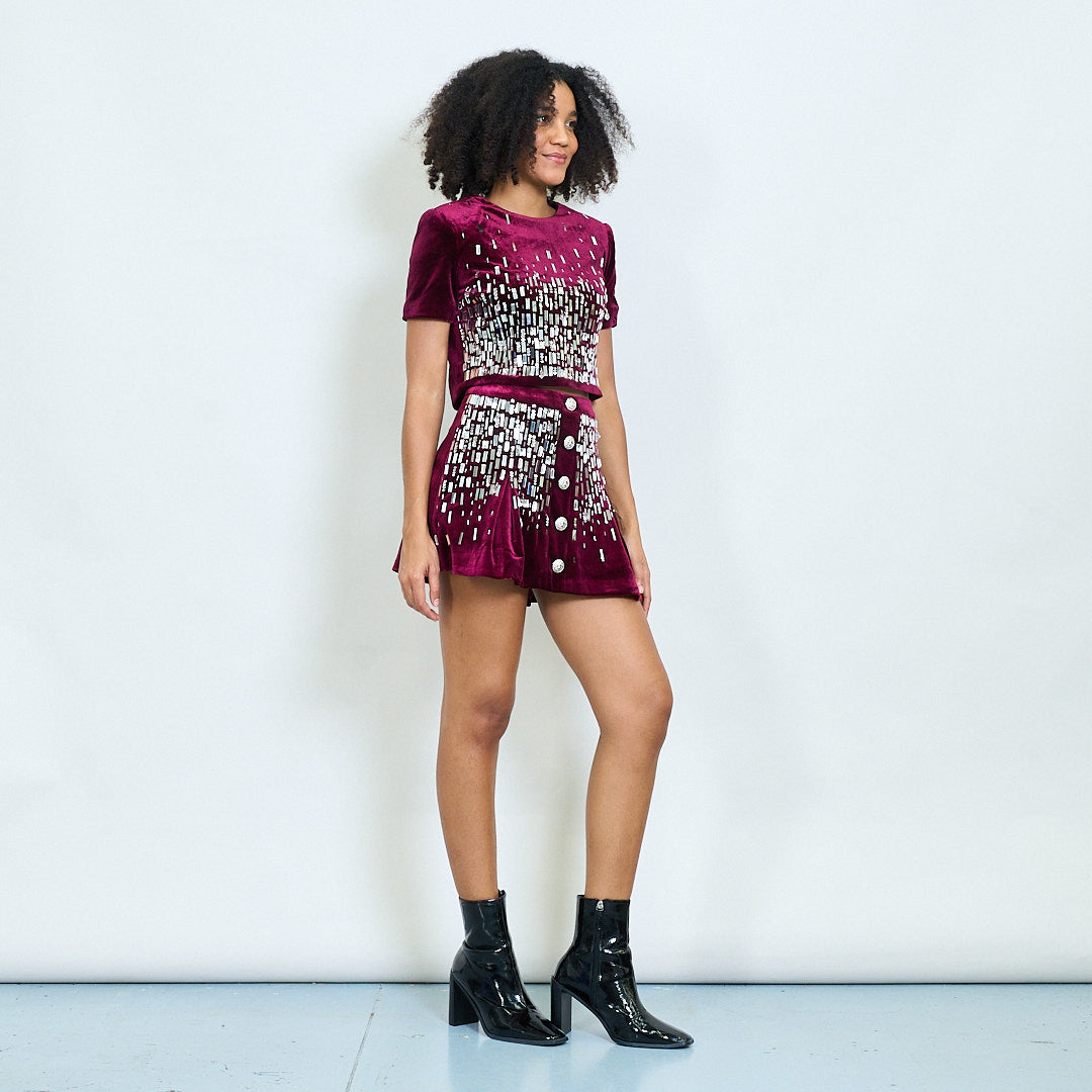 Βελούδο μίνι φούστα με sequin λεπτομέρειες χονδρική