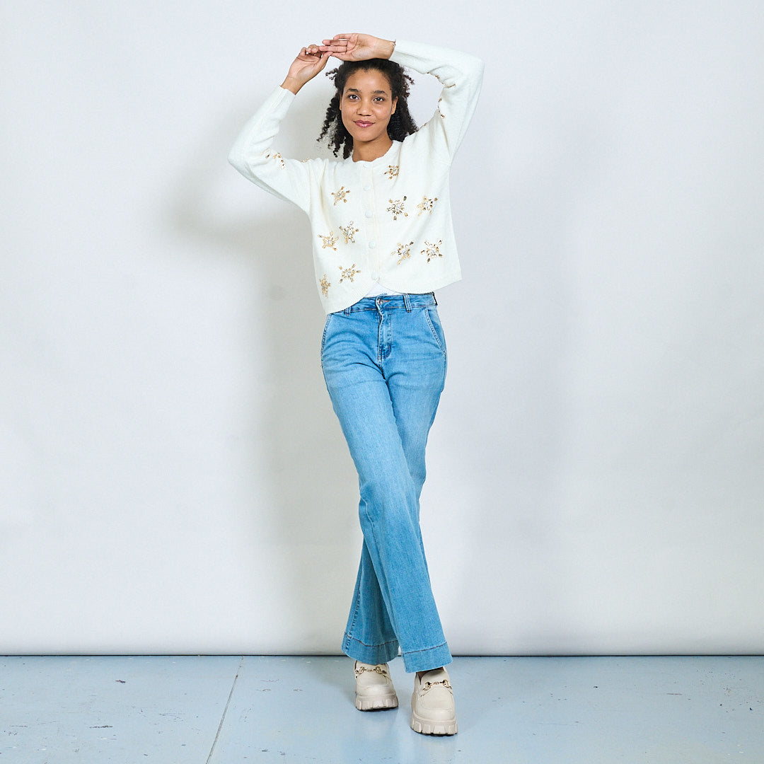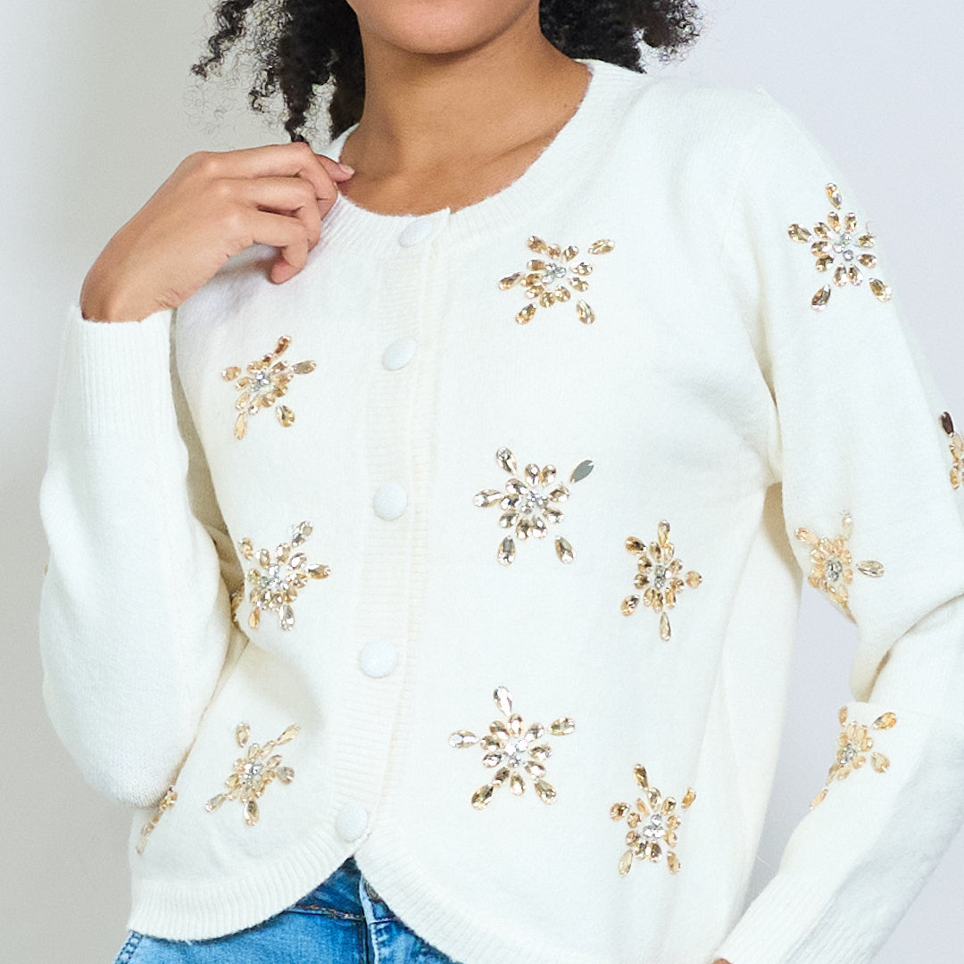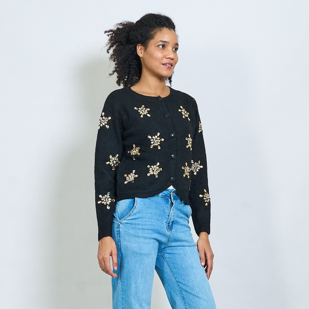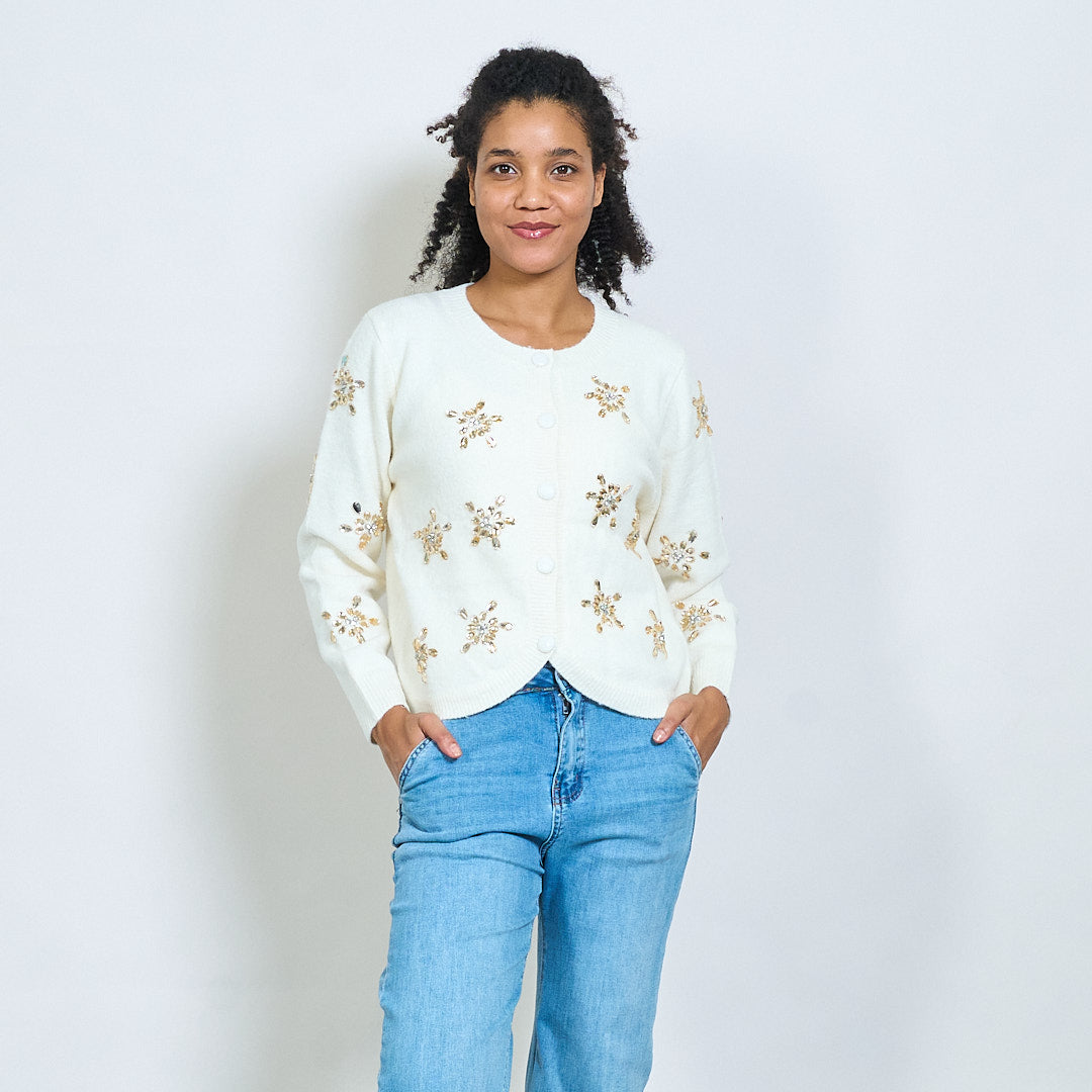 - Μαλακή δεμένη ζακέτα με σφαιρίδια και διακοσμήσεις sequin