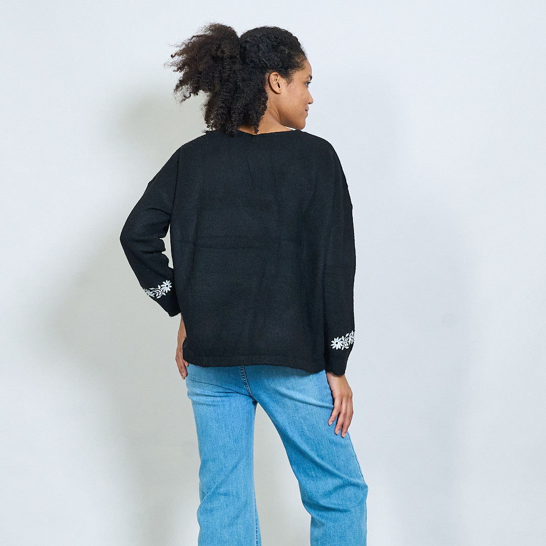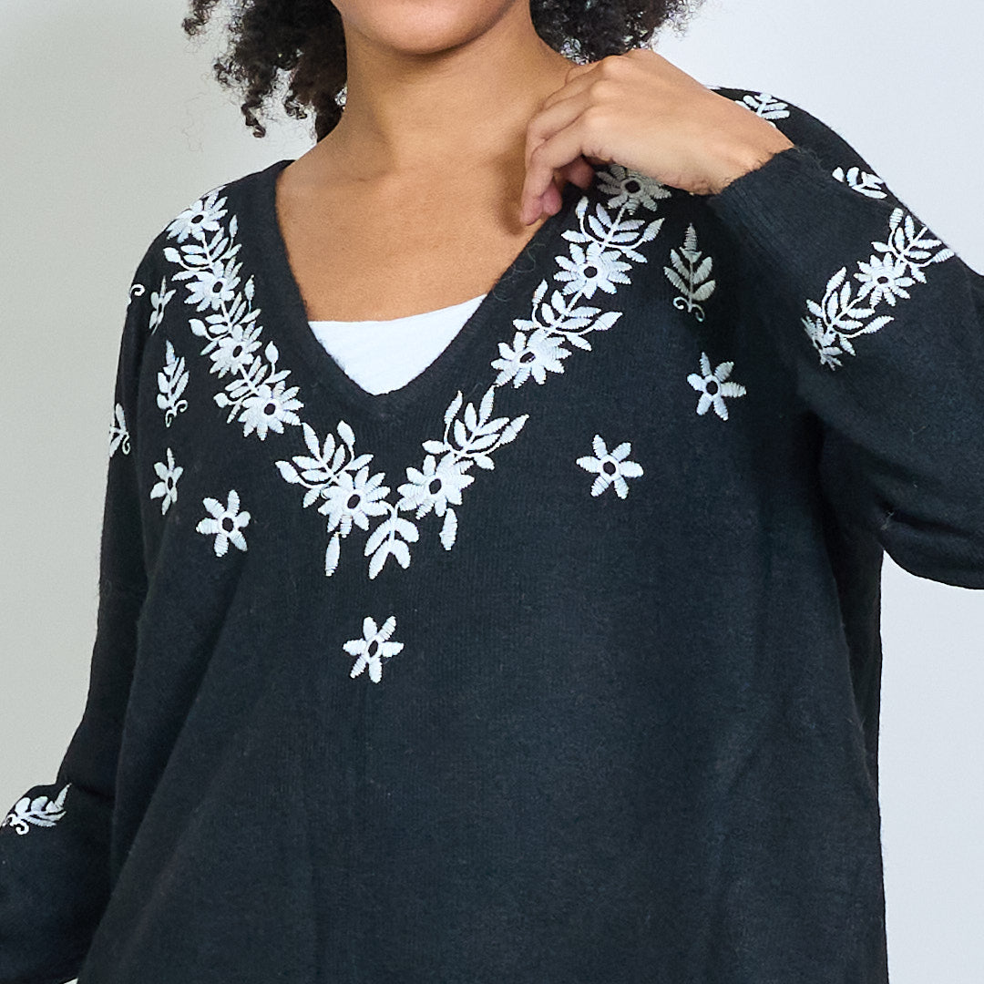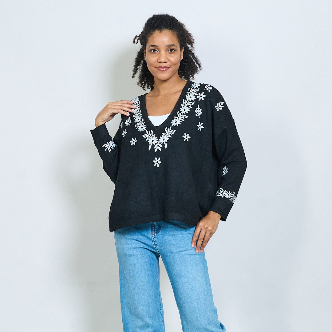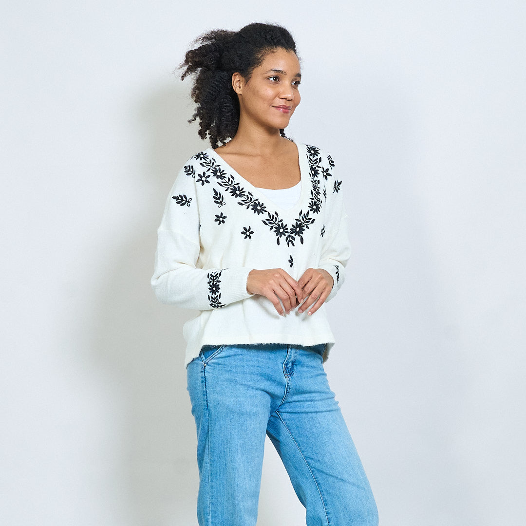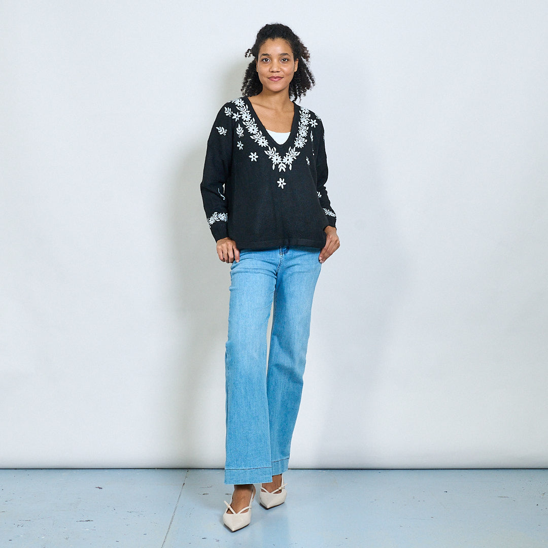 Κεντημένο floral V-λαιμό πλεκτό πουλόβερ χονδρικής