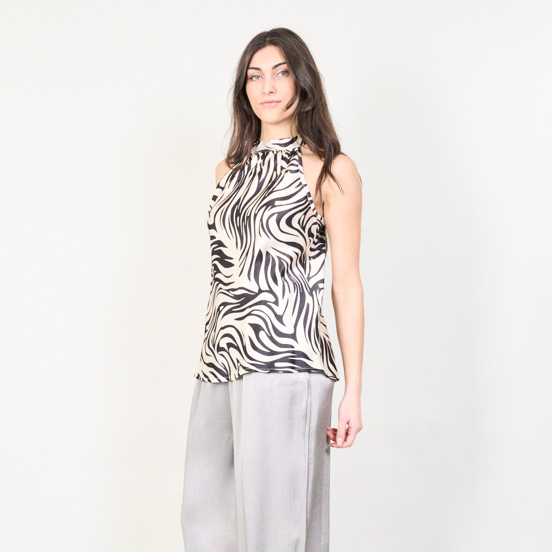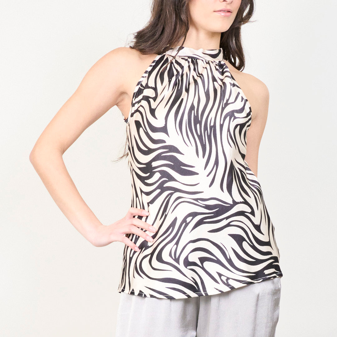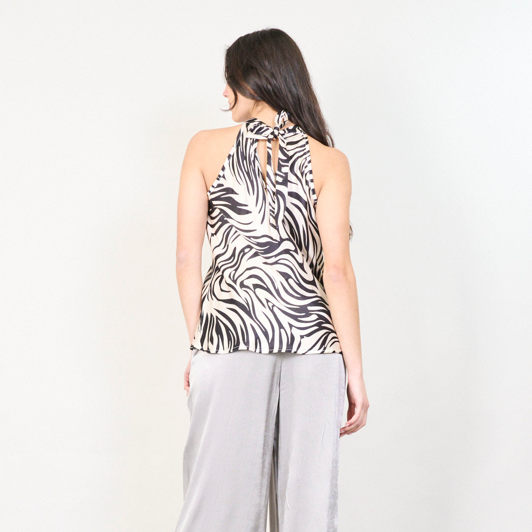 Κομψό zebra εκτύπωση halter κορυφή χονδρική πώληση