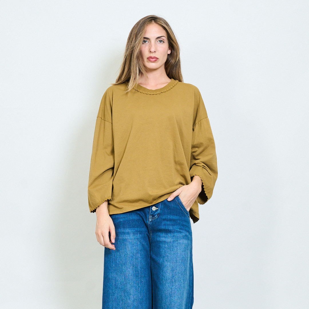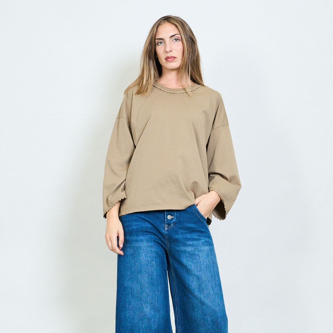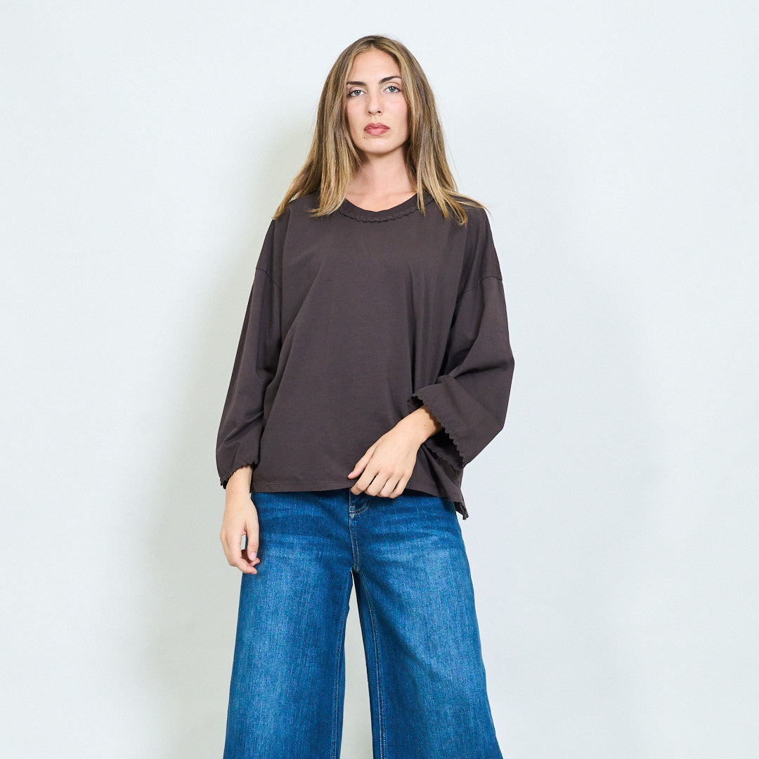 Μαλακό μακρύ μανίκι κορυφή με δαντέλα