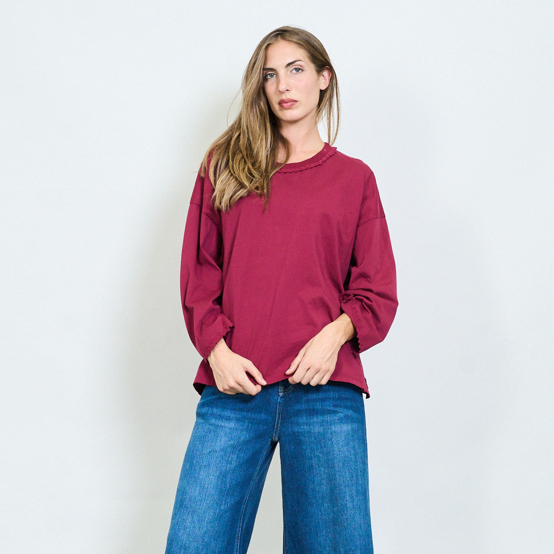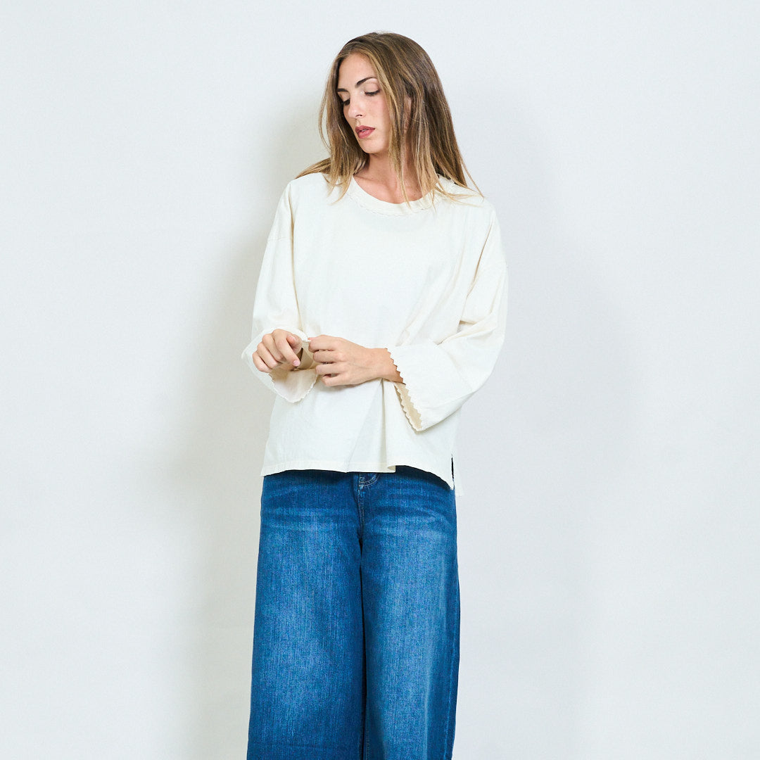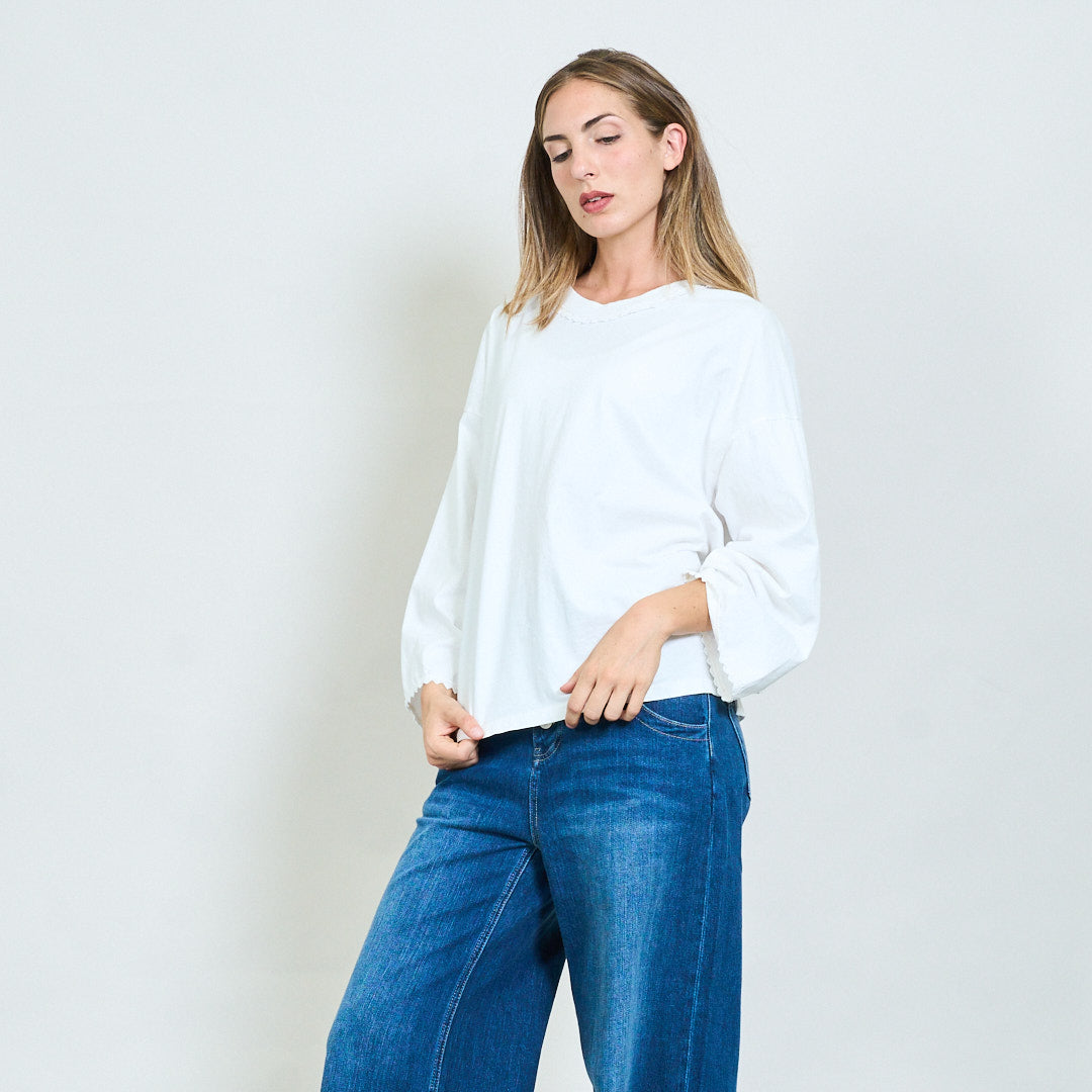 Μαλακό μακρύ μανίκι κορυφή με δαντέλα