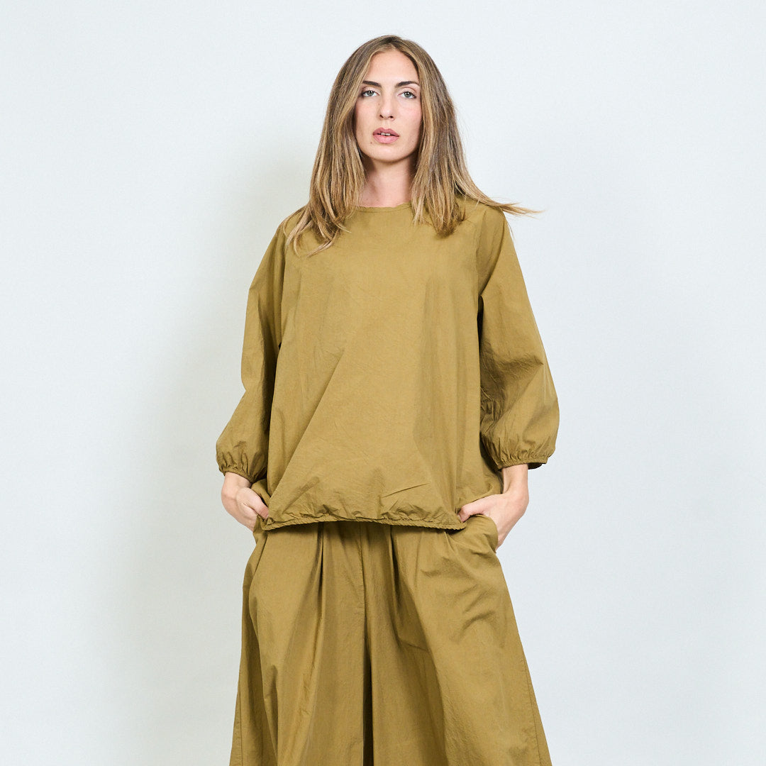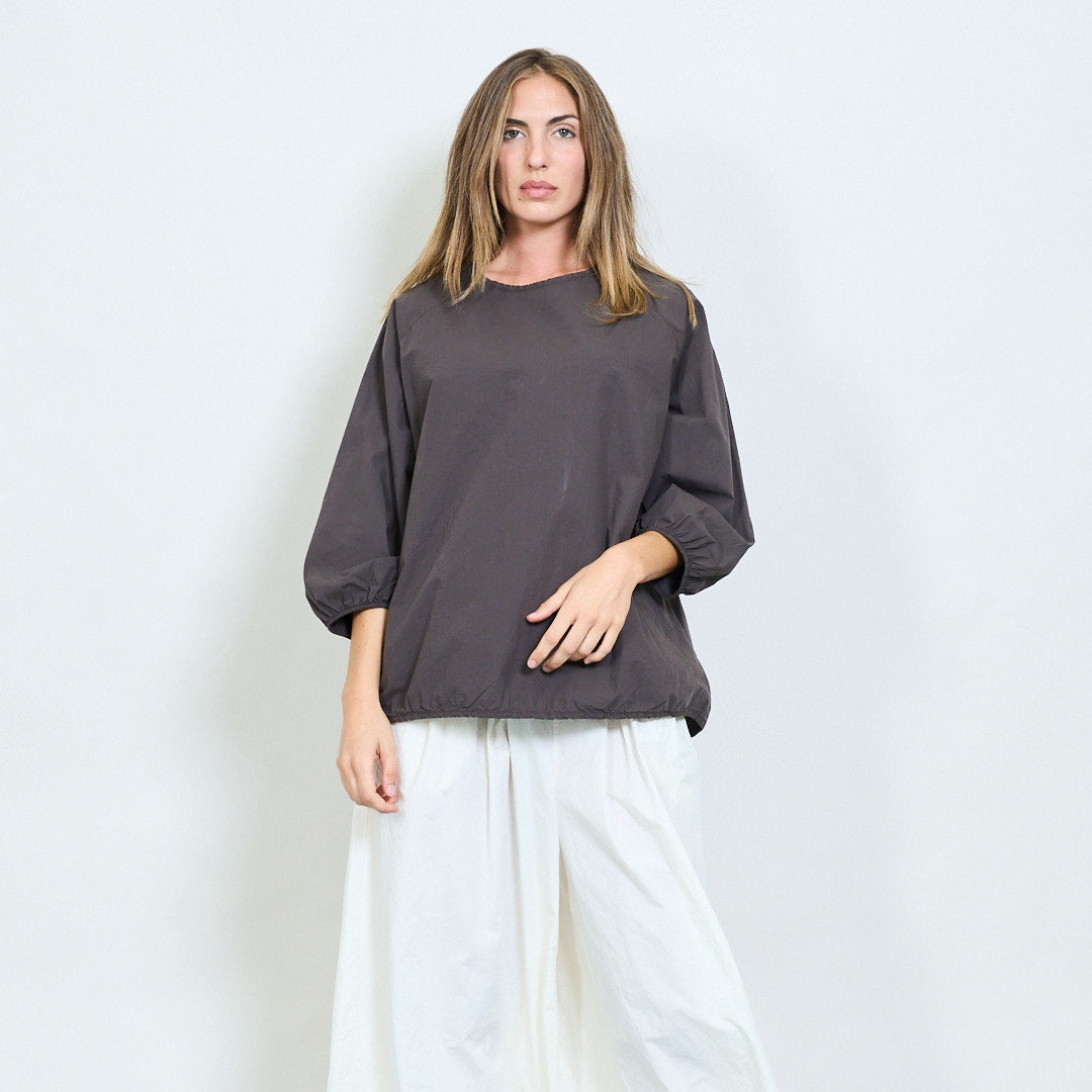 Μπαλόνι μανίκι στρογγυλό λαιμό Χαλαρωμένη μπλούζα χονδρική